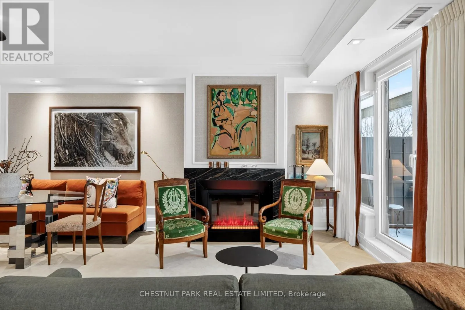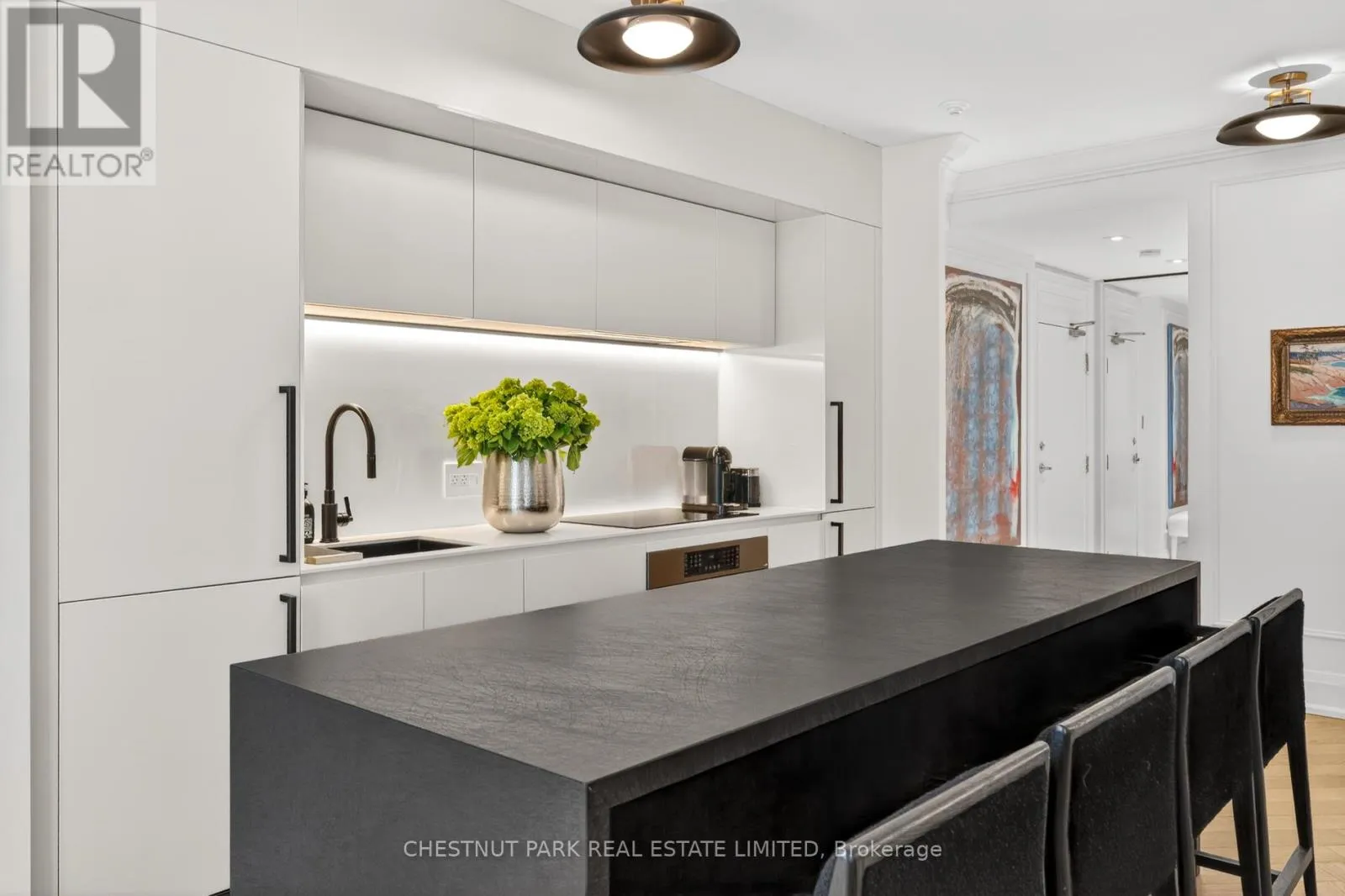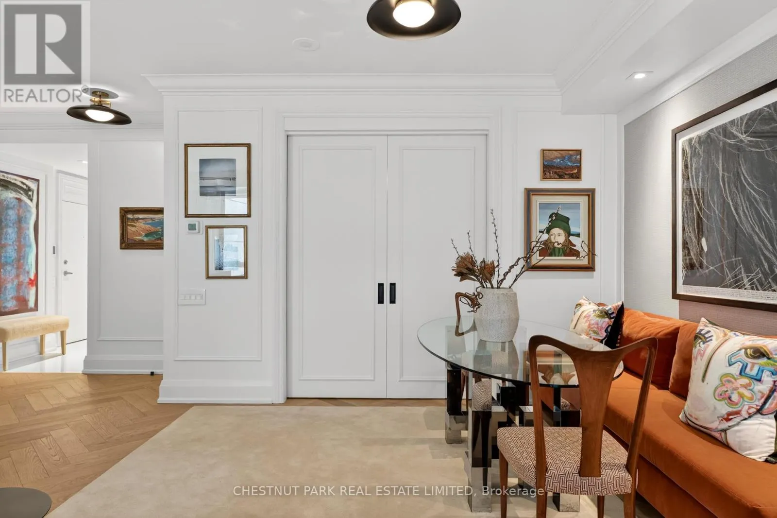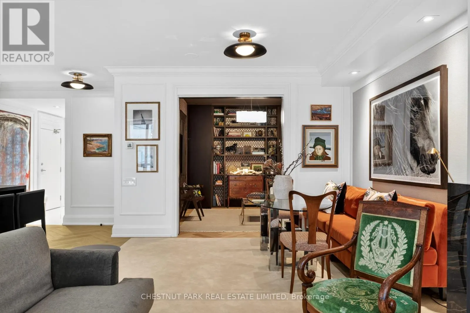 Scrivener Square/Yonge Street Welcome to this beautifully renovated and curated apartment which was completely gutted by the present owner in 2024-2025. The apartment faces south and is located in the treetops creating an abundance of natural light and privacy. The interior enjoys a good sized foyer which guides you into the expansive open concept Living room, Dining room and Open concept gourmet Kitchen. The apartment is appointed with engineered chevron pattern hardwood floors. There is excellent ceiling height for art connoisseurs and your art. The Living room is ideal for large furniture and is accented with an electric fireplace for cozy nights in. The Dining area is intimate yet it is large enough for a sumptuous dining experience of ten people. The kitchen is a chef's delight for cooking. There is ample space for preparation and a large centre island which also enjoys under counter eating for four people. There is a private good sized balcony off the Living room. The entire south side of the apartment is a wall of large windows. Off the Living room is an optional second bedroom, home office or den. This versatile room is entered by a set of double doors. Beyond this room is a 3 piece ensuite, which also serves as a powder room and a contained laundry area. There is excellent circular flow in the apartment. The Primary bedroom feels like a separate wing with a large king sized bedroom, sitting area, tailored & fitted closets with an abundance of space. Beyond is a glorious 5 piece custom designed into two sections for use and privacy. Off the main foyer is a walk-in Pantry for storage and a wine cooler. This is truly a wonderful and bespoke offering located in Summerhill with amazing proximity to the best dining, shops, the LCBO and the TTC. Park location for kids, peace and doggies. Truly a well thoughtful design experience. There is 24 hour Security and on site Property Management. (id:27476)