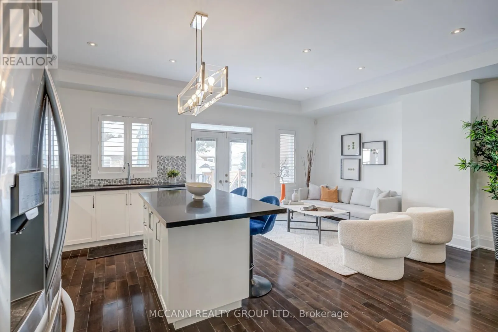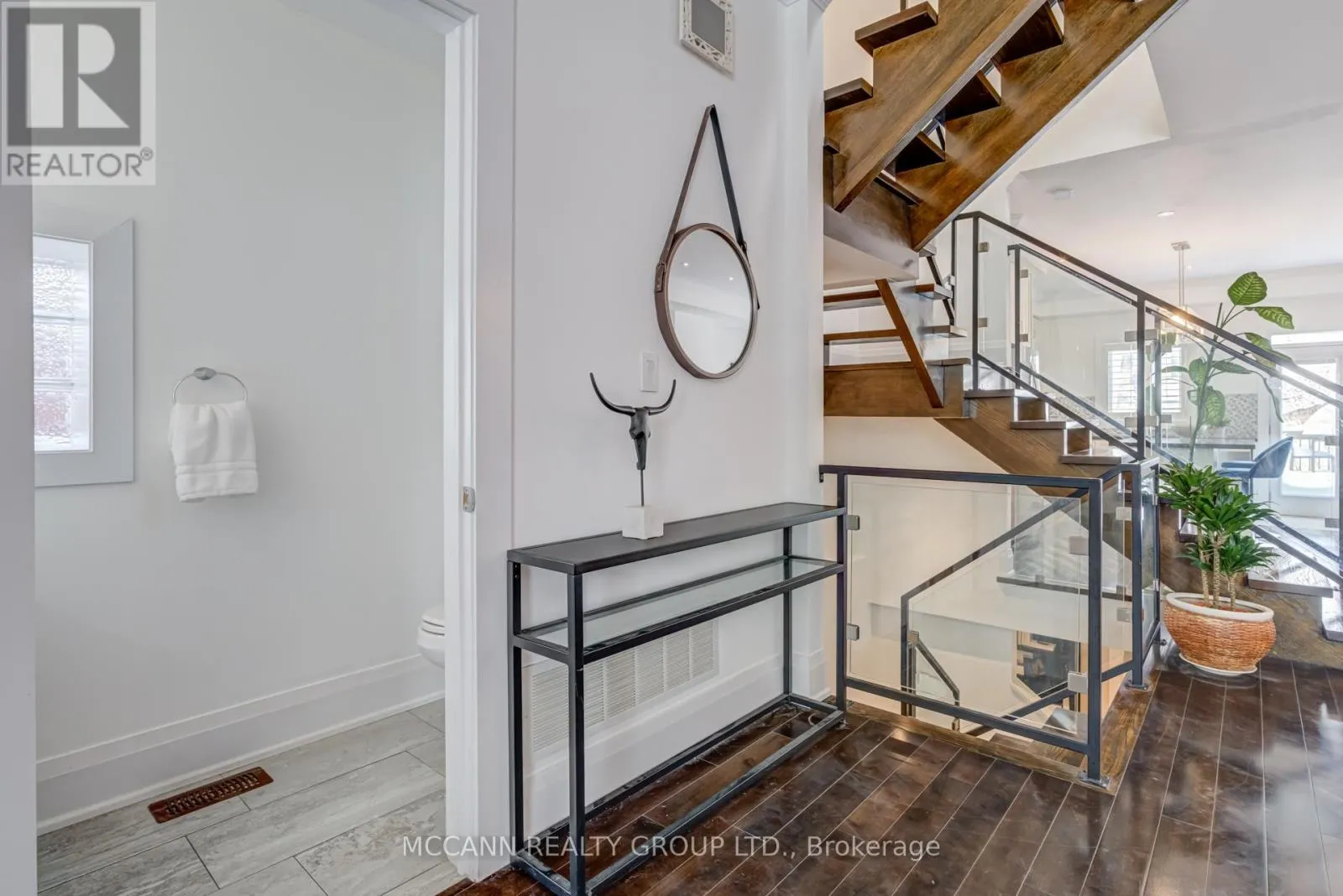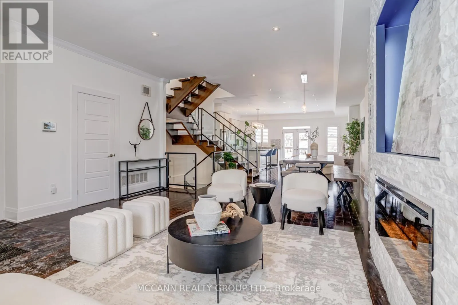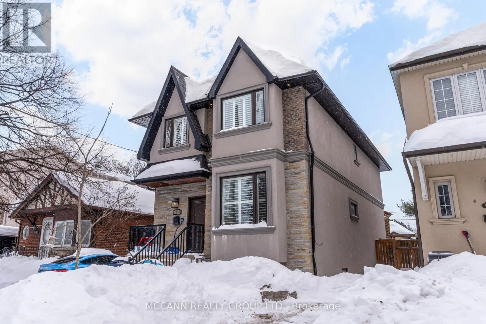 O'Connor/Greenwood Welcome to this stunning 3+1 bedroom, detached custom-built home in the heart of prime East York. Featuring hardwood floors and pot lights throughout the main and second levels, this home offers both style and functionality. The welcoming foyer boasts tiled floors and a double-door coat closet, along with a convenient 2-piece powder room. The open-concept living and dining areas are filled with natural light from a large picture window overlooking the street. The living room features a cozy fireplace and built-in entertainment center, while the dining area flows seamlessly into the open-concept kitchen and family room. The kitchen is equipped with stainless steel appliances and a large centre island, perfect for everyday living and entertaining. The family room walks out to an oversized deck overlooking a spacious backyard. The second floor offers an oversized primary bedroom complete with a walk-in closet and luxurious 5-piece ensuite. Two additional generously sized bedrooms with large windows and closets share a 4-piece bathroom. The finished lower level features laminate flooring and pot lights throughout, with a large recreation room ideal for entertaining or a children's play area, along with space for a gym and home office. This level also includes a 3-piece bathroom and an additional bedroom with a large window. Enjoy the perks of this family friendly neighbourhood with vibrant shops, restaurants and TTC. (id:27476)
