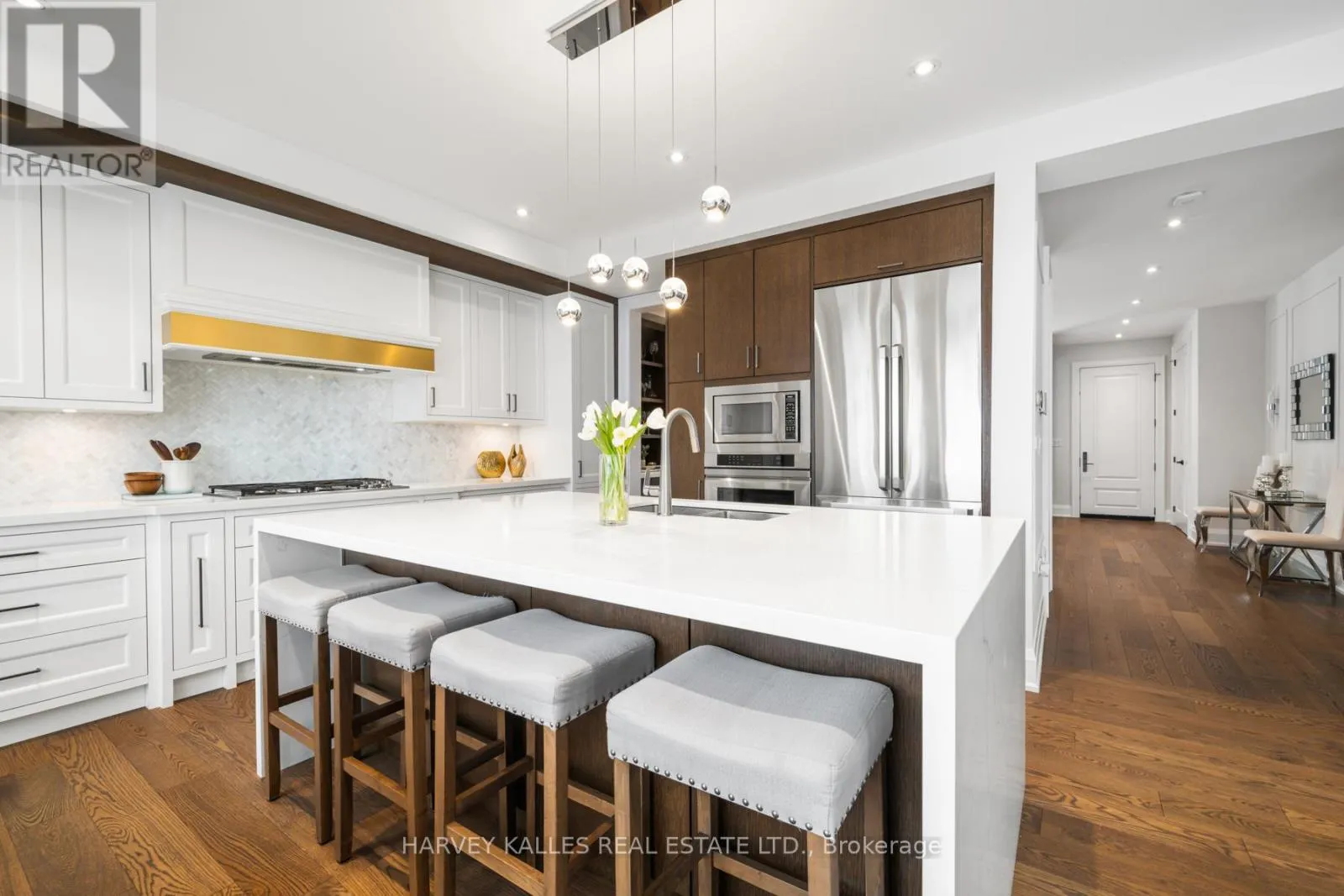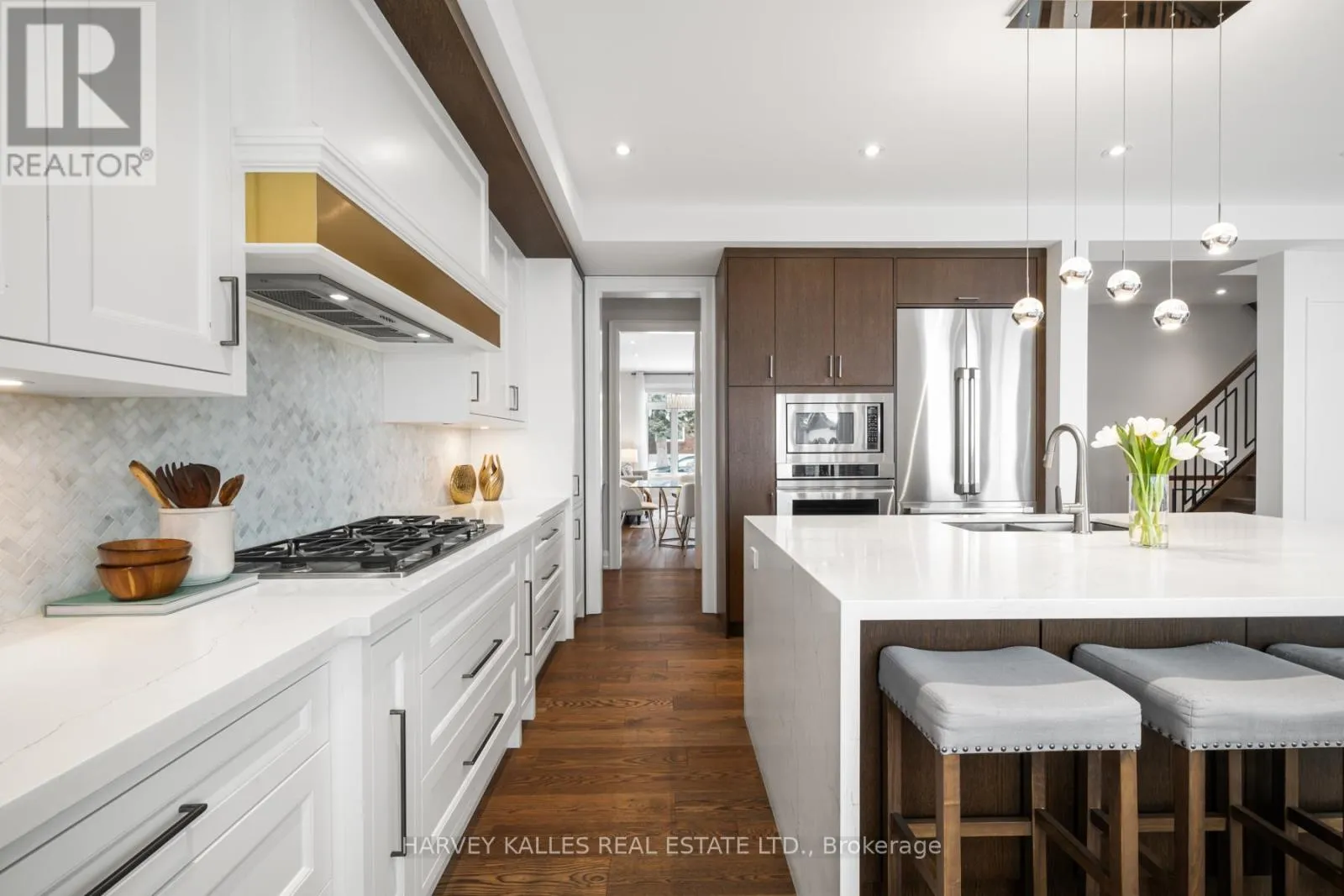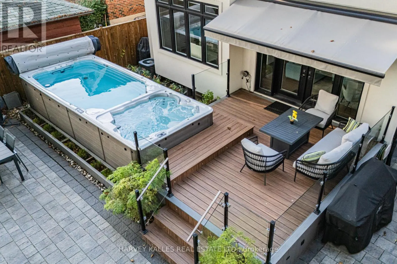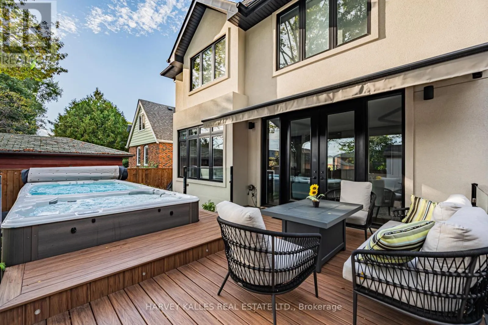 O'Connor/St.Clair/Victoria Park Set on a 40-foot wide lot in sought-after Topham Park, this custom-built (2020) home offers exceptional scale with over 3,500 square feet of indoor living space plus a south facing resort-style backyard sanctuary. High ceilings and expansive windows fill the home with natural light. The main floor is designed for daily routines and effortless entertaining, with elegant living and dining areas & a powder room. The show-stopping kitchen features a walk-through pantry/dry bar, sunny breakfast area, oversized quartz waterfall island, and premium Dacor appliances including a gas stove. Relax fireside in the handsome family room and step out to a backyard that defines luxury living, complete with year-round heated swim spa & hot tub, upgraded composite deck with glass railings and motorized awning, gas line for bbq, plus a lower garden retreat with mini putting green, outdoor TV lounge, water feature and dining area. Upstairs, every bedroom has an ensuite. The king-sized primary boasts a custom walk-in closet and dreamy spa-like bath with dual vanity, freestanding tub, and oversized shower. A large skylight illuminates the upper level, and convenient second-floor laundry adds everyday ease. The fully finished lower level, accessible via a side entrance, is ready for movie nights and includes space for a home gym & office, plus a fifth bedroom, full bath, and abundant storage. Central vac, a rough-in for a second laundry room, high-efficiency mechanicals, and dual sump pumps provide added flexibility and peace of mind. Smart upgrades include automated blinds, USB ports, and a Tesla/electric vehicle charger in the built-in garage. Beautiful landscaping and interlock paving enhance curb appeal. Close to the DVP for easy commuting, rapid transit incl TTC Crosstown, great schools, shopping, dining, parks, public tennis courts and nature trails. This is more than a house; it's a place where lifelong memories are made. (id:27476)