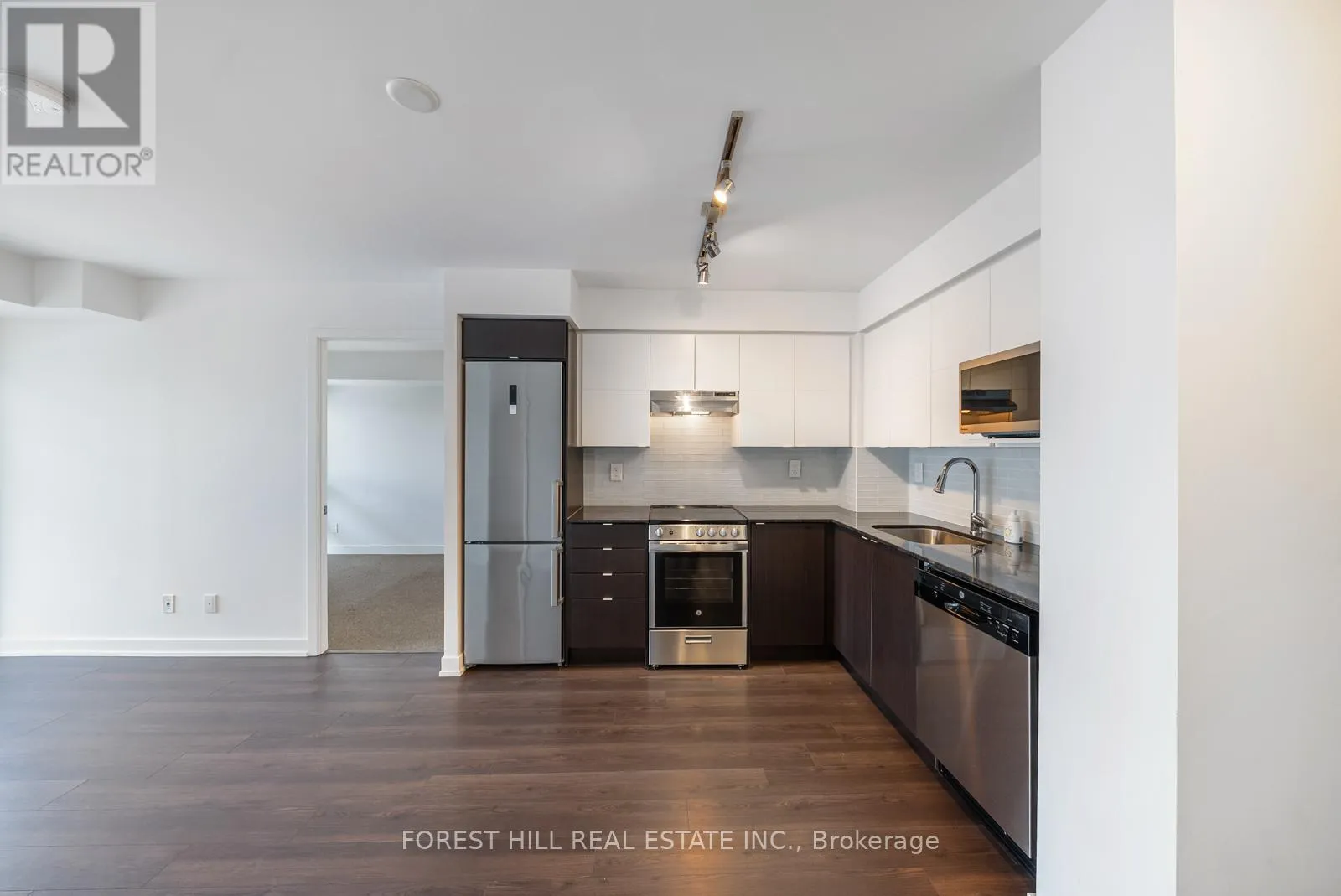 Cross Streets: Btn Bathurst St & Allen Road, South of Ranee Avenue. ** Directions: South of Ranee East of Allen Expressway on Varna Drive. Luxury living meets everyday convenience in this chic Cartier 1 model, offering 630 sq. ft. of thoughtfully planned space with floor-to-ceiling windows and a sliding door leading to a 147 sq. ft. balcony with a peaceful west-facing exposure over a lovely, set back, green space - the perfect place to relax and enjoy the sunset. The split 2-bedroom layout features bright windows, modern bathrooms, and a primary suite complete with his-and-hers closets and a private ensuite. The open-concept living area showcases elegant wide plank flooring, a two-tone kitchen with granite countertops, glass tile backsplash, stainless steel appliances, and an undermount sink with vegetable spray. Additional highlights include custom window treatments, ensuite laundry with GE washer and dryer, one oversized parking spot (ideally located across from the entrance door), and a locker for added storage. Enjoy the comfort of 24-hour concierge service, hotel-inspired guest suites, and impressive amenities including a fitness centre, party room, and rooftop deck. Perfectly situated steps from Yorkdale Mall, subway access, and top dining options, with quick connections to the Allen Expressway and Hwy 401.Experience style, serenity, and connection - all at one exceptional address. (id:27476)
