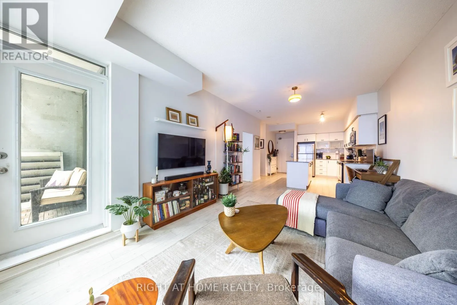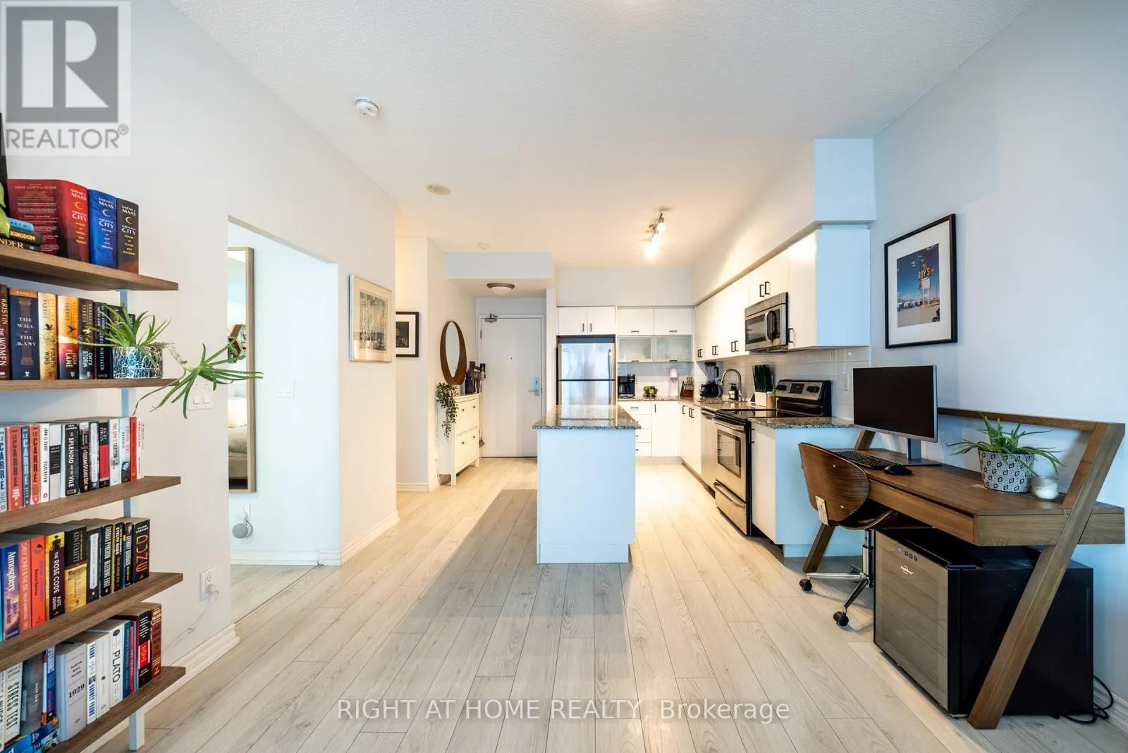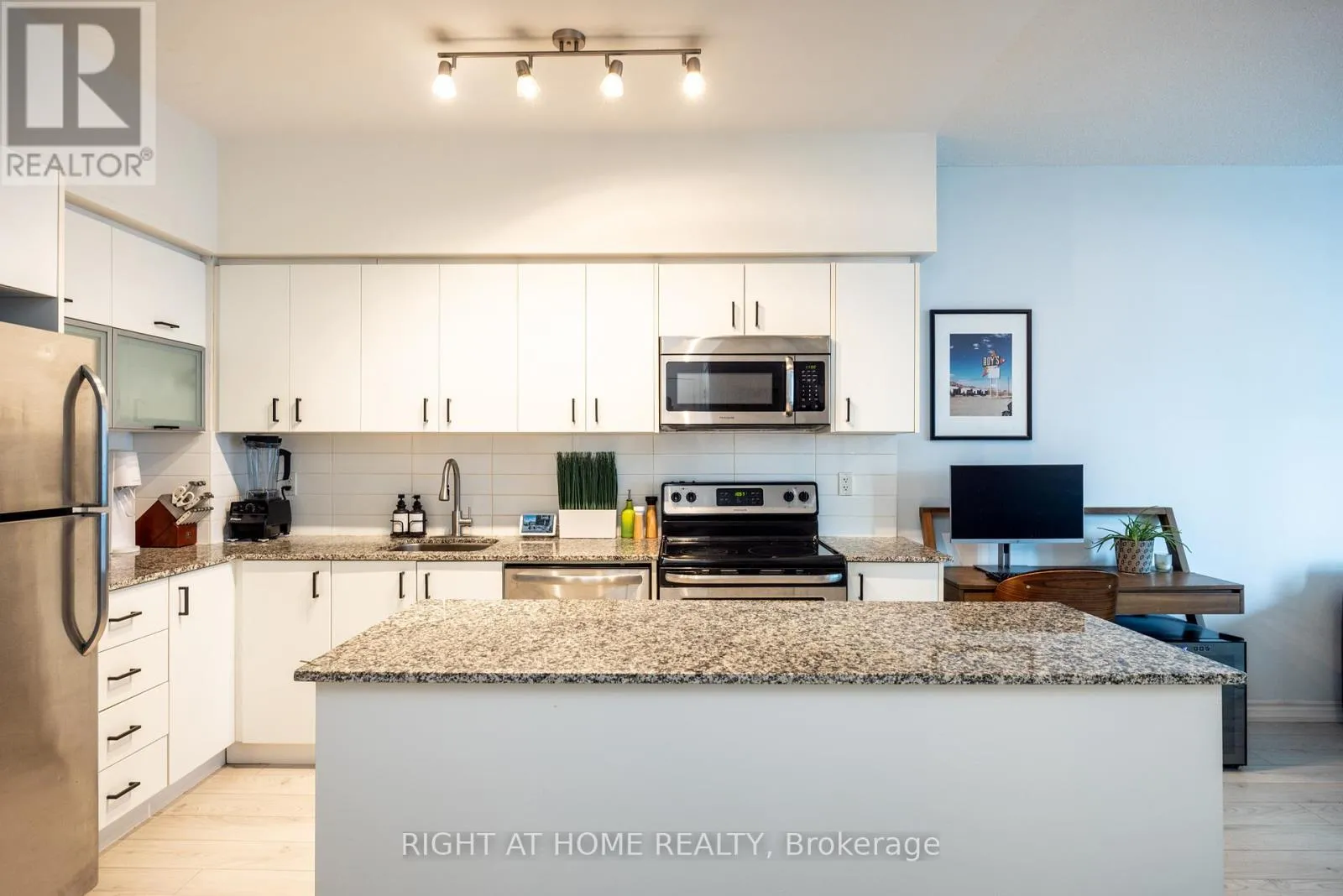 Cross Streets: East Liberty & Strachan. ** Directions: West of Strachan. Welcome to this spacious one-bedroom suite in Liberty Village offering over 650sqft of stylish, well-appointed living space. The modern kitchen features a large centre island, stone countertops, full-size appliances and abundant storage - ideal for both everyday living and entertaining. The king-sized bedroom is a rare find and showcases an oversized window, along with double closets and a custom built-in dresser. A sleek bathroom with walk-in glass shower, plus convenient ensuite laundry completes the interior. Residents enjoy premium building amenities including concierge, gym, indoor pool, hot tub, sauna, party room, guest suites, visitor parking and outdoor BBQ/entertaining area. Steps to shops, grocers, restaurants, cafés and just a short walk to King West, Queen West, Trinity Bellwoods Park, Lake Ontario waterfront, and the Downtown Core. (id:27476)