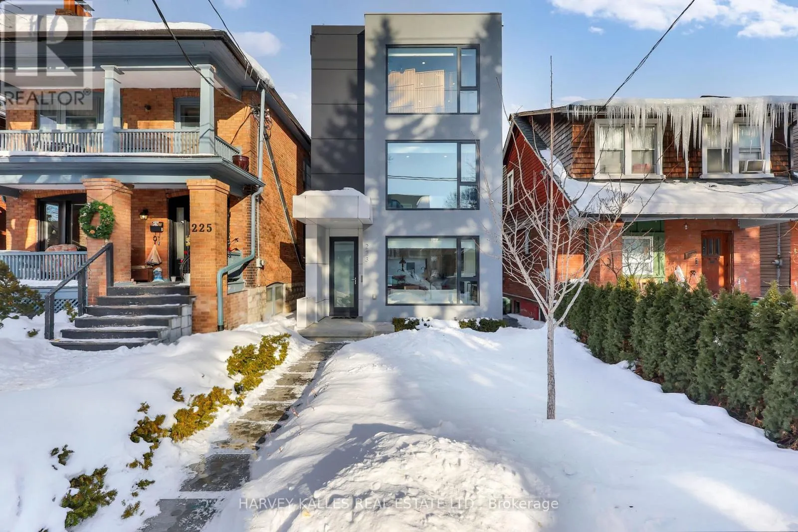 Cross Streets: ST. CLAIR & WYCHWOOD CRESCENT. ** Directions: ST. CLAIR & BATHURST. A striking modern statement in the heart of St. Clair West, 223 Wychwood Crescent delivers approximately 4,000 square feet of newly built architectural living across four impeccably finished levels. Designed with intention and executed with precision, this residence blends clean contemporary lines with timeless, refined detailing.Offering 4 generously scaled bedrooms and 5 beautifully appointed bathrooms, the home is thoughtfully configured for sophisticated family living. The primary suite is a private sanctuary, complete with a spa-inspired ensuite designed for quiet indulgence and everyday retreat.Interiors showcase soaring ceilings, wide-plank oak flooring, heated floors, custom millwork, and carefully curated storage solutions that enhance both form and function. The chef's kitchen is elegantly appointed with premium finishes, bespoke cabinetry, and a dramatic central island that anchors the space - ideal for both entertaining and daily living.The fully enclosed backyard offers rare privacy in the city - a serene outdoor extension of the home, perfect for gatherings or relaxed evenings.A detached two-car garage, complemented by two additional driveway spaces, provides parking for four vehicles. With roughed-in plumbing already in place, the garage offers the opportunity to create a future rental or in-law suite above - a rare value-add in this coveted neighbourhood.Situated within the sought-after Humewood School District and steps to the boutiques, dining, parks, and transit of St. Clair Village, this is refined urban living in one of Toronto's most desirable communities.A bold architectural presence. A rare opportunity. (id:27476)