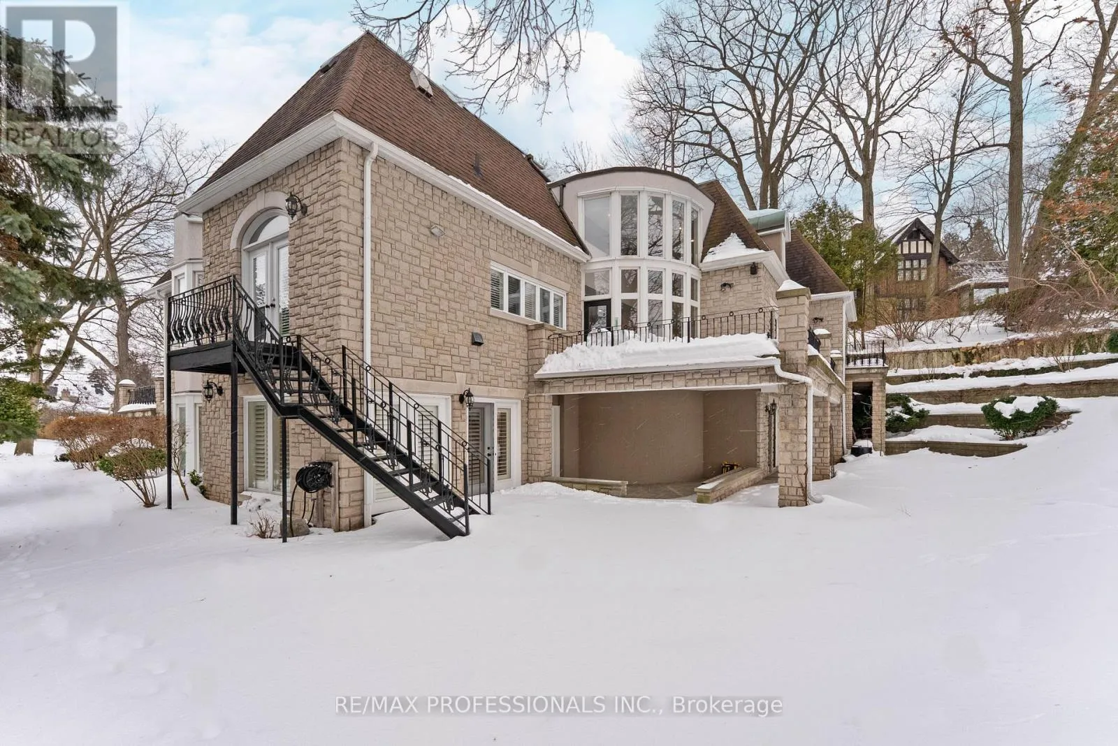 Cross Streets: Royal York Road and Edenbridge Drive. ** Directions: West of Royal York Road North of Edenbridge Drive. Welcome to 6A Edenbrook Hill in prestigious Lincoln Woods,Edenbridge-Humber Valley. Overlooking the 3rd hole of St. George'sGolf Club-one of Canada's most renowned courses-this European-inspiredcustom stone estate is idyllically situated on a mature, tree-linedlot with a cobblestone driveway and 3-car garage, pairingarchitectural presence with exceptional seclusion. This thoughtfullycurated 4+1 bedroom, 7-bathroom luxury residence features white oakherringbone flooring, soaring ceilings, large skylights, refinedmillwork, a custom floating glass staircase and expansive windowscapturing panoramic fairway views. Grand principal rooms include animpressive foyer, sunken living room with wood-burning fireplace andwalkouts to the front terrace, formal dining room with a classic baywindow, gourmet kitchen equipped with Wolf, Sub-Zero and Mieleappliances, granite counters, centre island and breakfast area, familyroom with wide-plank oak floors, custom built-ins and walkout to therear terrace and a dedicated office with pot lights and customcabinetry providing an ideal executive workspace. A strikingsecond-level loft crowns the home, offering a versatile retreat withelevated views and endless potential. Four well-appointed bedroomsoffer ensuite/ semi-ensuite baths, including a sumptuous primaryretreat with a 6-piece ensuite, walk-in closet and private terraceoverlooking the course. The fully finished lower level is designed forentertaining, complete with a recreation lounge with a wet bar & twowalkouts to the rear grounds, 2nd kitchen, additional bedroom, gym,sauna and wine cellar. Professionally landscaped grounds and multipleterraces provide refined outdoor living with a front-row vantage pointto the championship greens of St. George's. Minutes to Humber Rivertrails and parkland, Toronto's premier golf clubs and top schoolsincluding Humber Valley JMS & Kingsway College School. A true trophyproperty in one of Etobicoke's most exclusive enclaves! Open house Saturday 2-4! (id:27476)