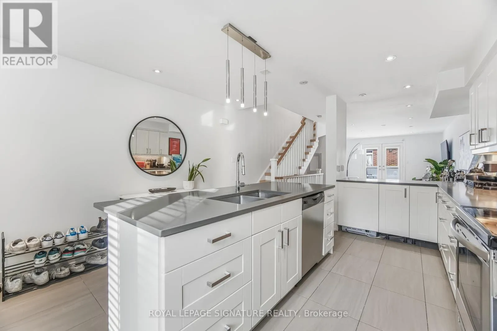 Cross Streets: King St W and Shaw. ** Directions: West. Step into 1,720 sqft. of meticulously renovated, open concept perfection. This 3 storey urban sanctuary features a beautiful kitchen with quartz countertops, stainless steel appliances, and a seamless breakfast bar. The expansive living area flows effortlessly into a private terrace, while the primary bedroom offers a spa like escape with its own rooftop patio. With king sized bedrooms, a versatile basement suite, and rare 2 car parking, this home offers unparalleled scale. Just steps from the city's most trend setting restaurants, shops, and transit. (id:27476)