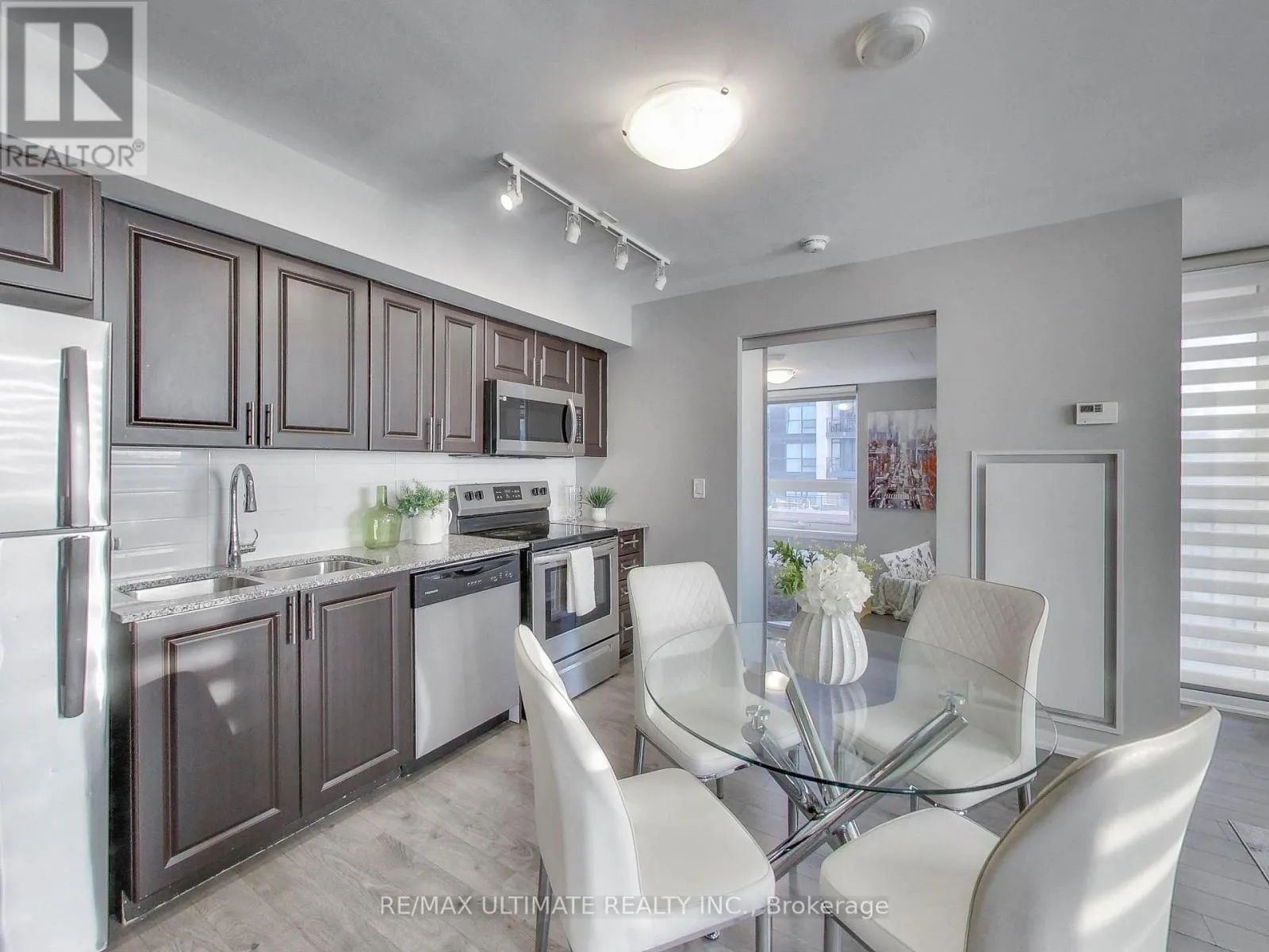 Cross Streets: Dufferin/Lawrence. ** Directions: North of Lawrence on Dufferin. Welcome to Treviso III at Dufferin and Lawrence, a sun-filled southwest-facing 2-Bedroom, 2-Bathroom Corner Unit with windows in every room. This bright and spacious suite offers a functional open-concept layout, featuring a modern kitchen with granite counters, stainless steel appliances, ample cabinetry, and a spacious living area perfect for everyday comfort and entertaining. Enjoy carpet-free laminate flooring throughout, large windows, and exceptional natural light in every room. The spacious primary features a 4-piece ensuite with a deep soaker tub and mirrored double closet. A split-bedroom design provides for privacy, with the second bedroom located on the opposite side of the living area - ideal for families with older children, guests, or a flexible home office. Additional features include in-suite laundry and a convenient main 4-piece washroom. Take in breathtaking sunset views from your private balcony in the desirable Yorkdale neighbourhood. A Rare Bonus: 2 Underground Parking spaces (separately deeded) and 2 Separately Deeded Lockers (an estimated $30,000+ value compared to a standard unit with only one parking space and one locker) - ideal for personal use, or the option to rent or sell the second parking space and locker. Additional visitor parking is available for your guests' convenience. Outstanding amenities including a 24-hour concierge, gym, party room, outdoor pool. Walk To: Yorkdale Mall, Starbucks, Shoppers Drug Mart, Mezza Notte, and a variety of local restaurants. Excellent TTC access including Lawrence West Subway Station (Line 1), plus easy access to Allen Road and Highway 401. An ideal oppotunity for first-time buyers, working professionals, or investors seeking a vibrant, highly walkable urban lifestyle. (id:27476)