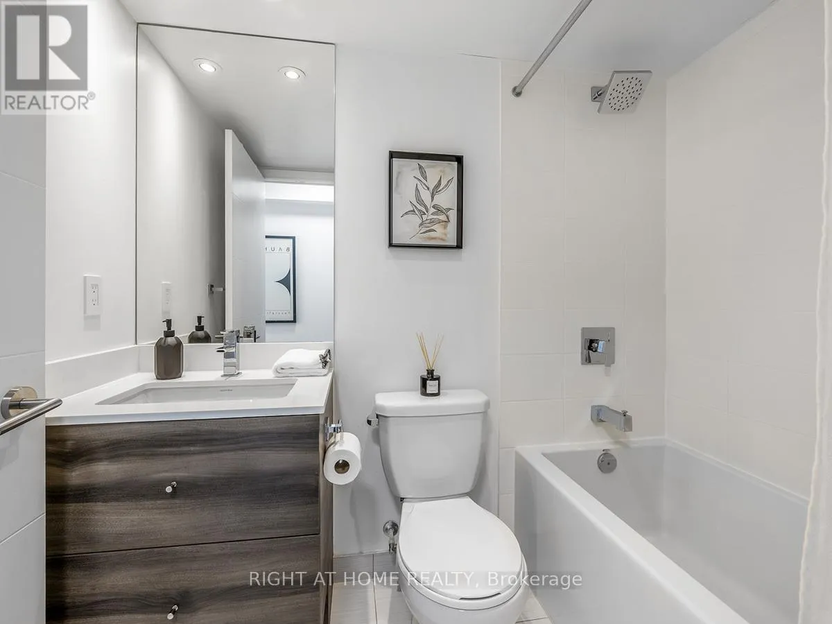 Bathurst/Adelaide W Love the energy of King West but want a quiet escape? This stunning 1+den, 2-bath condo in a well-managed building with low maintenance fees offers the best of both worlds. Tucked into a peaceful pocket with park views, yet steps to King Street's buzz, it features a smart, no-wasted-space layout perfect for entertaining. Enjoy an open-concept living area with quartz counters and full-size stainless steel appliances, a spacious primary bedroom with ensuite, and a fully enclosed den ideal as a second bedroom or home office. Thoughtful upgrades include a full-size washer/dryer, custom closet organizers, mirrored closet doors, updated lighting (2023), and a newer dishwasher (2024). Steps to the future Ontario Line, top restaurants, cafes, shops, Trinity Bellwoods, the waterfront, and more. Incredible amenities include a pool, gym, party rooms, media room, saunas, steam room, and rooftop terrace with BBQ. Parking & locker included. A true King West lifestyle opportunity. (id:27476)