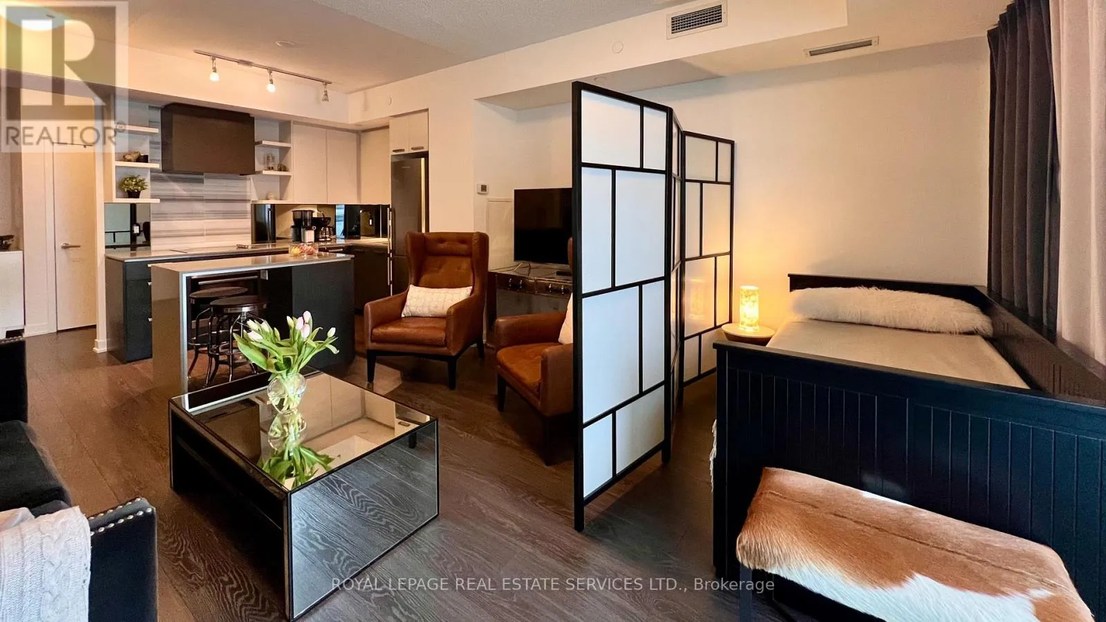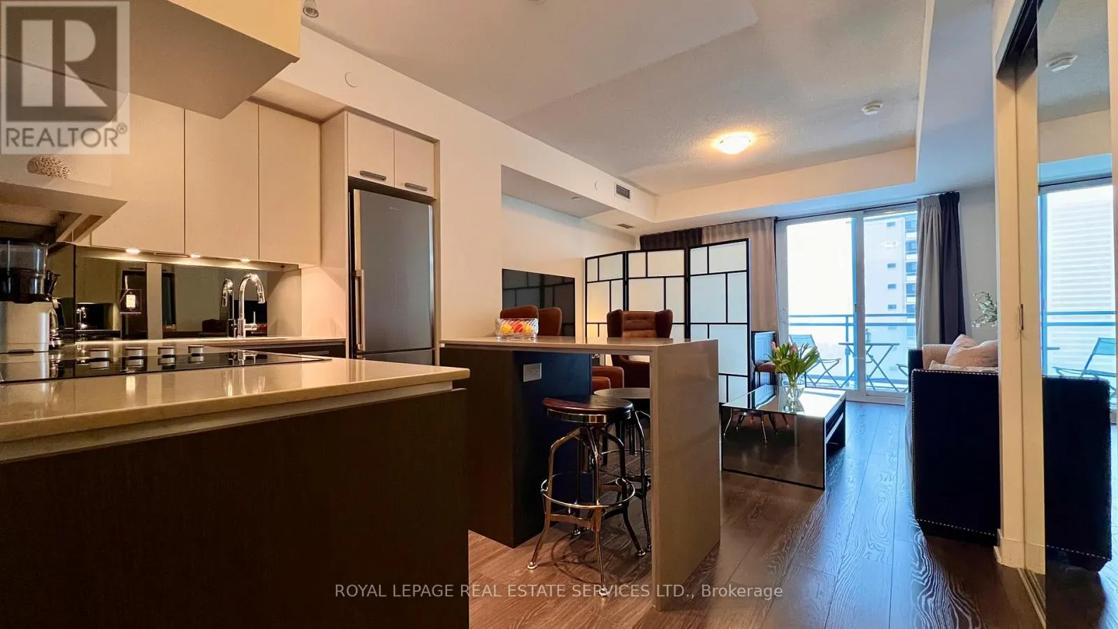 High Park Ave & Bloor St West Desirable living in High Park. A well-designed bachelor suite with modern finishes, smart storage, and a practical open layout. Large windows bring in steady natural light, and the walk-out balcony extends the living space. The kitchen is crisp and contemporary with quartz counters, stainless steel appliances, ample storage, beautiful Island, and a mirrored backsplash. The suite is clean, move-in ready, and offers a comfortable footprint in one of Toronto's most sought-after neighbourhoods. Location does the heavy lifting here - 400 acres of High Park right across the street, subway a block away, and easy access to Bloor West Village, The Junction, Roncesvalles, and Lake Ontario. Downtown is minutes by transit, and daily walks through the park are part of the lifestyle: tennis, skating, swimming, trails, zoo, and cherry blossoms in spring. Outstanding building amenities include: 24-hour concierge, fully equipped gym, yoga studio, saunas, theatre room, billiards, party room, guest suites, rooftop terrace/sundeck with BBQs, and visitor parking. The building also offers everyday convenience with a 24-hour Rabba, Vivo Italian restaurant, a boutique coffee shop, and a Baskin-Robbins opening soon. Lease includes one parking space and a storage locker. A well-located, well-kept condo - ideal for someone who wants city convenience with High Park at their doorstep. (id:27476)