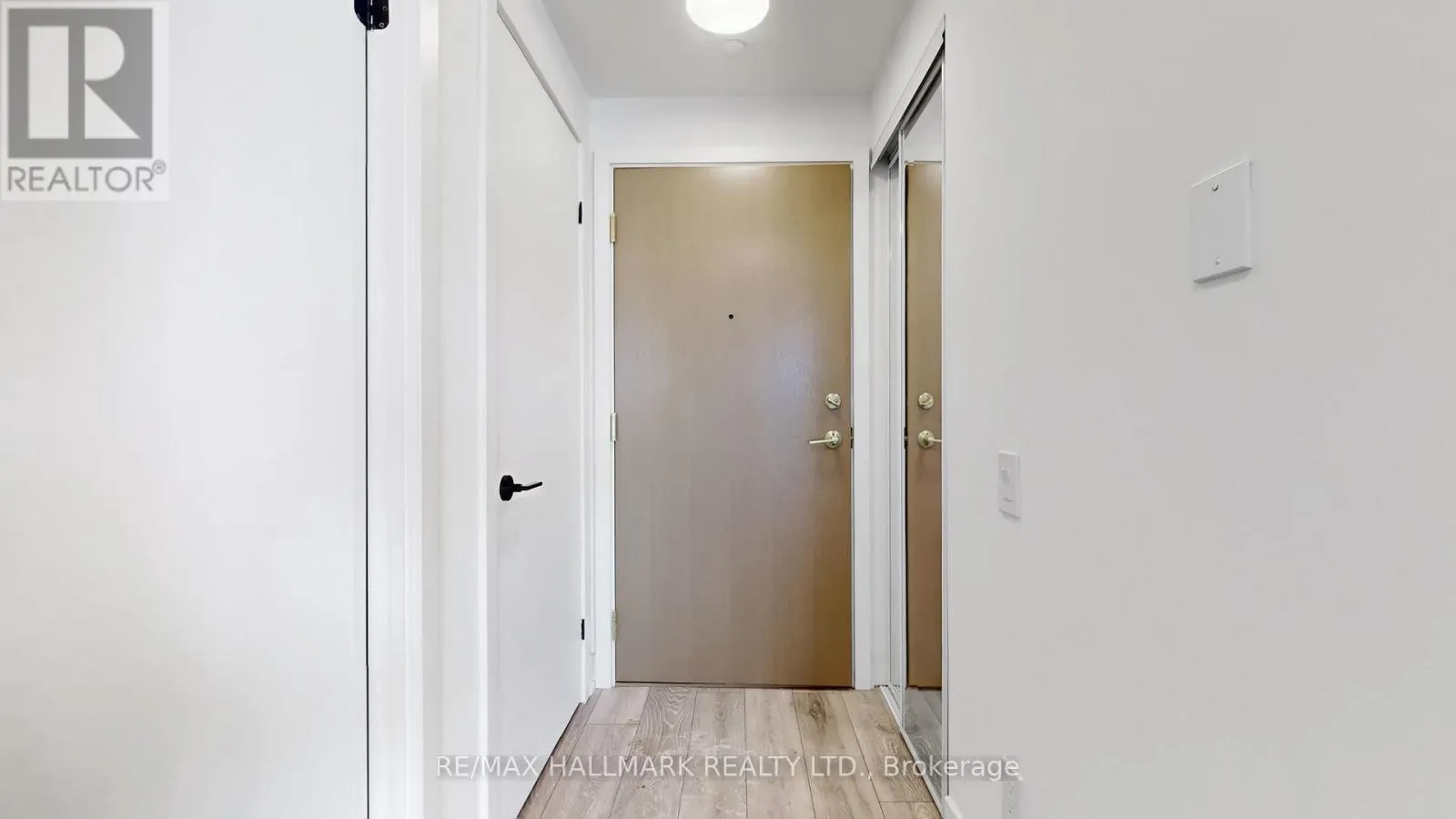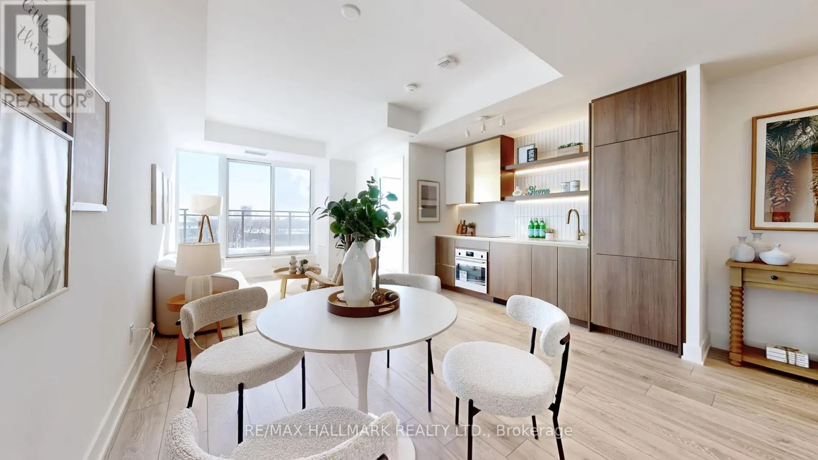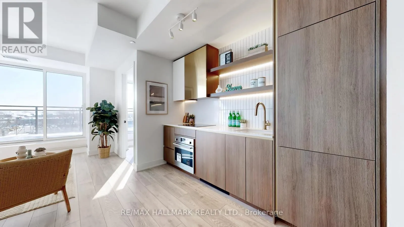 Queen S. E & Leslie St Welcome to The Poet, a contemporary boutique condo community set in the centre of Leslieville. This brand-new 2-bedroom suite offers 650 sq ft of smart, efficient living space plus an impressive 135 sq ft south-facing terrace with sweeping city views and abundant natural light. The interior is finished with thoughtful upgrades, including 9 ft smooth ceilings, wide-plank contemporary flooring, full-size integrated European appliances, soft-close designer cabinetry, custom built-in shelving, and floor-to-ceiling windows throughout. The spacious terrace is accessible directly from the living area, creating an ideal indoor-outdoor flow. Residents enjoy premium amenities such as a rooftop Sky Garden with BBQs and lounge seating, a pet spa, a fully equipped fitness centre, and an elegant party room. Perfectly positioned with TTC streetcar service at your doorstep and backing onto a park, this boutique building offers an elevated lifestyle in one of Toronto's most vibrant neighbourhoods. This never-occupied builder inventory unit includes full Tarion warranty. **HST-included, net of rebate** (id:27476)