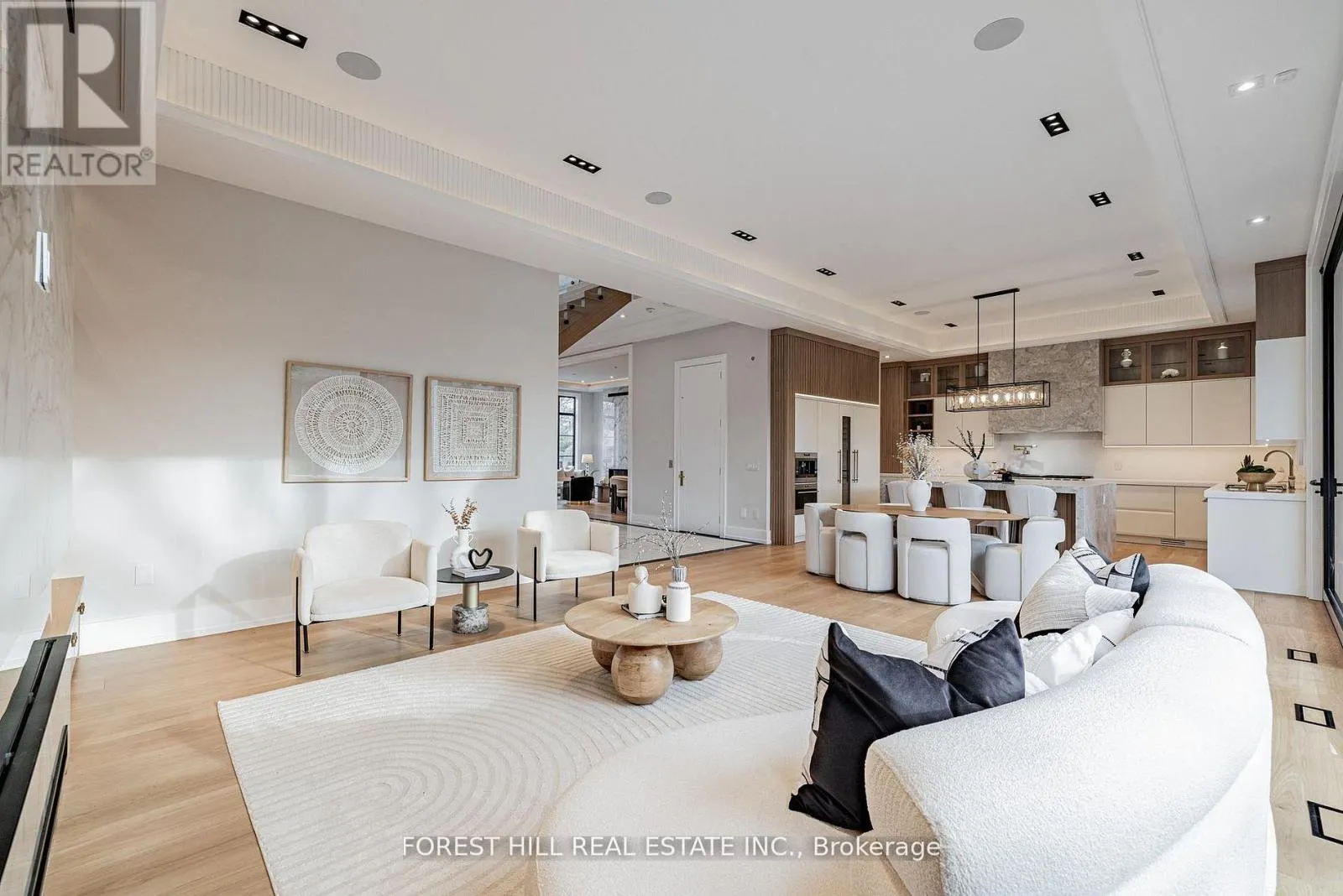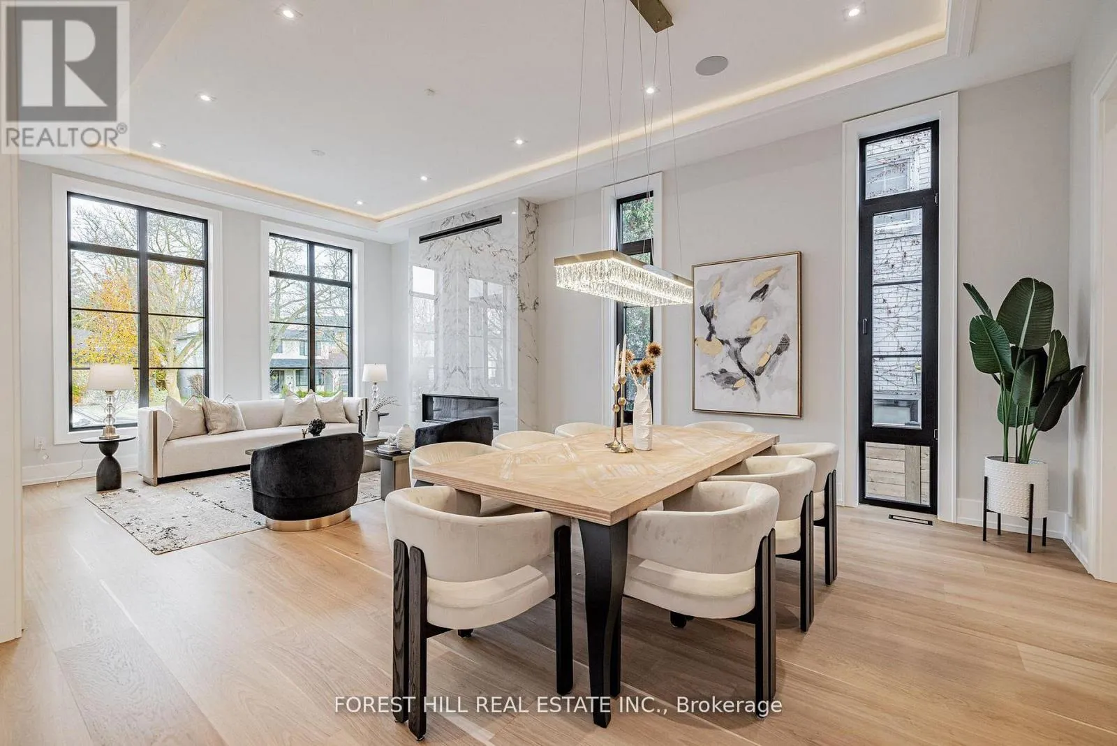 S.Foursome Crescent/W.Fenn Ave **SPECTACULAR**This luxurious/stunning C/B 5+bedrms-8washrms residence blends contemporary elegance w/modern luxury, offering an exceptional living experience in a fabulous, and one of the most affluent neighbourhood of Toronto. This residence is a true masterpiece, seamlessly blending striking design with opulent interiors that reflect and harmonize luxury and functionality. Every detail is crafted to captivate the sense of sophistication & comfort and style, offering total of approx 6500 sq.ft living spaces including a lower level-, providing abundant natural light and airy-happy atmosphere. The main floor welcomes you with a grand entry featuring intricate flooring and accent wall, soaring ceilings draw your eye upward. A refined formal living & dining space boast a 11'8" tray ceilings with rope lightings, and floor to ceiling windows, and a cozy gas fireplace, elegant built-in cabinetry, ideal for entertaining. The dream eat-in kitchen offers exquisite marble countertop and backsplash, top-of-the-line appliances(subzero & wolf brand), and a spacious breakfast area ideal for large family meals. Step outside into an oversized terrace with roof - perfect for summer or all seasons entertaining. Seamlessly flowing, the sun-filled family room with a gas fireplace and south exposure welcomes endless natural sunlight, perfect place to relax or gather. The thoughtfully designed upper flr features a practical layout, the home versatility for a senior suite with an own ensuite and closet or an ideal work-from-hm office retreat. Upstairs, the primary suite is a true sanctuary, featuring a sitting area, a spa-inspired 6-pieces heated flr ensuite with exquisite detail, and a large his/hers generous walk-in closets. The additional spacious bedrms have own ensuite, ideal for privacy and comfort. The heated bsmt flr offers endless possibilities, versatility for an extended your family's living space, including an extra large recreation rm, a hm gym, and an additional bedrm!!! (id:27476)