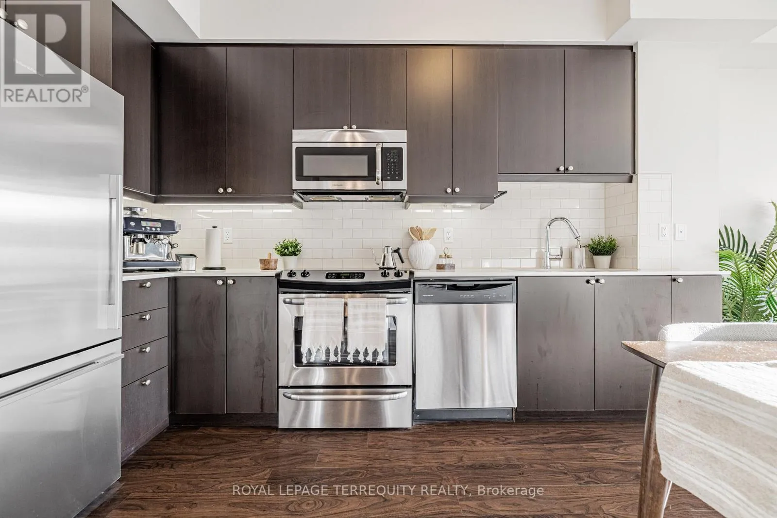Cross Streets: Eglinton and Scarlett. ** Directions: Scarlett & Eglinton. Bright, quiet, and exceptionally well located, this condo checks all the boxes for comfortable city living with a nature-forward feel. The building itself offers a refined, luxury feel, while the unit delivers a sleek, clean, and modern living space. Flooded with natural light and featuring smooth ceilings (no popcorn) and soaring 9-foot ceilings, the space feels open and modern throughout. Solid concrete construction provides excellent sound insulation, creating a remarkably peaceful home. Enjoy full-size appliances, a functional layout, and step outside to a generously sized balcony-perfect for morning coffee or unwinding at the end of the day. Just a five-minute walk to the new Mount Dennis UP Express Station and the Eglinton LRT, commuting downtown or across the city is effortless. Outdoor lovers will appreciate being moments from trails, paths, parks, and the Humber River, with Scarlett Woods and Lambton Golf & Country Club nearby. Everyday conveniences are close at hand as well, with grocery stores and local amenities just minutes away. A bright, well-built condo in a rapidly improving neighbourhood - this is easy living with long-term upside. (id:27476)