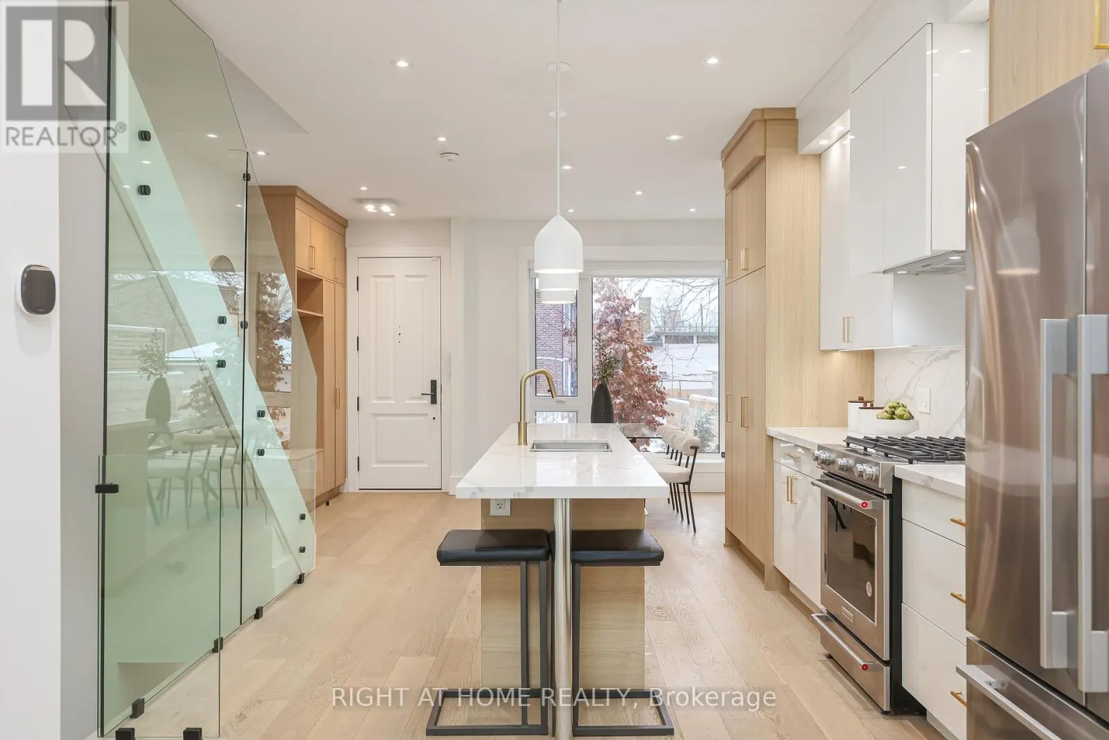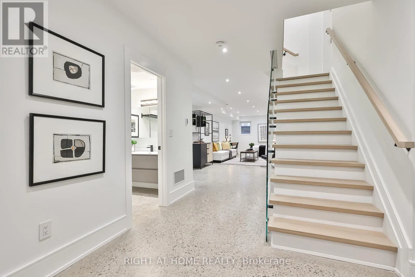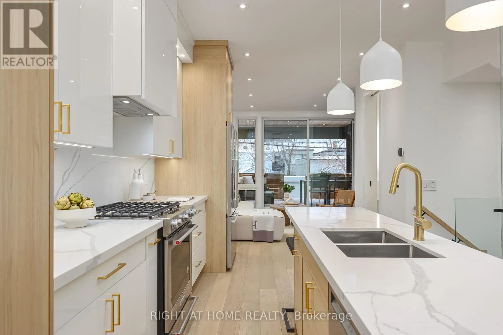 Cross Streets: Vaughan And Winnett. ** Directions: Vaughan Rd and Winnett Ave. Some homes simply stand out, and 193 Winnett Avenue is one that effortlessly raises the bar. From the moment you arrive, the solid mahogany front door sets the tone for a residence where thoughtful design and elevated finishes come together beautifully.Inside, soaring 10 foot high ceilings and wide plank white oak floors create an airy, sophisticated atmosphere, while the open concept main floor flows seamlessly for both daily living and stylish entertaining, offering almost 3,000 sq ft of luxury living across thoughtfully designed levels.At the heart of the home, the Scandinavian inspired kitchen blends clean lines with exceptional function, featuring Caesarstone countertops and backsplash, custom millwork, brushed gold finishes, and premium appliances including a Fisher and Paykel refrigerator and gas range. The living area extends naturally to a covered composite deck with cedar railings and gas rough in, creating an inviting indoor outdoor lifestyle.The second floor offers three spacious bedrooms with custom built ins, heated bathroom floors, and refined finishes throughout. The entire third floor is reserved for a true primary retreat, complete with its own five piece spa inspired ensuite, custom closet systems, and a walkout to a Juliet balcony, delivering privacy and luxury on a level all its own. The lower level adds incredible flexibility with a separate side entrance, 9 foot ceilings, heated polished concrete floors, and a registered legal duplex designation that allows the basement to be used to generate income.Mechanical upgrades such as hydronic snow melt walkways and parking pad mean no more shovelling snow, while dual Lennox HVAC systems, an NTI on demand boiler, smart thermostats, and exterior security cameras reflect the level of care poured into every detail. Perfectly positioned in a family friendly neighbourhood with top rated schools and steps to public transit, this is a home that delivers comfort, quality, and long term value in equal measure. (id:27476)