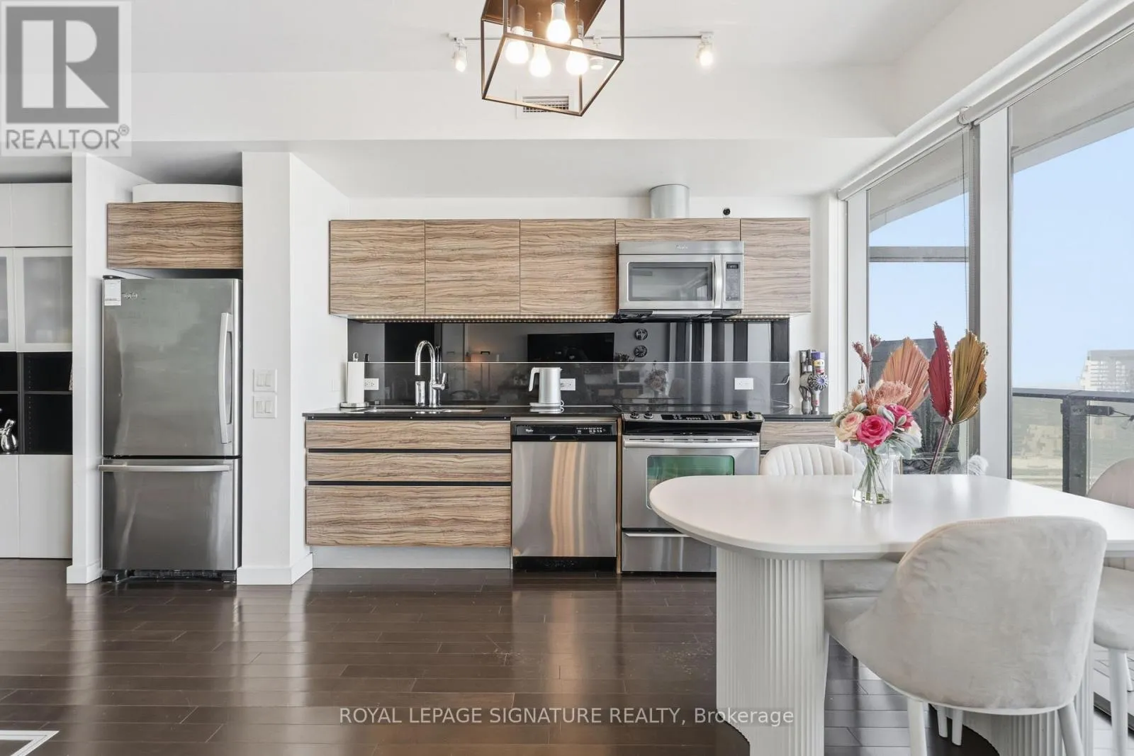 Front St & Cherry St Welcome to this beautifully appointed 1 + den suite at The Gooderham, ideally located at 390 Cherry Street in Toronto's iconic Distillery District. This east-facing residence captures serene morning light and offers a calming lake view backdrop, bringing a rare sense of openness to downtown living. Complete with one parking space and an EV charging add-on available, it's urban convenience without compromise. Inside, the thoughtfully designed layout maximizes every square foot. The functional den works beautifully as a home office, study space, while the semi-ensuite bathroom provides practical, seamless access. Modern touches throughout create a clean, contemporary feel, complemented by upgraded laundry for everyday ease. Residents enjoy access to high-end amenities, including an outdoor pool and a fully equipped indoor gym, supporting an active and balanced lifestyle. With George Brown College just minutes away, the location adds flexibility and appeal for end users and investors alike. Surrounded by historic architecture, boutique cafés, acclaimed restaurants, and waterfront trails, this is a stylish opportunity to own in one of Toronto's most vibrant and walkable communities. (id:27476)