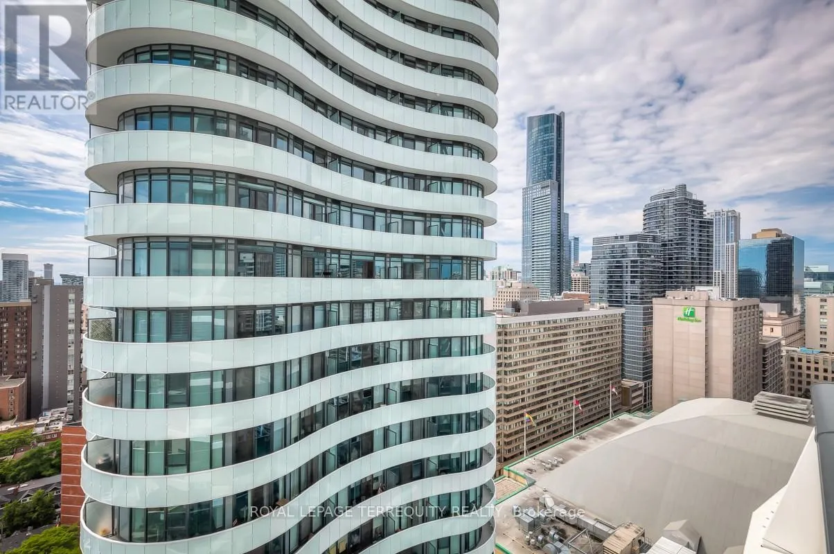 Church St and Carlton Welcome to Axis Condos in the heart of downtown Toronto. This bright and functional 1 bedroom plus den suite features an efficient open concept layout with floor to ceiling windows, a full south facing balcony, and hardwood flooring throughout. The modern kitchen is equipped with built in stainless steel appliances and ample storage, while the den offers flexibility as a second bedroom, home office, or study. The unit includes a full 4 piece bathroom, ensuite laundry, central air conditioning, and window coverings. Building amenities include concierge service, fitness studio, yoga and weight rooms, media and party rooms, business centre, and a rooftop terrace with BBQ areas. Located at Church and Carlton, steps to TTC, hospitals, universities, Eaton Centre, groceries, and restaurants, offering a walk score of 98. No parking or locker included. Tenants pay hydro and water through Provident. Available March 14, 2026. Photos are from a previous listing prior to current tenant occupancy. (id:27476)