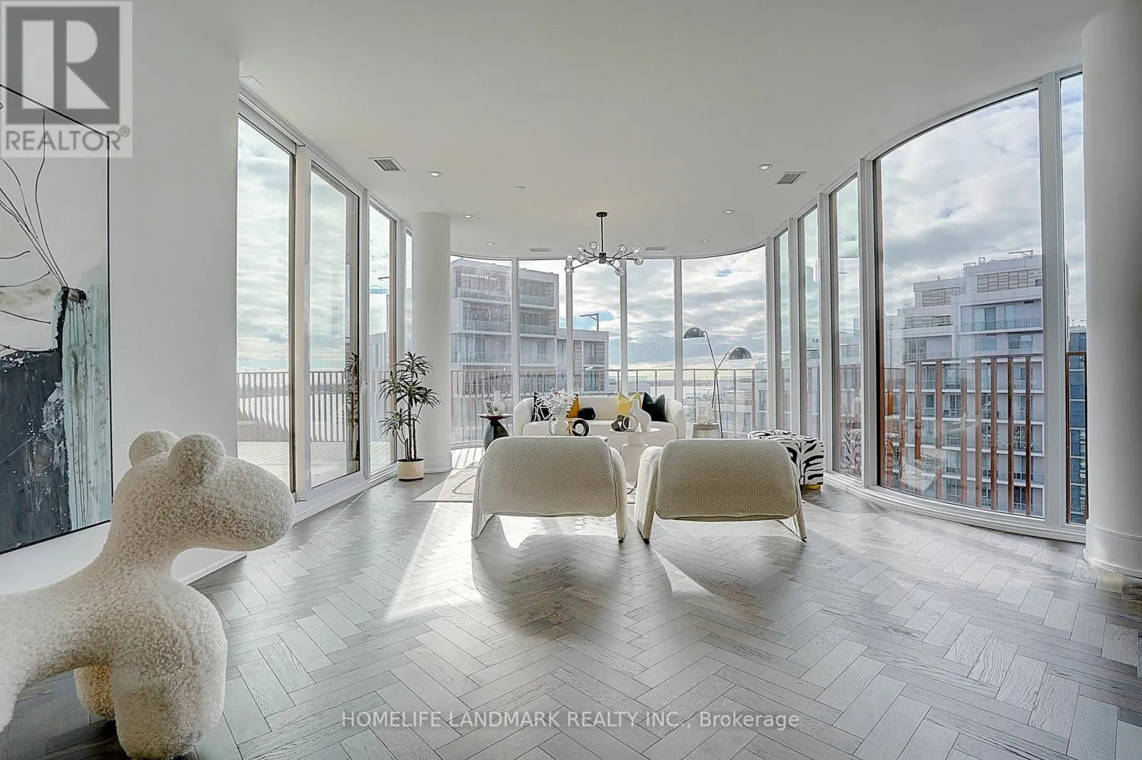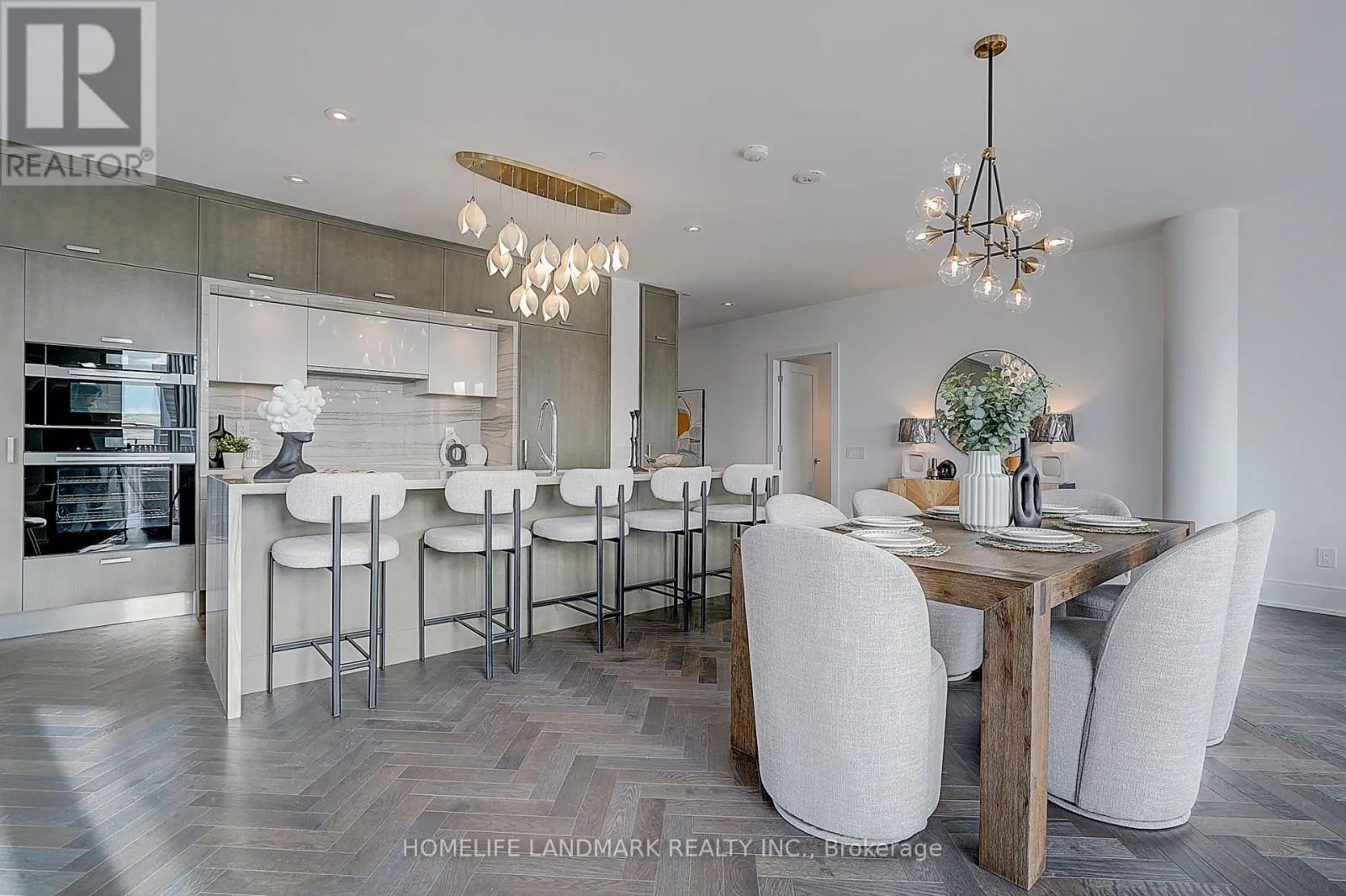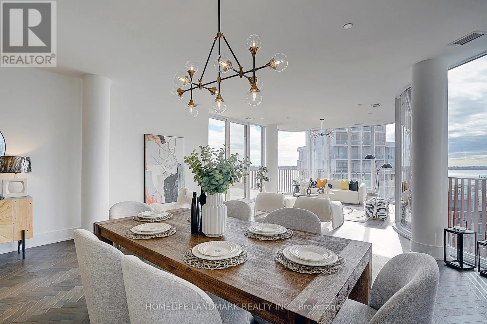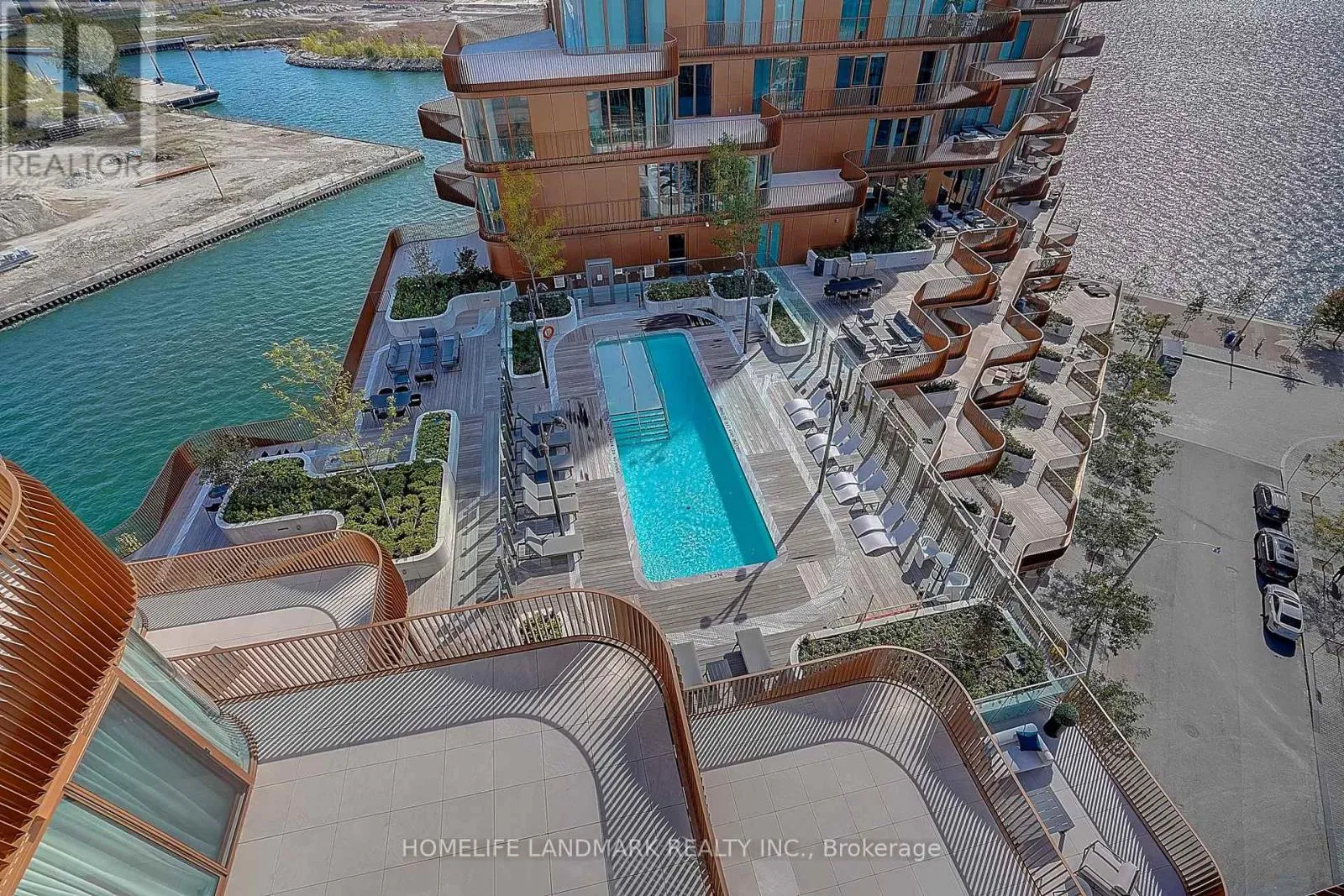 Cross Streets: Queens Quay and Parliament. ** Directions: Entrance off Merchants' Wharf. Welcome to luxury waterfront living at Tridel's Aqualuna, located in Toronto's vibrant East Bayside district. This exceptional brand-new 2-bedroom + enclosed den residence offers 2,433 sq. ft. of upgraded living space, featuring premium finishes and breathtaking south-facing views of the lake, gardens, and pool.Designed for both comfort and elevated entertaining, the suite showcases floor-to-ceiling windows, a spacious open layout, and a gourmet kitchen equipped with integrated appliances, an upgraded Miele induction cooktop with touch controls, natural stone countertops, custom cabinetry, a built-in wine cellar, and an enlarged double-waterfall island. Both bedrooms include private ensuites with heated floors and upgraded natural stone countertops, while the double-door enclosed den provides an ideal office or guest room. The luxurious primary retreat features his-and-hers walk-in closets, a spa-inspired ensuite, and direct access to a serene lake-view terrace, complemented by a second private balcony off the 2nd bedroom. Additional conveniences include a full-size laundry room with sink and ample cabinetry, along with an EV-ready parking space.Resort-style amenities include a lakeside outdoor pool, fitness and yoga studios, sauna, media and party lounges, and 24/7 concierge service. Just steps from Sugar Beach, the Martin Goodman Trail, the waterfront promenade, and some of the city's best dining and cultural destinations, this home offers an unmatched blend of tranquility, sophistication, and urban convenience. (id:27476)