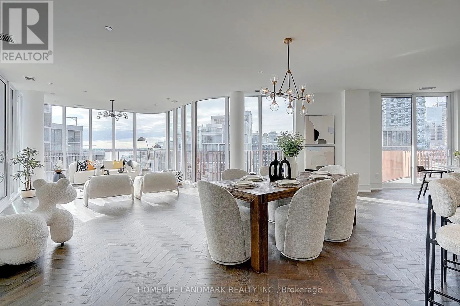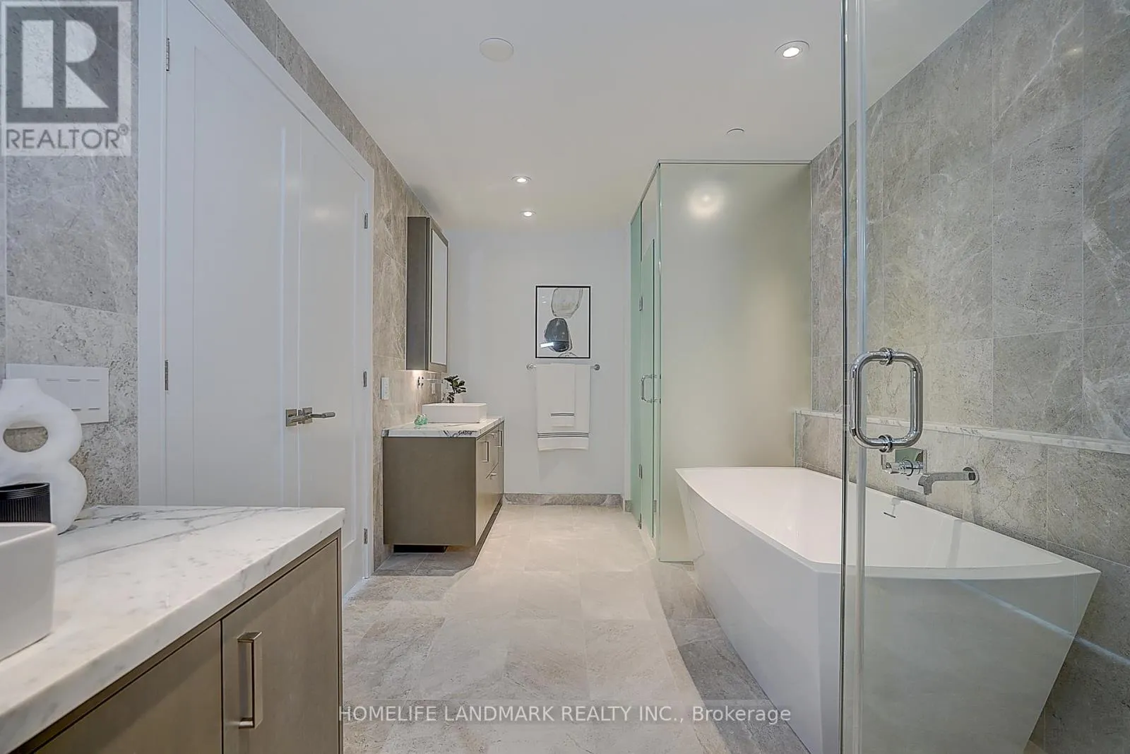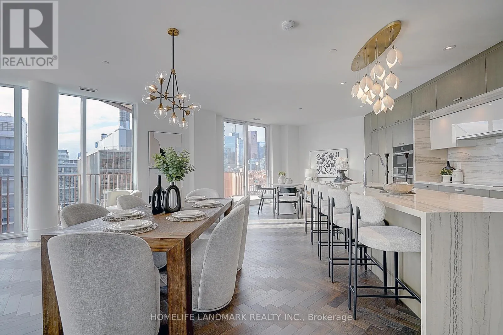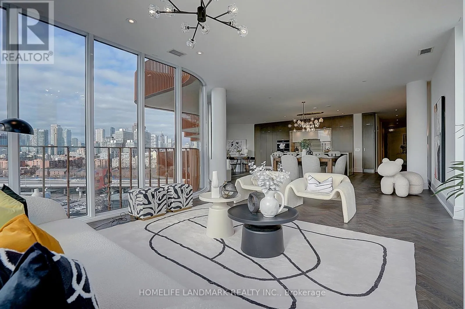 Cross Streets: Queens Quay and Parliament. ** Directions: Entrance off Merchants' Wharf. Welcome to luxury waterfront living at Tridel's Aqualuna, located in Toronto's vibrant East Bayside district. This exceptional brand-new 2-bedroom + enclosed den residence offers 2,433 sq. ft. of upgraded living space, featuring premium finishes and breathtaking south-facing views of the lake, gardens, and pool.Designed for both comfort and elevated entertaining, the suite showcases floor-to-ceiling windows, a spacious open layout, and a gourmet kitchen equipped with integrated appliances, an upgraded Miele induction cooktop with touch controls, natural stone countertops, custom cabinetry, a built-in wine cellar, and an enlarged double-waterfall island. Both bedrooms include private ensuites with heated floors and upgraded natural stone countertops, while the double-door enclosed den provides an ideal office or guest room. The luxurious primary retreat features his-and-hers walk-in closets, a spa-inspired ensuite, and direct access to a serene lake-view terrace, complemented by a second private balcony off the 2nd bedroom. Additional conveniences include a full-size laundry room with sink and ample cabinetry, along with an EV-ready parking space.Resort-style amenities include a lakeside outdoor pool, fitness and yoga studios, sauna, media and party lounges, and 24/7 concierge service. Just steps from Sugar Beach, the Martin Goodman Trail, the waterfront promenade, and some of the city's best dining and cultural destinations, this home offers an unmatched blend of tranquility, sophistication, and urban convenience. (id:27476)