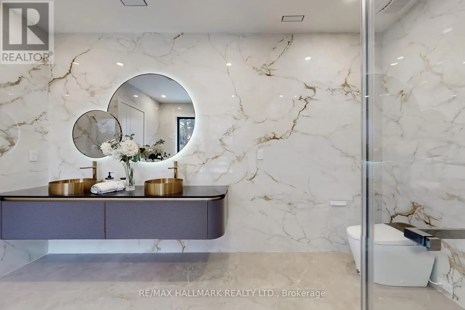 Bayview/Leslie/Finch/Sheppard Must Sell! Located In Prestigious Bayview Village, Tucked Away On A Quiet And Private Cul-De-Sac, This Custom-Built Luxury Residence Offers Exceptional And Premium Features Thru-out. This Stunning Triple Car Garage Home Features Heated Driveway And Exterior Stairs, Interior Heated Floors On All Tiled Areas For Ultimate Year-Round Comfort. Designed For Both Refined Living And Elegant Entertaining. The Home Offers Two Beautifully Appointed Kitchens: A Fully Open-Concept Main Kitchen With Built-In Top-Of-The-Line Miele Appliances Including 6 Burner w/ Griddle Gas Stove Steamer and Oven Plus An Oversized Centre Island, Perfect For Hosting Family Gatherings Or Omakase-Style Dining, As Well As A Separate Enclosed Chef's Kitchen W/ B/I Bosch Cook Top Ideal For Heavy Cooking And Catering. The Breakfast Area Walks Out To A Spacious Deck, Creating Seamless Indoor-Outdoor Living. The Primary Bedroom Features His And Her Walk-In Closets With Fully Built-In Organizers, And A Luxurious Ensuite With Heated Floors And A Standalone Soaking Tub Overlooking The Backyard-Your Private Retreat For Relaxation. Generous Bedroom Sizes All Come With Its Own Private Ensuite w/ Modern Glass Showers And Custom Closet Organizers, Offering Comfort And Privacy For Family And Guests. Heated Walk-Out Basement 10 Foot Ceilings, R/I Bar A Theatre Room, Nanny Suite, And A Home Gym, With Thoughtfully Designed Living Spaces Throughout. Zoned for highly-ranked Bayview Middle & Earl Haig Secondary schools; close to Bayview Village mall, North York General Hospital, and only minutes to 401 and Sheppard subway station. Walking distance to parks, ravines, shops, transit, library, coffee, amenities, and much more. Exceptional Value Among Bayview Village Custom Homes. Check 3D Virtual Tour. (id:27476)