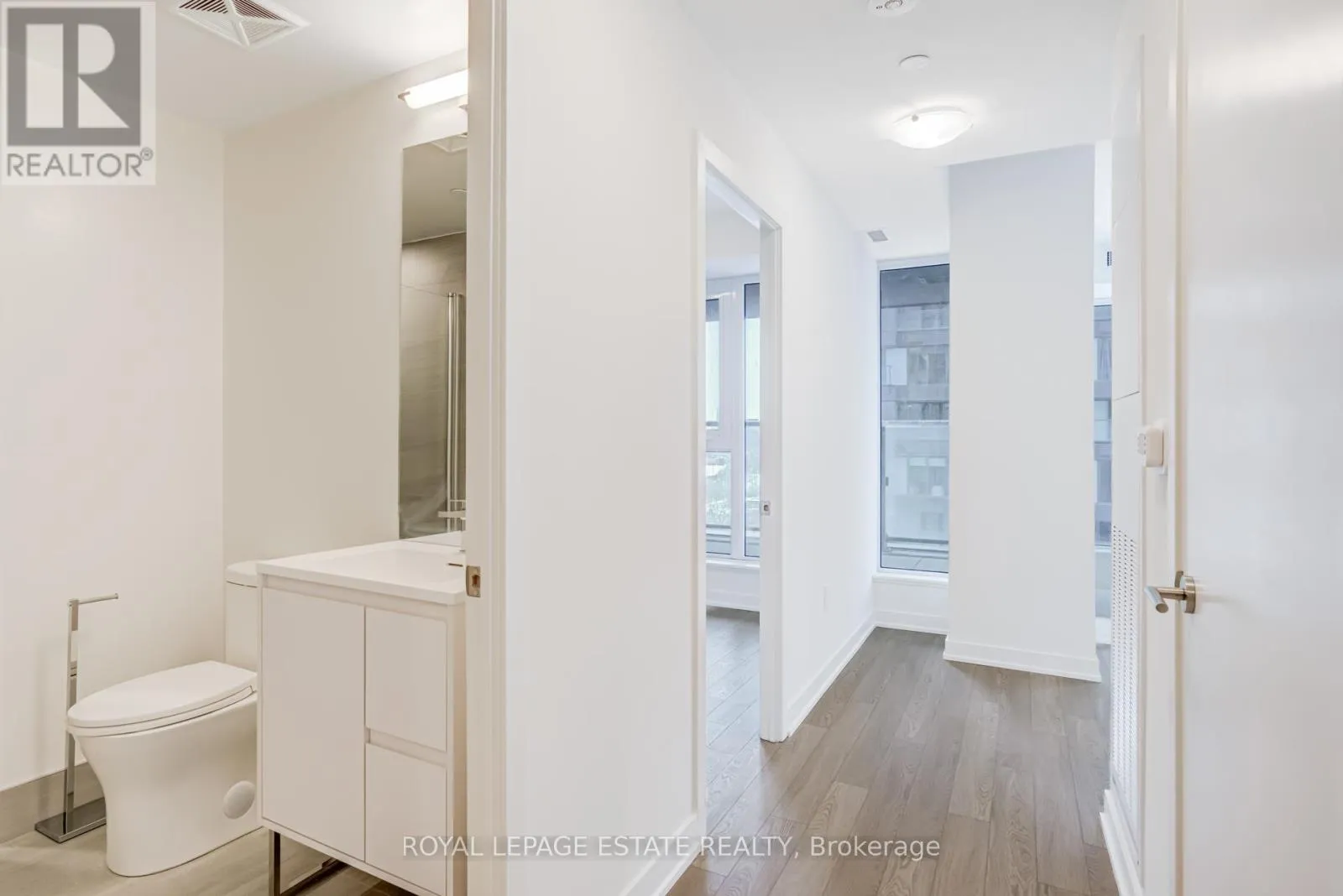 Cross Streets: Don Mills Road & Eglinton Avenue East. ** Directions: Take Don Mills Road North then turn left on to Moriyama Drive - Follow signs to Quarrington Lane. Welcome to this remarkable one-bedroom residence at Crosstown Condos in the heart of Don Mills & Eglinton - one of Toronto's most exciting and evolving communities. Perched above the city, this sun-filled suite offers breathtaking skyline views of downtown Toronto framed by lush treetops - the perfect blend of urban energy and natural beauty. Step out onto your private balcony to enjoy your morning coffee or unwind in the evening while taking in the sparkling city lights. Inside, thoughtful design meets modern luxury. The sleek kitchen features built-in appliances by Miele, complemented by a striking black Kohler faucet and black stainless steel undermount sink - a sophisticated space that's as functional as it is beautiful. The spa-inspired bathroom boasts a contemporary vanity and a stand-up shower featuring a hand shower and shower head finished with elegant porcelain tiles, creating a serene retreat. Large windows flood the unit with natural light, enhancing the open feeling and highlighting the clean lines and modern finishes throughout. Located in the vibrant Don Mills community, close to the Eglinton LRT, shops at Don Mills, dining, grocery stores and parks, this condo offers the perfect balance of lifestyle and convenience. Property is virtually staged (id:27476)