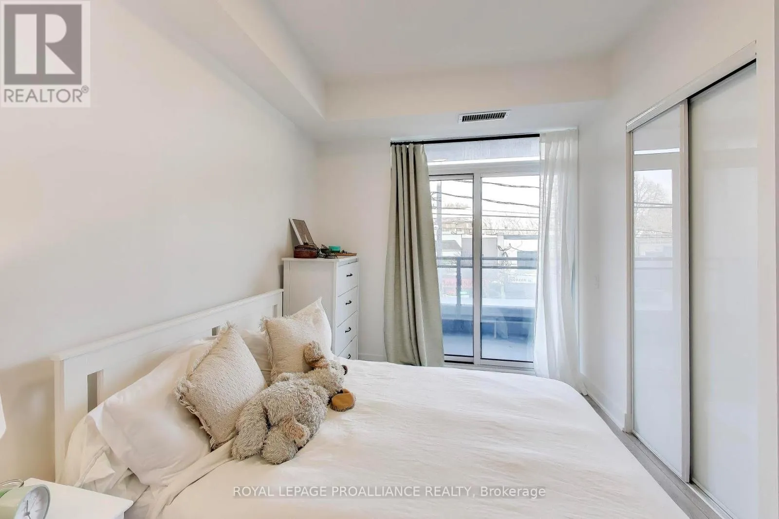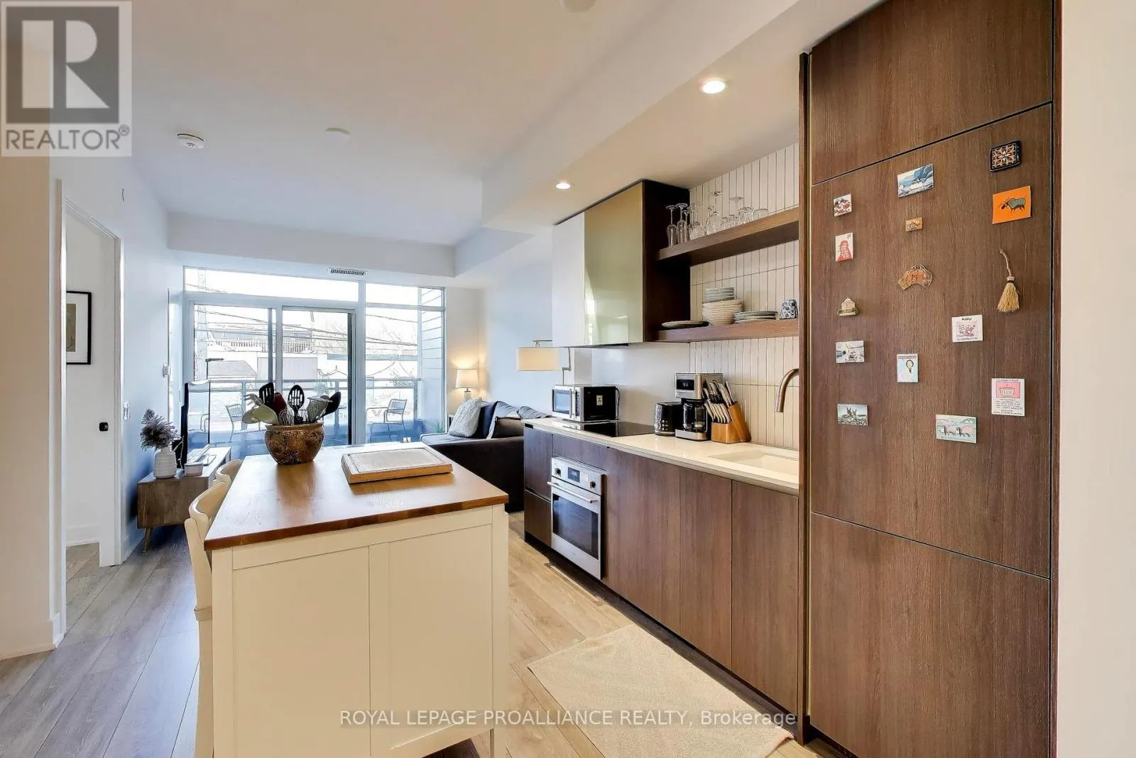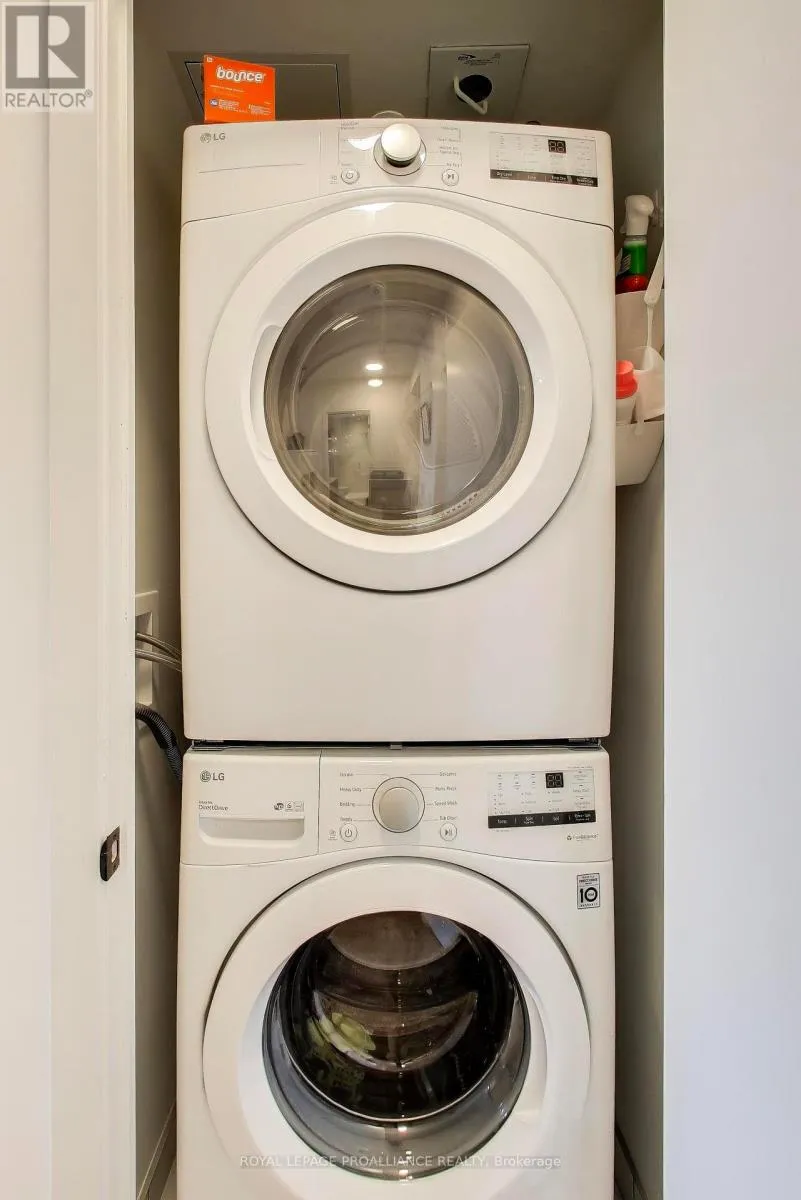 Queen St. E & Leslie St. Welcome to The Poet, an intimate boutique residence in the heart of Leslieville. This highly sought after 2nd floor corner suite offers desirable north exposure and beautiful natural light throughout the day, with open views along vibrant Queen Street East. Thoughtfully designed, this spacious 2 bedroom plus large den layout stands apart. The second bedroom includes an east-facing window that brings in gorgeous morning light, creating a bright and comfortable space. The oversized den offers true flexibility and is ideal for a dedicated home office, library, nursery, or guest area. The open concept living and dining space flows seamlessly from a sleek modern kitchen with integrated appliances and contemporary cabinetry. Nine-foot ceilings and floor to ceiling windows enhance the sense of space and light, while the corner positioning adds privacy and an airy feel throughout. A standout feature is the generous 119 square foot balcony, accessible from both the living room and the primary bedroom. This expansive outdoor space truly extends your living area and provides the perfect setting for outdoor dining, entertaining, morning coffee, or relaxed evenings. For added convenience, the locker is located right outside the unit. Residents enjoy premium building amenities including a concierge, rooftop Sky Garden with gas BBQs and lounge seating, a fully equipped and modern gym, a stylish party room with wet bar, theatre screen and plush seating, a pet spa, an in-house bike repair station, and direct access to Maple Leaf Forever Park. With the 24 hour Queen streetcar just steps from the door and the Martin Goodman Trail nearby, this location offers seamless connectivity in one of Toronto's most sought-after neighborhoods. (id:27476)