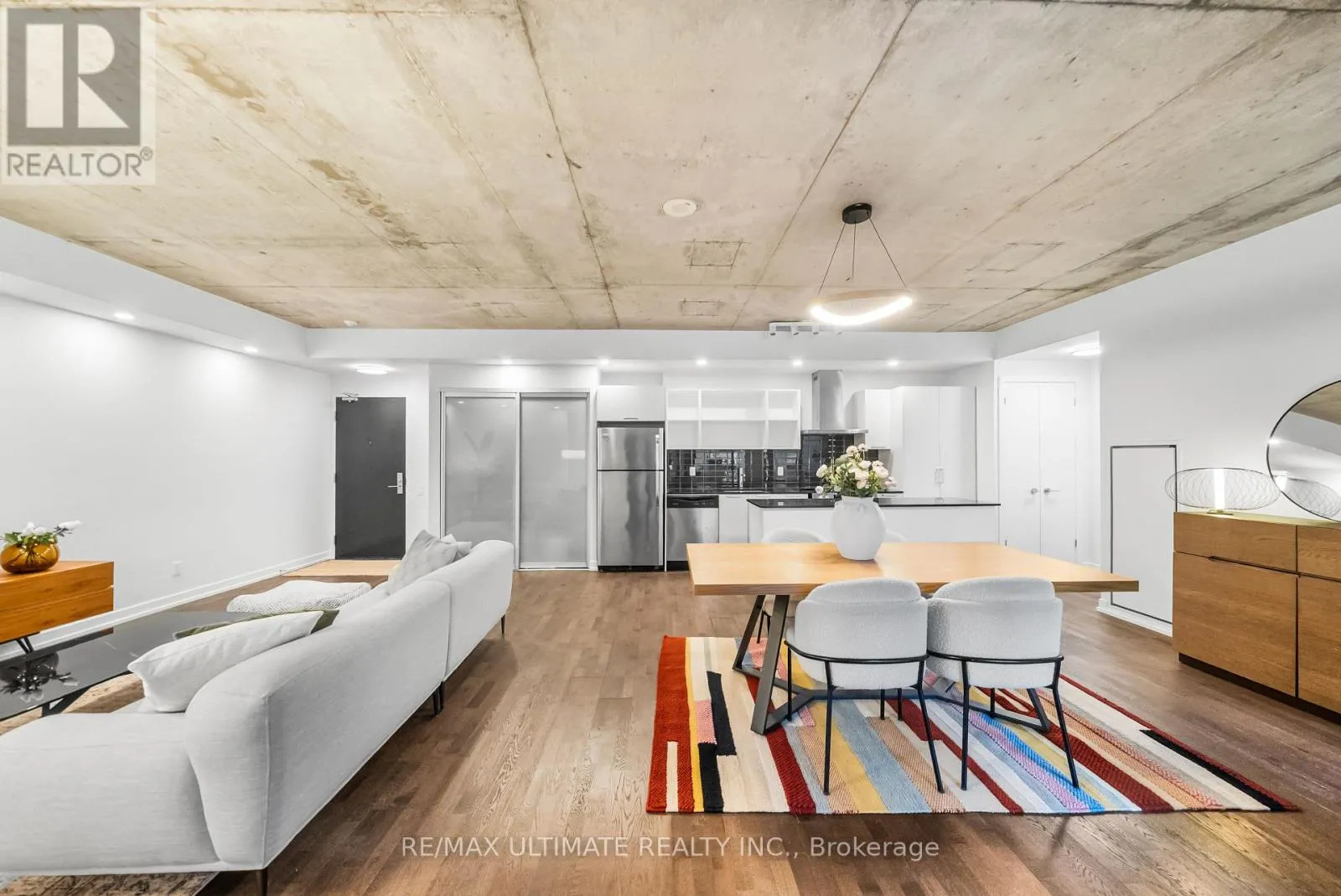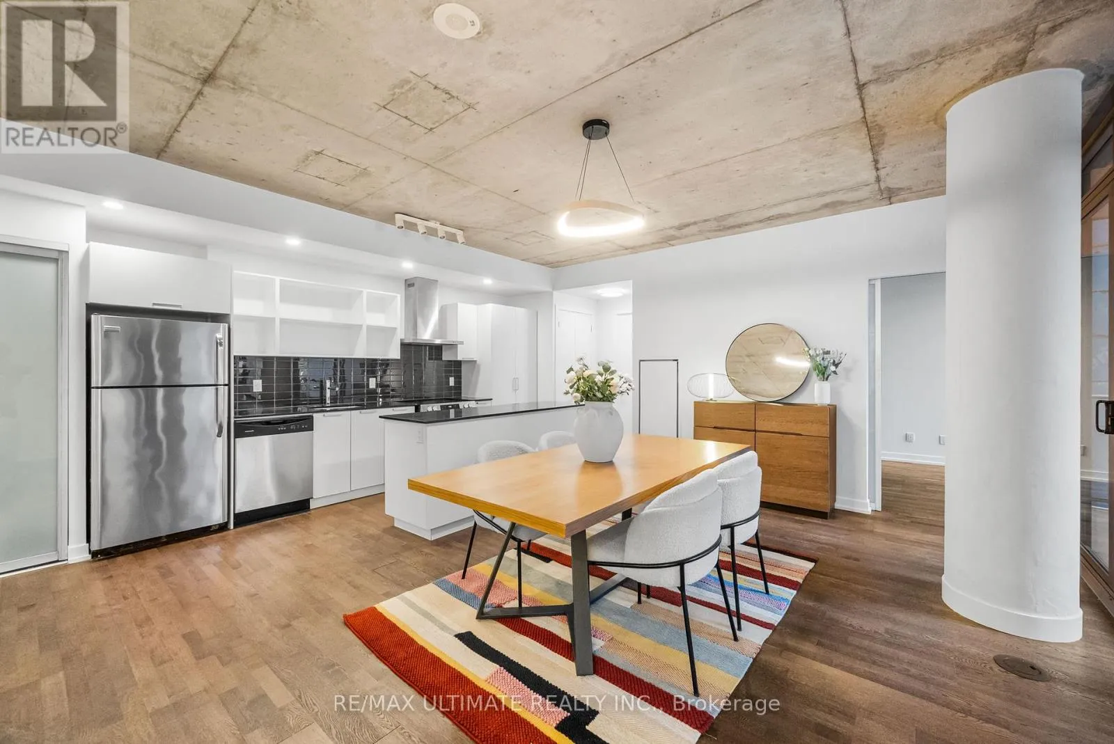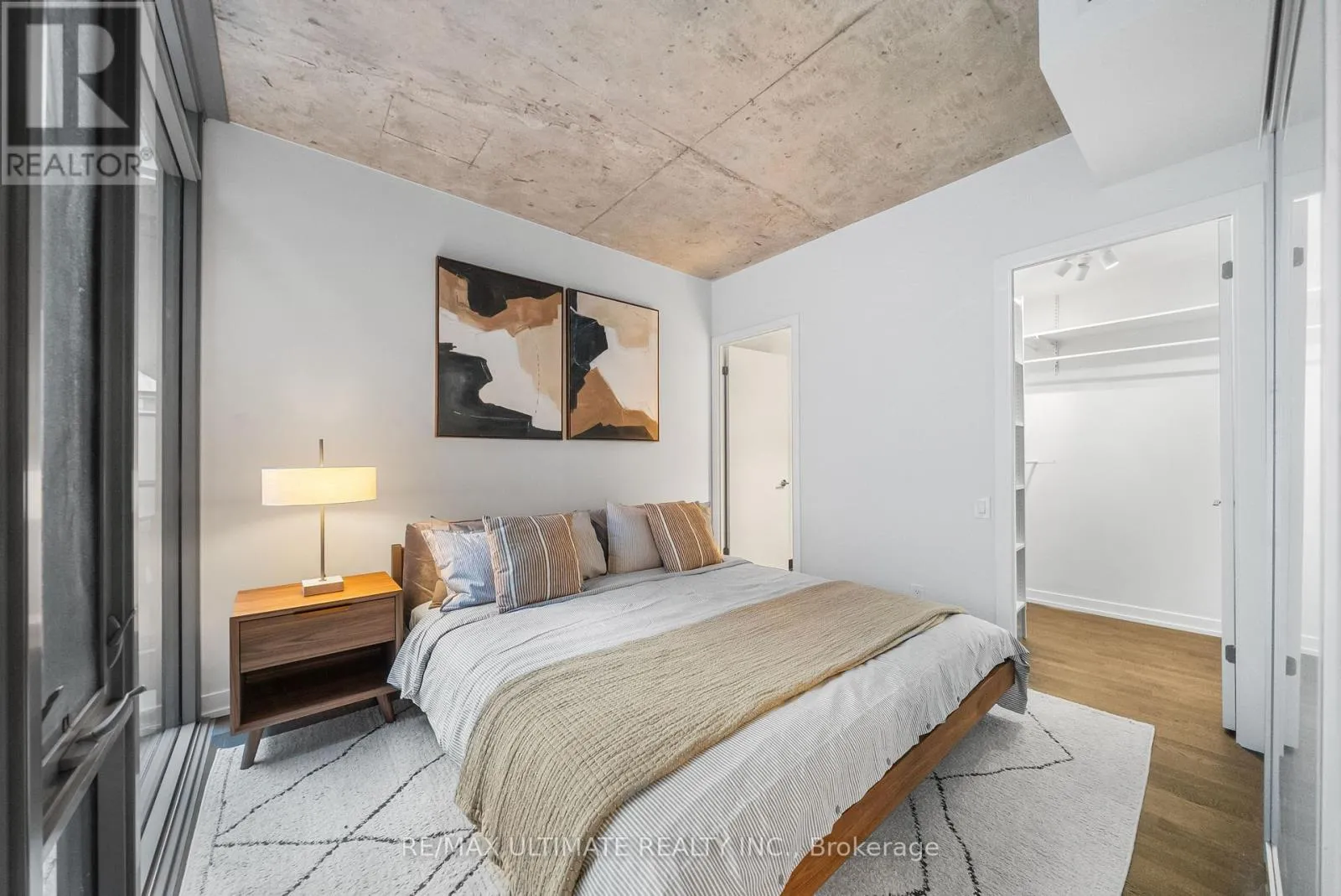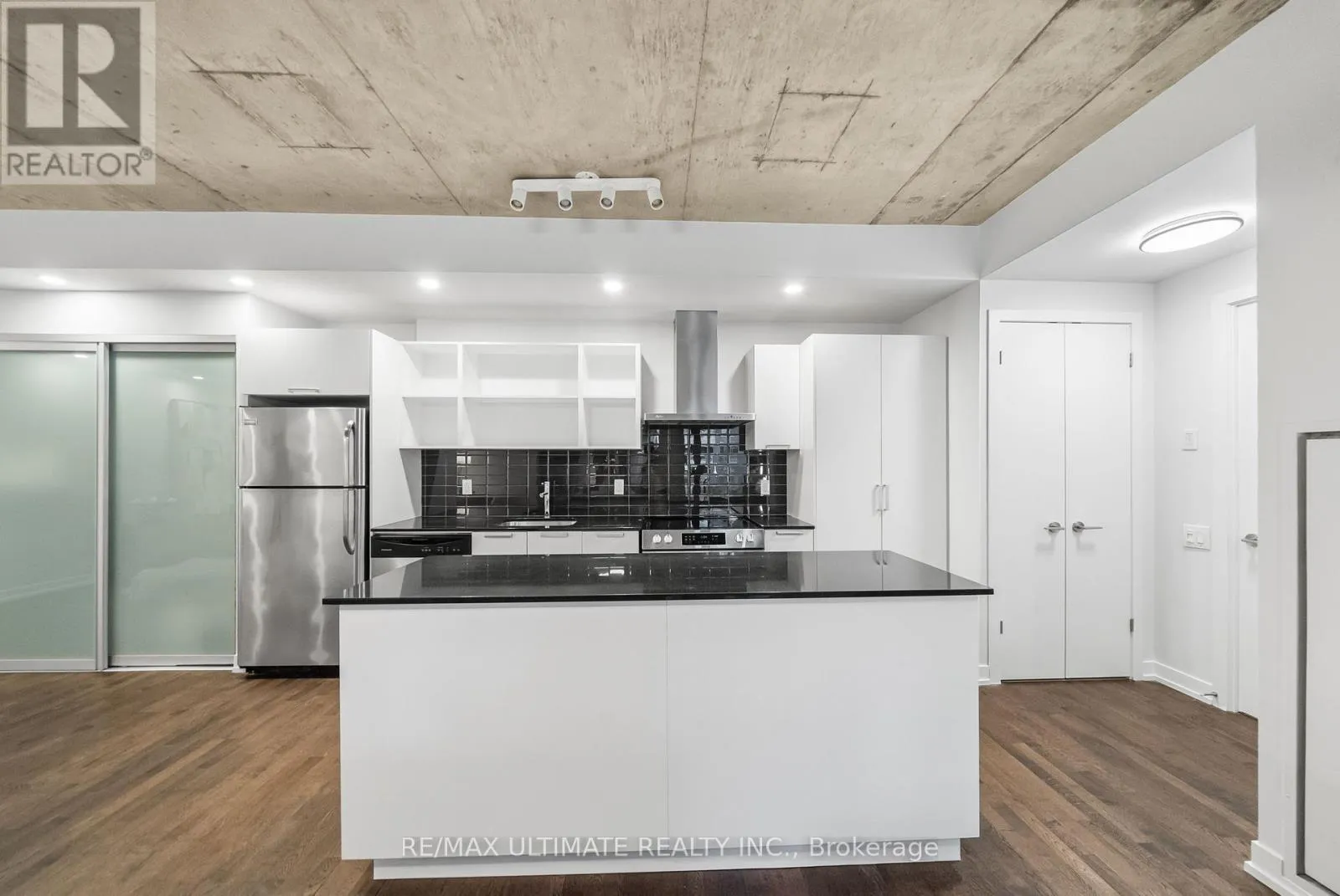 King ST. W / Bathurst Experience boutique modern urban living in this stunning 1,086 sq ft 2 bedroom - 2 bathroomgenerous 95 sq ft balcony. Designed with 9-ft exposed concrete ceilings and floor-to-ceilingsuite in the heart of King West. 991 sq ft of meticulously designed interior space and awindows, this home blends modern style with functional comfort. The open-concept kitchenincludes an extra-wide marble-topped island, stainless steel appliances, and ample storageideal for everyday cooking and effortless entertaining. The open-concept living and diningarea extends seamlessly to a bright balcony, perfect for outdoor dining or unwinding with acloset and a sleek glass-enclosed en-suite shower. The second bedroom provides flexibility forview over the courtyard. The king-sized primary suite offers a peaceful retreat with a walk-inguests, a home office, or creative space, and is complemented by a full second bathroom.Additional highlights include in-suite laundry and generous storage throughout. This pet-friendly building offers premium amenities including a 24-hour concierge, a fully equippedgym, and an inner courtyard green space. 1 priority parking spot is included. Located stepsfrom the King Streetcar, the upcoming Ontario Line, parks, restaurants, cafes, galleries, andneighbourhoods.shops, this is a rare opportunity to own a split layout condo in one of Toronto's most vibrant (id:27476)