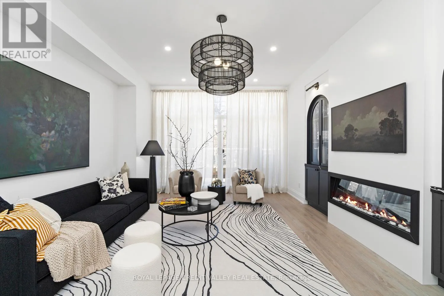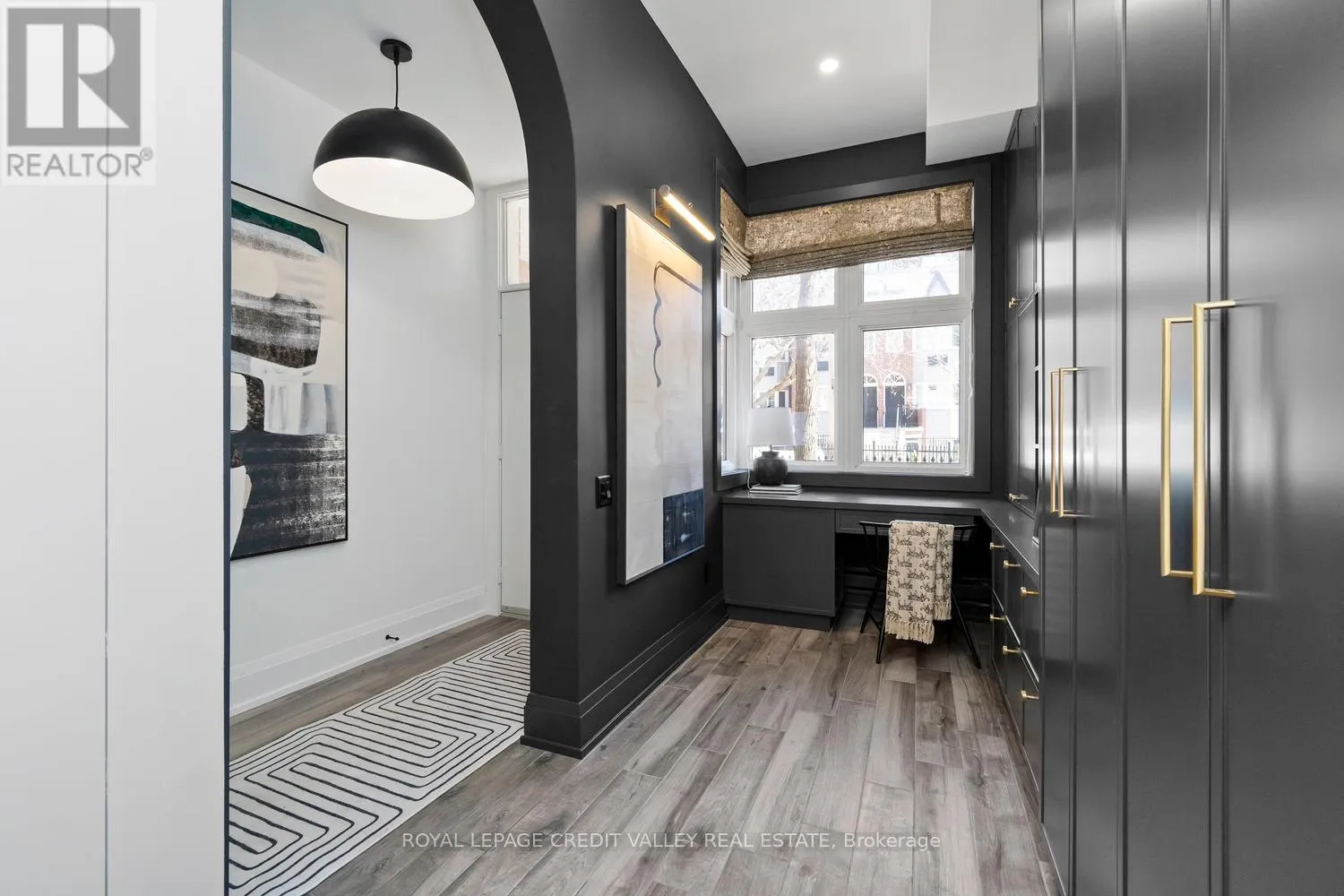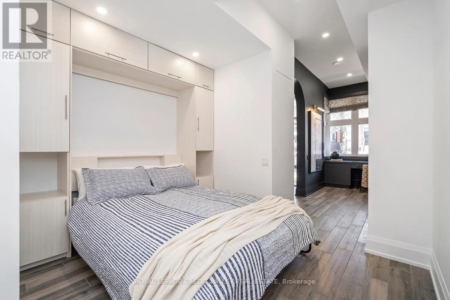 Cross Streets: King St W / Tecumseth St. ** Directions: West on Wellington from Bathurst. Nestled in the heart of the city, this stunning fully furnished townhouse offers a seamless blend of luxury, sophistication, and functionality. Completely custom redesigned, every detail of this residence has been meticulously curated to create a living space that exudes elegance and charm. Upon entering, guests are greeted by the grandeur of arched doorways and custom mill work setting the tone for the exquisite craftsmanship found throughout the home allowing for both form and function. For those who appreciate the convenience of working from home, a dedicated office space provides a quiet retreat with big windows, while a Murphy bed in the den offers flexibility for overnight guests. What's more, luxury meets practicality with interior garage access, built-ins, ample storage and ensuite laundry facilities, ensuring convenience at every turn. The kitchen boasts a stylish granite island, perfect for entertaining guests or enjoying casual meals with family overlooking the expansive great room featuring 10 feet soaring ceilings offering openness as well as a walk-out to the balcony perfect for enjoying that morning tea or coffee. The primary bedroom is a sanctuary of comfort with herringbone flooring throughout, featuring his and her sinks, separate showers and switchable privacy glass. Two additional luxurious bedrooms above provide ample space for family or guests with a beautifully tiled washroom offering a spa-like ambiance. However, the piece de resistance of this remarkable townhouse is the massive rooftop patio, offering unparalleled views of the iconic CN Tower and the city skyline. Whether hosting soirees under the stars or simply enjoying a morning coffee with breathtaking vistas, the rooftop patio is sure to be the envy of all who visit. Experience the epitome of urban living in this meticulously designed townhouse, where every detail has been thoughtfully considered to elevate your lifestyle to new heights. (id:27476)