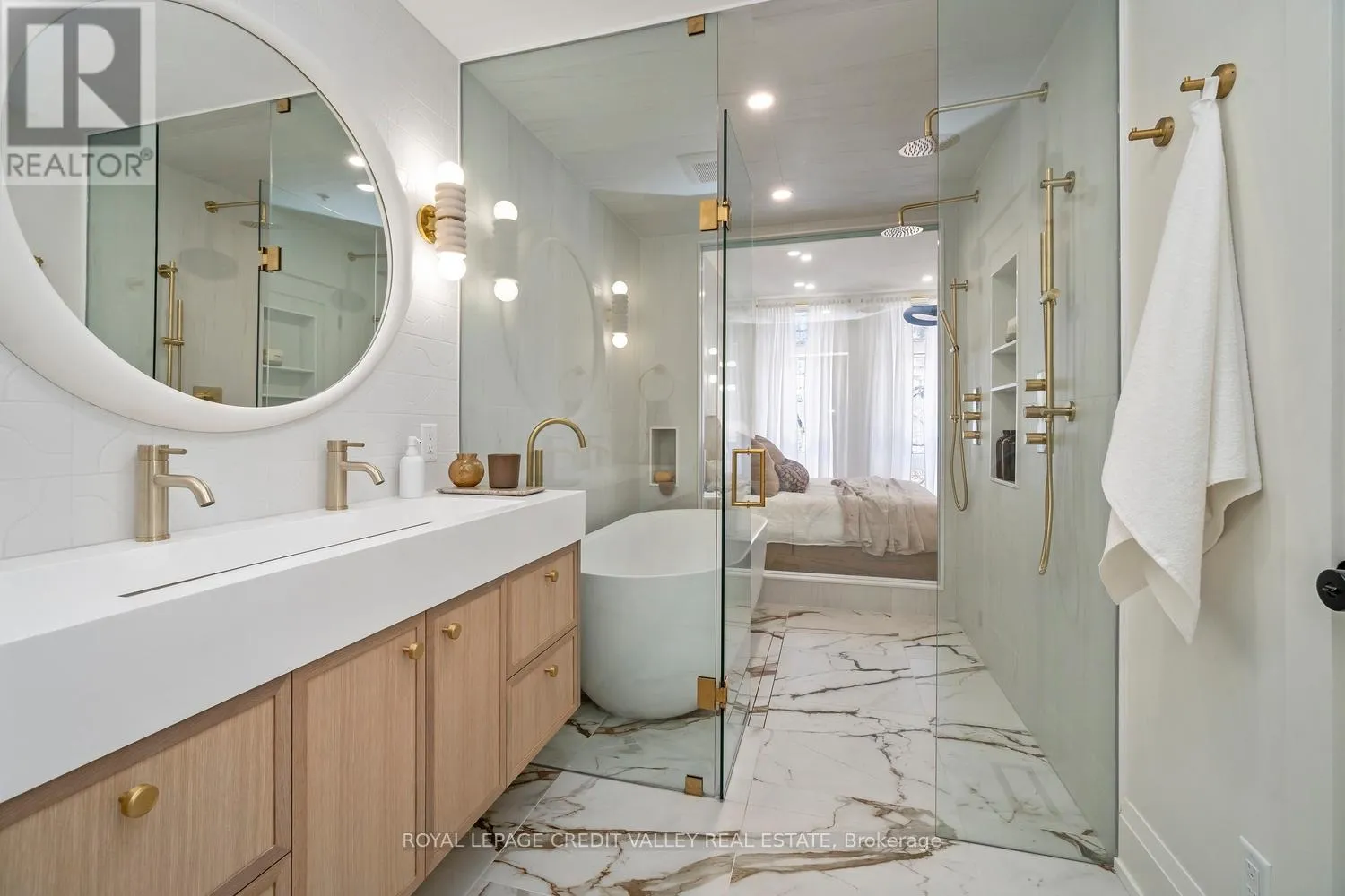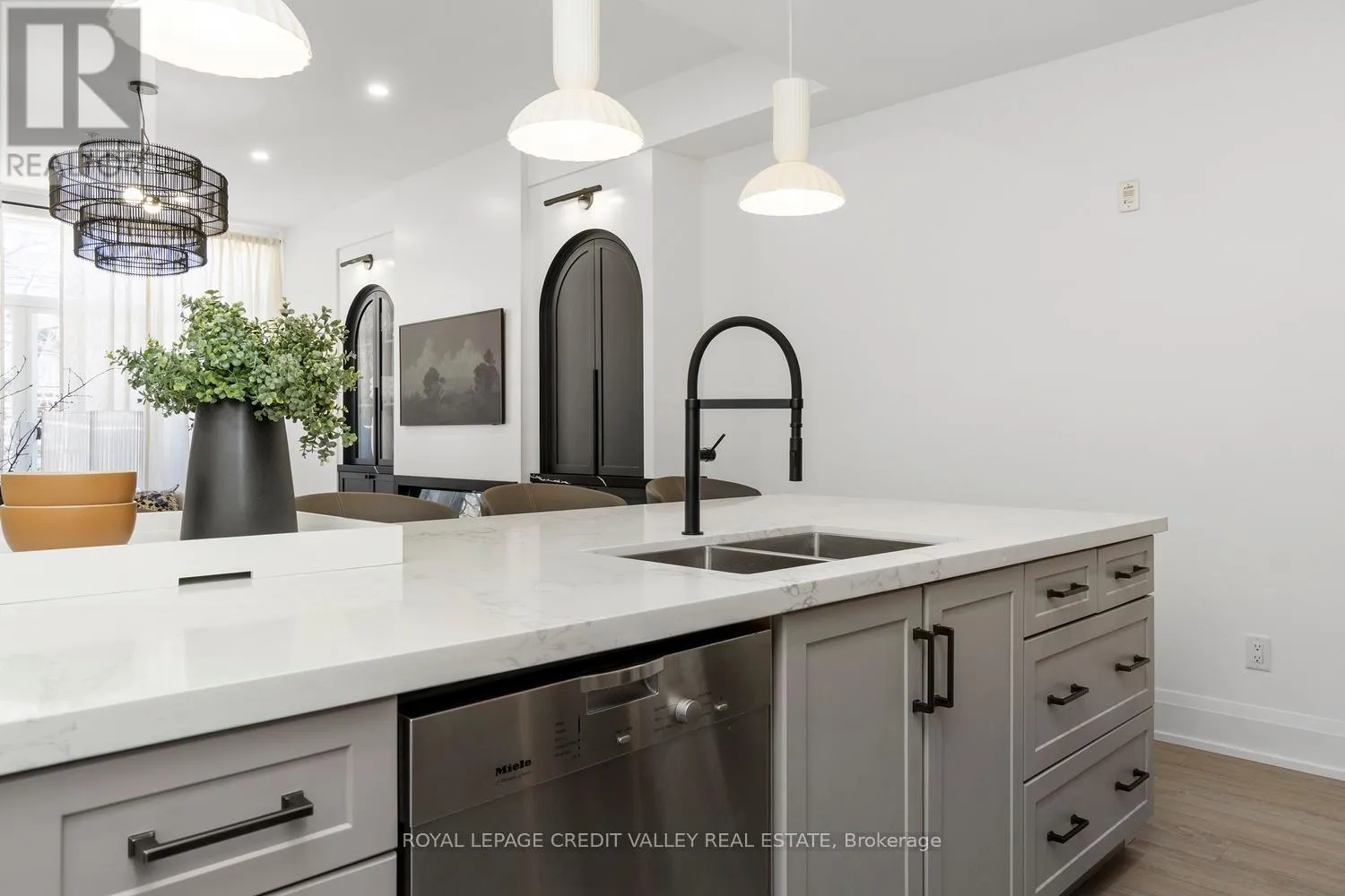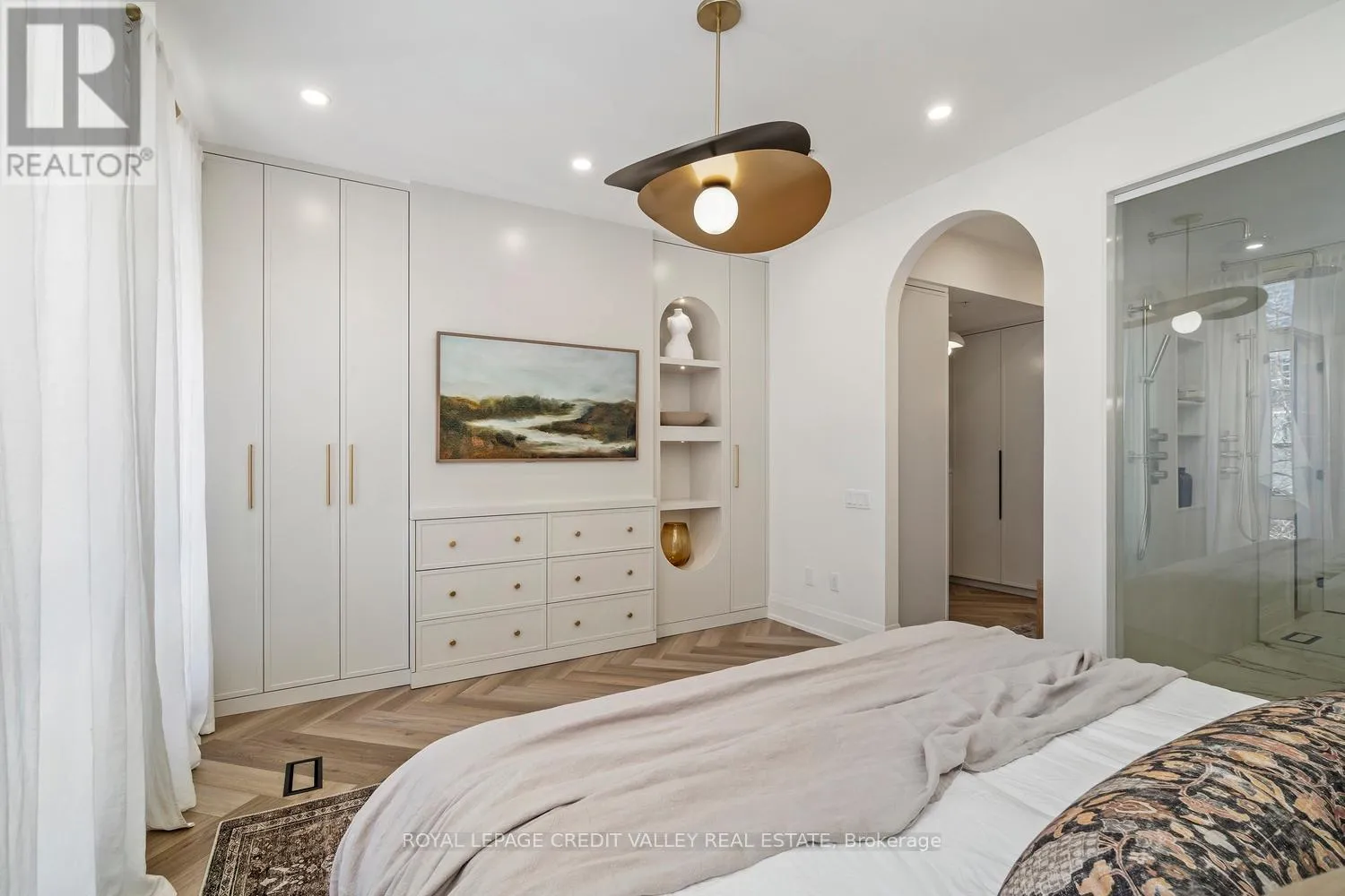 Cross Streets: King St W / Tecumseth St. ** Directions: West on Wellington from Bathurst. Nestled in the heart of the city, this stunning fully furnished townhouse offers a seamless blend of luxury, sophistication, and functionality. Completely custom redesigned, every detail of this residence has been meticulously curated to create a living space that exudes elegance and charm. Upon entering, guests are greeted by the grandeur of arched doorways and custom mill work setting the tone for the exquisite craftsmanship found throughout the home allowing for both form and function. For those who appreciate the convenience of working from home, a dedicated office space provides a quiet retreat with big windows, while a Murphy bed in the den offers flexibility for overnight guests. What's more, luxury meets practicality with interior garage access, built-ins, ample storage and ensuite laundry facilities, ensuring convenience at every turn. The kitchen boasts a stylish granite island, perfect for entertaining guests or enjoying casual meals with family overlooking the expansive great room featuring 10 feet soaring ceilings offering openness as well as a walk-out to the balcony perfect for enjoying that morning tea or coffee. The primary bedroom is a sanctuary of comfort with herringbone flooring throughout, featuring his and her sinks, separate showers and switchable privacy glass. Two additional luxurious bedrooms above provide ample space for family or guests with a beautifully tiled washroom offering a spa-like ambiance. However, the piece de resistance of this remarkable townhouse is the massive rooftop patio, offering unparalleled views of the iconic CN Tower and the city skyline. Whether hosting soirees under the stars or simply enjoying a morning coffee with breathtaking vistas, the rooftop patio is sure to be the envy of all who visit. Experience the epitome of urban living in this meticulously designed townhouse, where every detail has been thoughtfully considered to elevate your lifestyle to new heights. (id:27476)