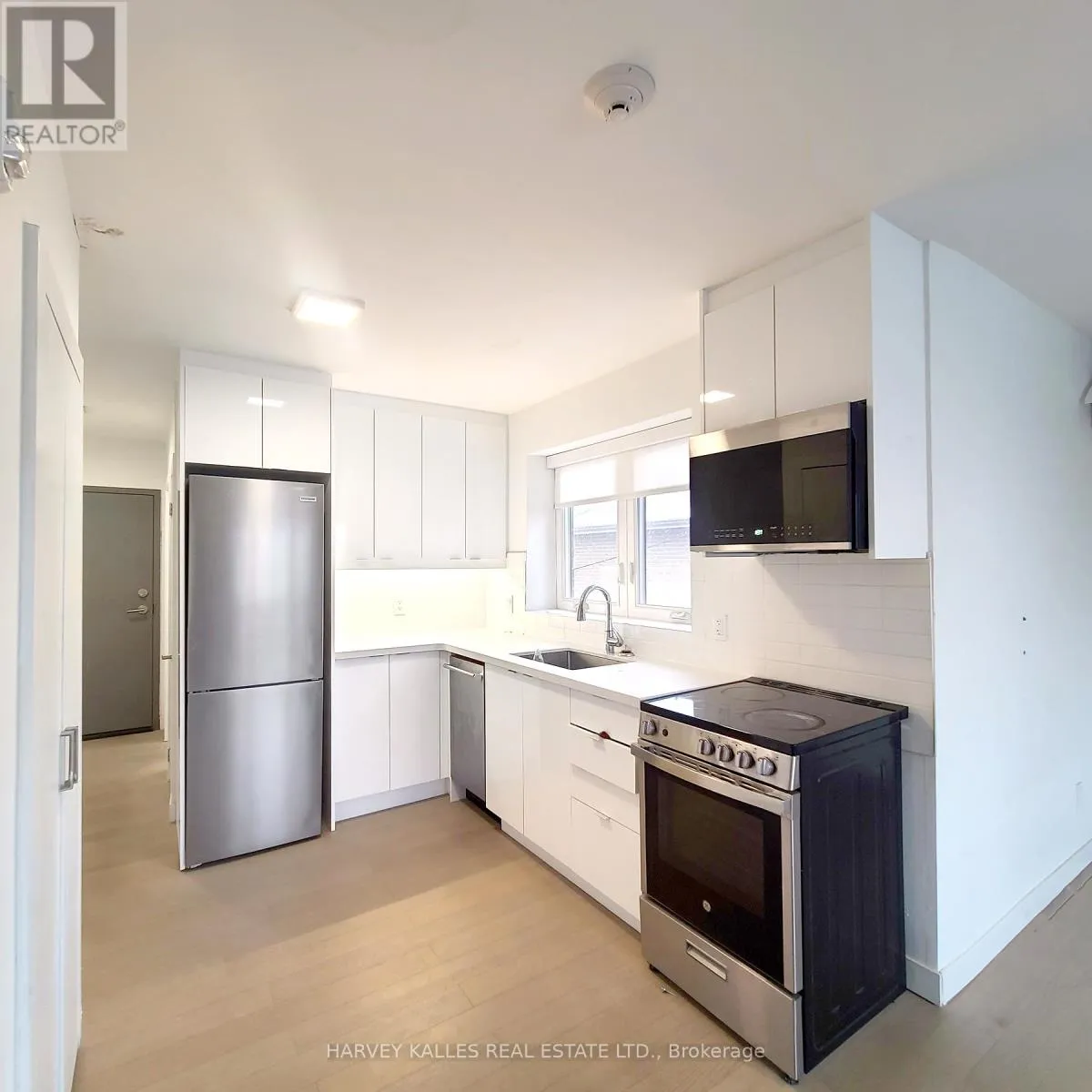 Brown's Line North of Horner Sophisticated Fully Renovated Bachelor in Boutique South Etobicoke Residence Experience refined urban living in this beautifully appointed bachelor suite within an exclusive six-unit boutique residence in highly desirable South Etobicoke. Fully gutted and meticulously renovated in 2021/2022 to modern condo standards, this residence offers turnkey comfort with elevated finishes throughout. The thoughtfully designed interior showcases elegant wide-plank laminate flooring, a sleek contemporary kitchen featuring soft-close cabinetry and premium appliances, and a spa-inspired modern bathroom with refined fixtures and finishes. In-suite laundry provides everyday convenience, while designer lighting and tailored window coverings add warmth and sophistication to the space. With only a limited number of residences, the building offers a quiet, private atmosphere ideal for professionals seeking boutique living without the congestion of high-rise towers. Perfectly positioned just minutes from Highway 427, the Gardiner Expressway, GO Transit, TTC, Sherway Gardens, and the Lake Ontario waterfront, the location offers seamless connectivity paired with vibrant lifestyle amenities. Vacant and available for immediate occupancy. Optional private parking available for $150/month.. Stove, fridge, dishwasher, washer, dryer, microwave, central AC (id:27476)