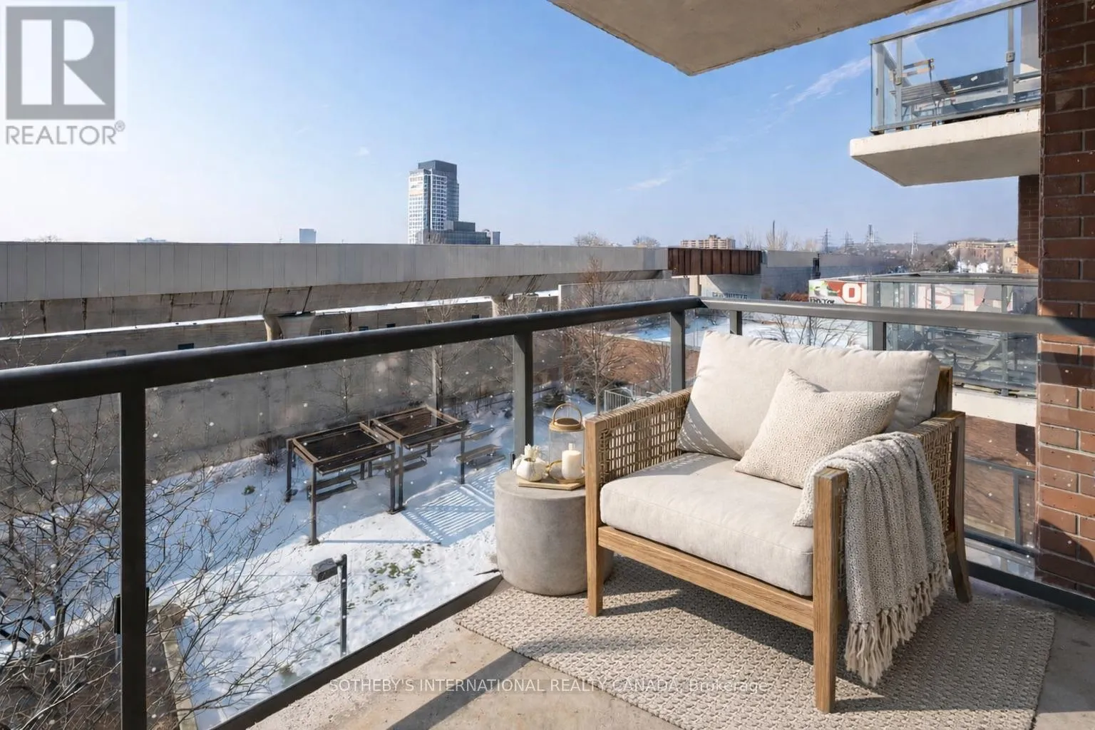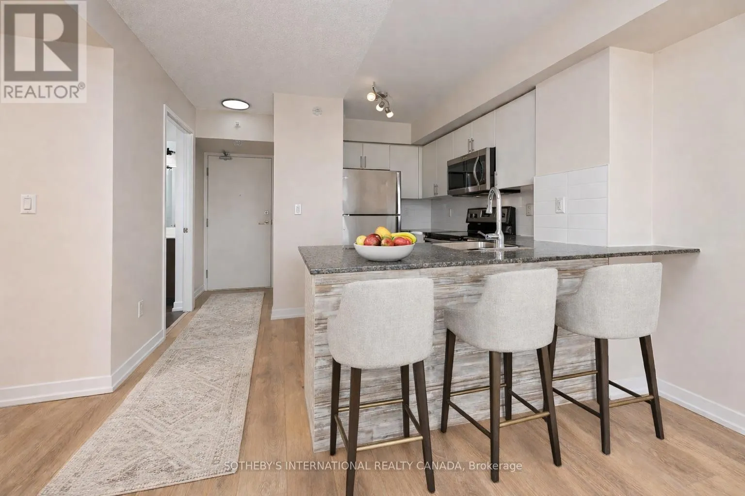Cross Streets: Lansdowne & Dupont. ** Directions: Northwest Corner of Lansdowne & Dupont. Welcome to Fuse Condos at 1420 Dupont Street! This spacious and well-designed 1+1 bedroom suite offers the perfect blend of comfort and convenience. Featuring a gourmet kitchen complete with a breakfast bar, fresh paint throughout, and tasteful upgrades, this bright and inviting unit is move-in ready. Enjoy a functional layout with a versatile den-ideal for a home office or guest space-a full 4-piece bathroom, and a sun-filled living room with west exposure that walks out to a private balcony, perfect for relaxing or entertaining. Residents enjoy concierge service and excellent building amenities. Unbeatable location with Shoppers Drug Mart, Food Basics, Balzac's Coffee Roasters, public transit, schools, and parks just steps from your door. A fantastic opportunity for first-time buyers, downsizers, or investors looking for exceptional value in a vibrant community. ***Please note some photos have been virtually staged to show potential layout and design. Furnishings and decor are digitally added and are not included with the sale.*** (id:27476)