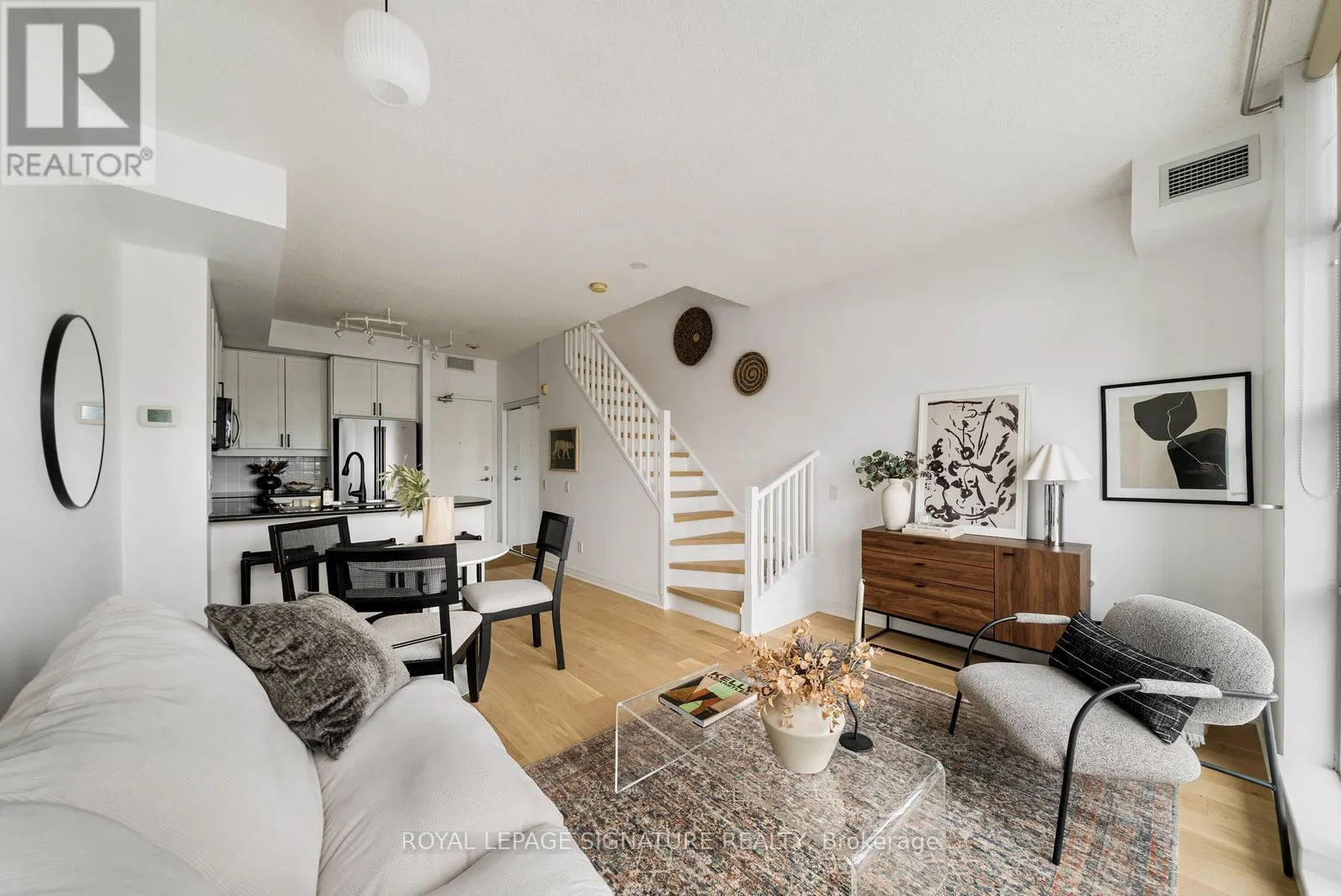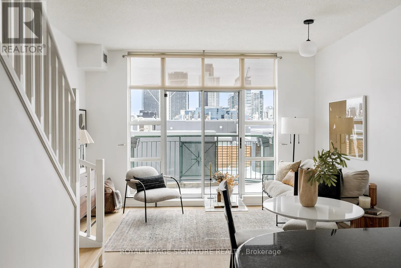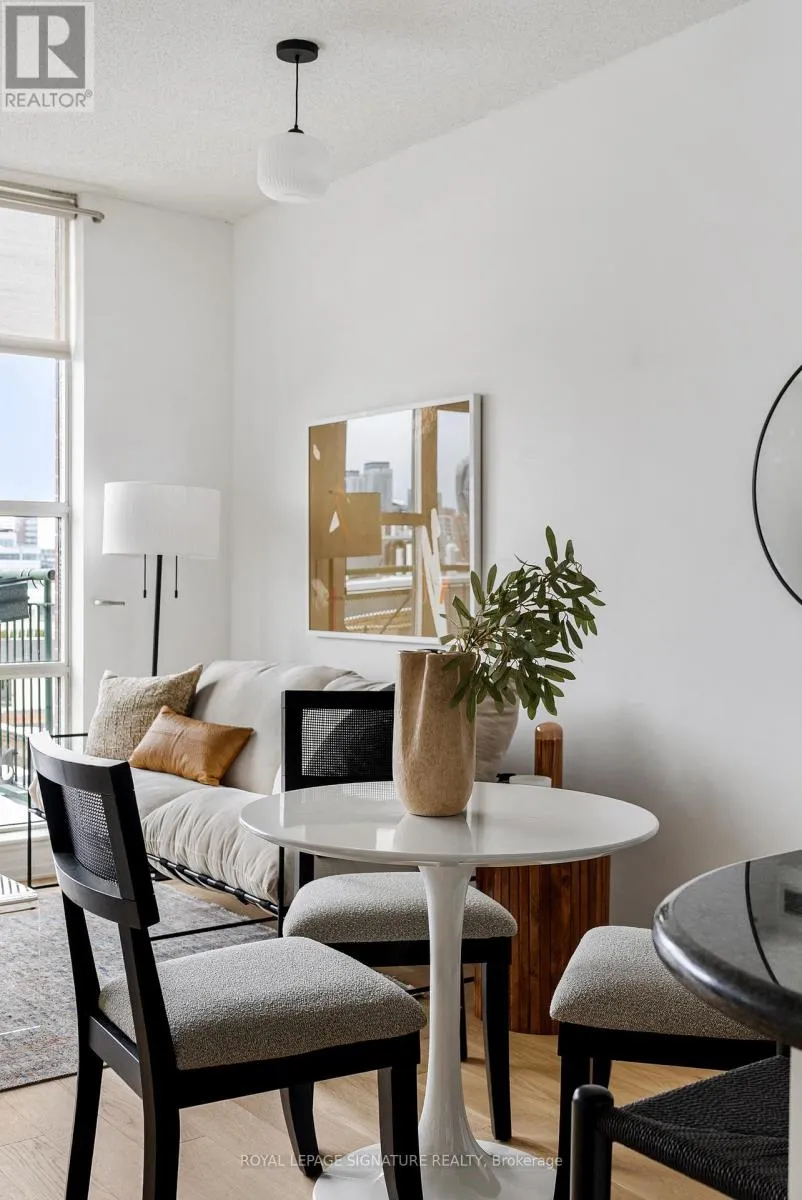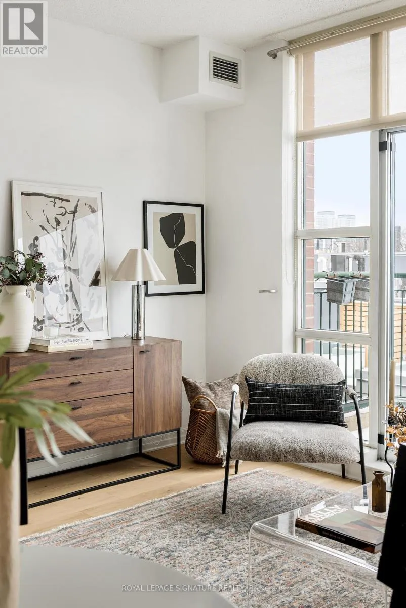 Cross Streets: Queen & Strachan. ** Directions: East of Dufferin, West of Bathurst. Live large in this stunning 2-storey penthouse loft across from Trinity Bellwoods Park. Freshly painted and move-in ready, every detail has been taken care of so you can simply settle in and enjoy. A dramatic wall of south-facing floor-to-ceiling windows fills the space with natural light, creating an open & airy feel. The updated open-concept kitchen is designed for both daily living and effortless entertaining, complete with granite countertops, stainless steel appliances, and a breakfast bar. There's also ample space for a full dining area-perfect for hosting or quiet evenings at home. Brand new engineered hardwood floors run throughout, adding warmth and a modern feel.The primary bedroom is a standout, complete with double closets, a large window, and gorgeous French doors. And yes, parking and a locker are included! Located in the heart of Toronto's buzzing Queen West neighbourhood, you're just steps to the city's best coffee shops, top-rated restaurants, and galleries, with the streetcar right outside your door for an easy commute. When you're not out enjoying the neighbourhood, take advantage of the building's private English garden, perfect for summer BBQs, along with a fully equipped gym and party room.This is Queen West penthouse living at its best. (id:27476)