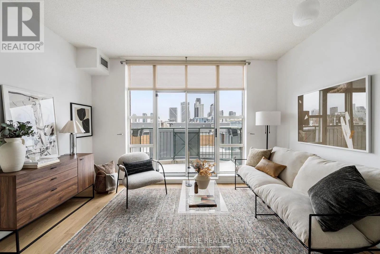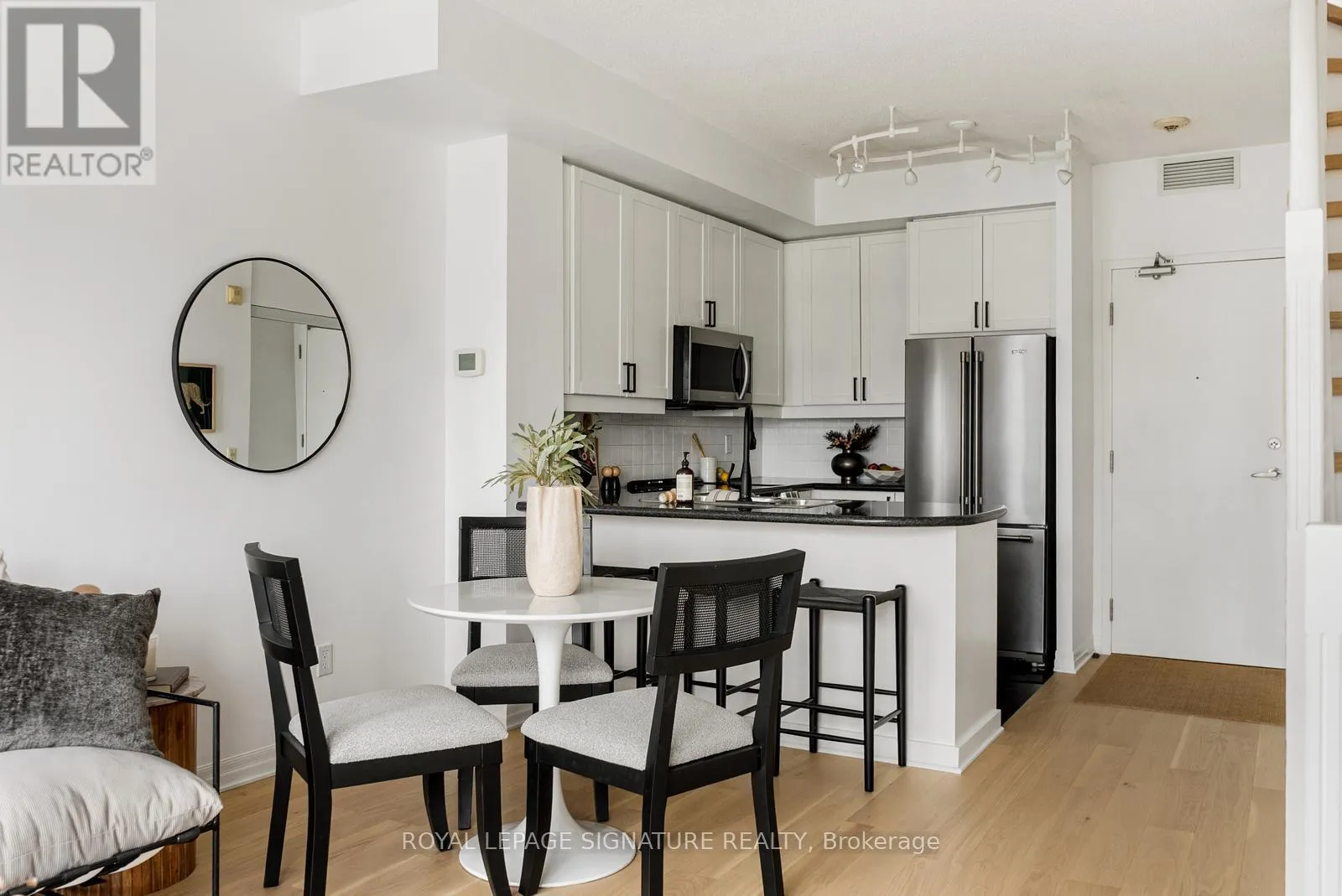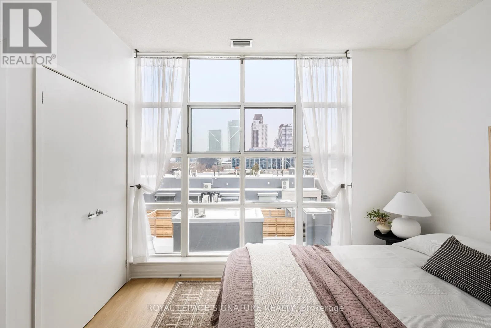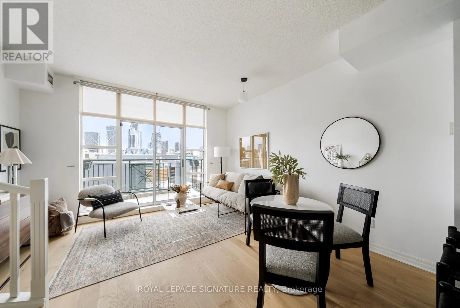 Cross Streets: Queen & Strachan. ** Directions: East of Dufferin, West of Bathurst. Live large in this stunning 2-storey penthouse loft across from Trinity Bellwoods Park. Freshly painted and move-in ready, every detail has been taken care of so you can simply settle in and enjoy. A dramatic wall of south-facing floor-to-ceiling windows fills the space with natural light, creating an open & airy feel. The updated open-concept kitchen is designed for both daily living and effortless entertaining, complete with granite countertops, stainless steel appliances, and a breakfast bar. There's also ample space for a full dining area-perfect for hosting or quiet evenings at home. Brand new engineered hardwood floors run throughout, adding warmth and a modern feel.The primary bedroom is a standout, complete with double closets, a large window, and gorgeous French doors. And yes, parking and a locker are included! Located in the heart of Toronto's buzzing Queen West neighbourhood, you're just steps to the city's best coffee shops, top-rated restaurants, and galleries, with the streetcar right outside your door for an easy commute. When you're not out enjoying the neighbourhood, take advantage of the building's private English garden, perfect for summer BBQs, along with a fully equipped gym and party room.This is Queen West penthouse living at its best. (id:27476)