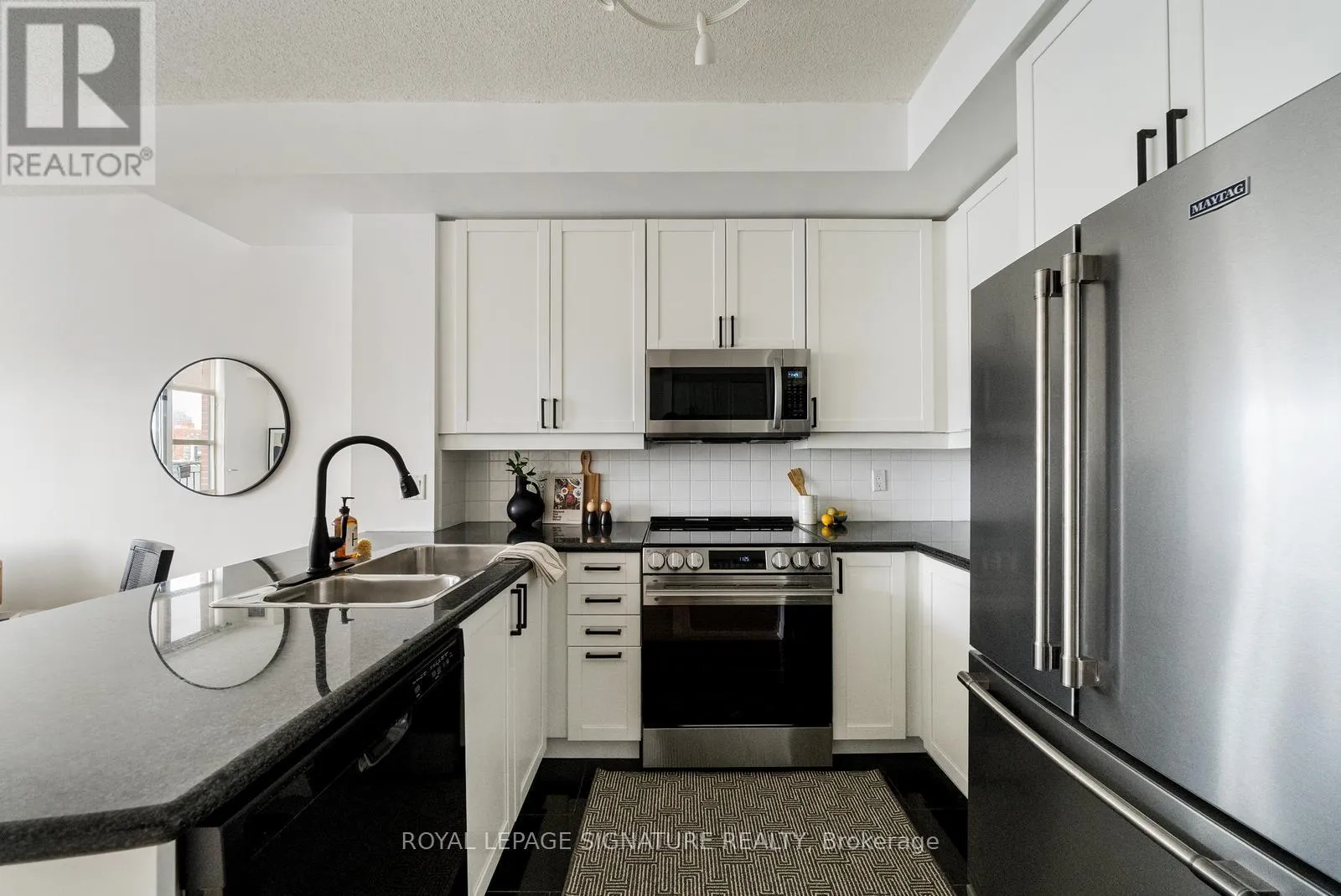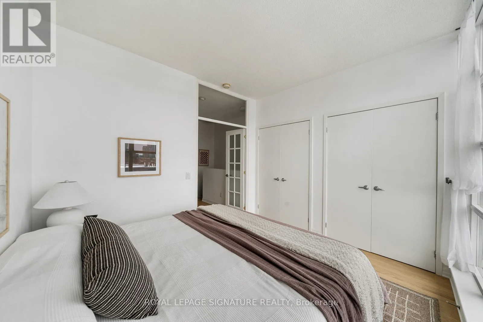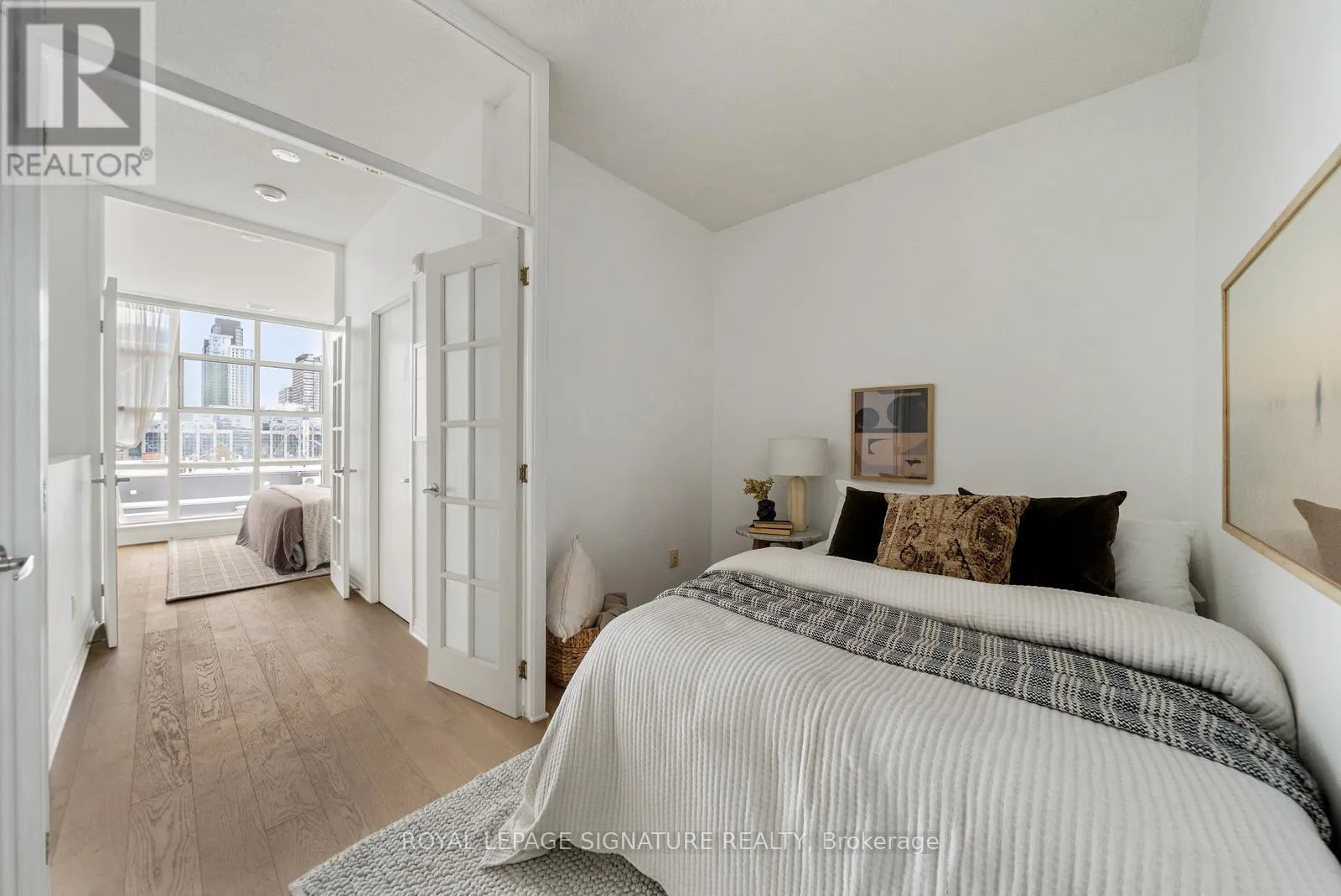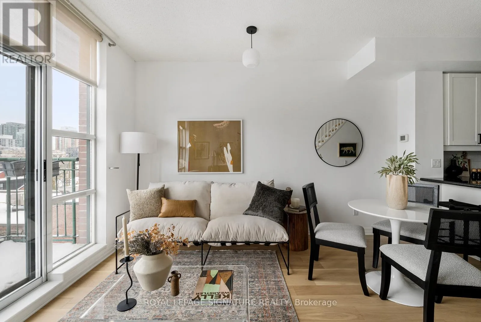 Cross Streets: Queen & Strachan. ** Directions: East of Dufferin, West of Bathurst. Live large in this stunning 2-storey penthouse loft across from Trinity Bellwoods Park. Freshly painted and move-in ready, every detail has been taken care of so you can simply settle in and enjoy. A dramatic wall of south-facing floor-to-ceiling windows fills the space with natural light, creating an open & airy feel. The updated open-concept kitchen is designed for both daily living and effortless entertaining, complete with granite countertops, stainless steel appliances, and a breakfast bar. There's also ample space for a full dining area-perfect for hosting or quiet evenings at home. Brand new engineered hardwood floors run throughout, adding warmth and a modern feel.The primary bedroom is a standout, complete with double closets, a large window, and gorgeous French doors. And yes, parking and a locker are included! Located in the heart of Toronto's buzzing Queen West neighbourhood, you're just steps to the city's best coffee shops, top-rated restaurants, and galleries, with the streetcar right outside your door for an easy commute. When you're not out enjoying the neighbourhood, take advantage of the building's private English garden, perfect for summer BBQs, along with a fully equipped gym and party room.This is Queen West penthouse living at its best. (id:27476)