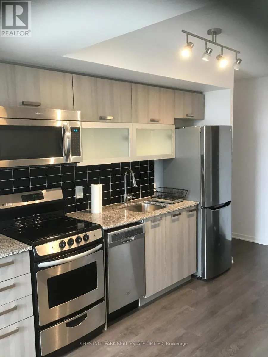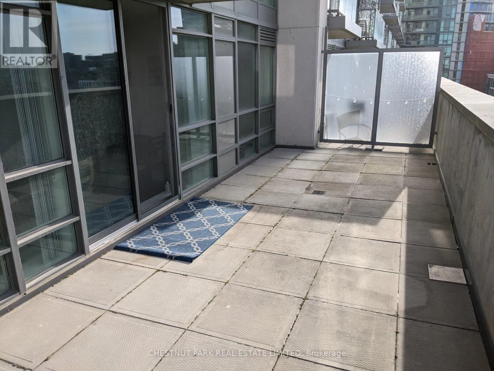 Cross Streets: Queen and Dovercourt. ** Directions: Queen St W and Dovercourt Rd. Bright and functional 2-Bedroom + Den, 2-Bathroom suite in the heart of Queen West. Offering 675 sq.ft. of well-designed living space, this layout features split bedrooms for added privacy and comfort. The separate den is ideal for a dining area or home office. Open-concept kitchen overlooks the living area with a walkout to an oversized terrace with beautiful city views, perfect for relaxing or entertaining. The unit also -includes one parking space. Residents enjoy excellent amenities, including a fitness centre, party room, and 24-hour concierge. Unbeatable location just steps to cafés, restaurants, boutique shops, groceries, Trinity Bellwoods Park, Liberty Village, and the waterfront. With the Queen streetcar at your doorstep, commuting and everyday errands are effortless. (id:27476)