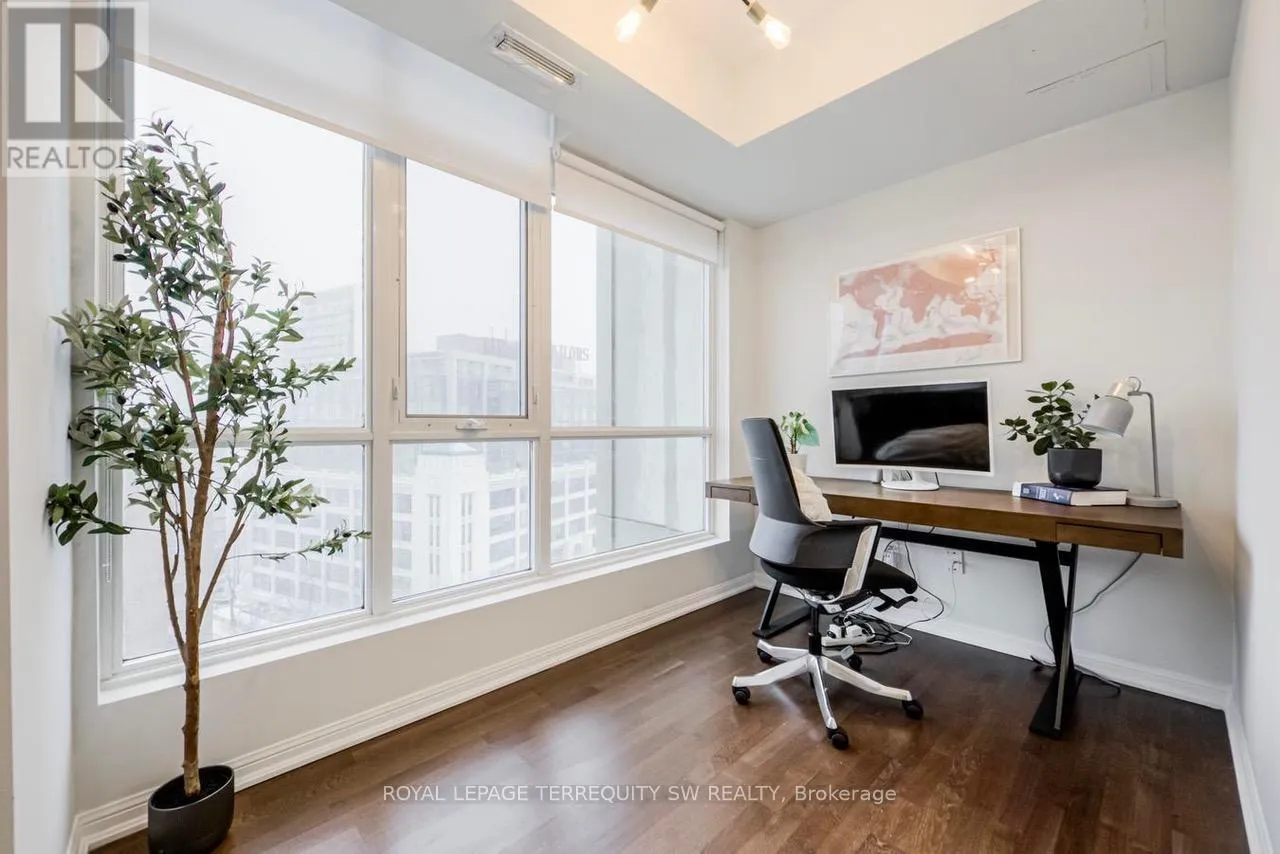 Bathurst And Lake Shore This beautifully laid-out two-bedroom plus den residence offering over 1,000 sq. ft. of refined living space in a distinctive Art Deco-inspired building just moments from Lake Ontario. Thoughtfully designed with an exceptional floor plan, this suite offers generous principal rooms, a versatile den ideal for a home office or nursery, and seamless flow between living, dining, and kitchen spaces - perfect for both everyday comfort and entertaining. Large windows invite abundant natural light while showcasing the character and charm that make this building truly stand out. With an impressive array of amenities designed to enhance lifestyle and convenience the unbeatable location places waterfront trails, transit, dining, and daily essentials all within easy reach An ideal opportunity for young professionals seeking space to grow or families looking for comfort, style, and community in one of the city's most desirable lake-adjacent neighbourhoods. (id:27476)