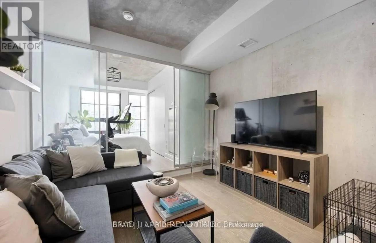 Richmond and Bathurst Welcome To The Harlowe! This Functional One Bedroom Unit Features 9Ft Exposed Concrete Ceilings And Feature Walls. Floor To Ceiling Windows, Hardwood Flooring Throughout. Modern European Style Kitchen With Stainless Steel Appliances, Stone Counters And Rare Gas Cook Top. Bright Southern Exposure. Walking Distance From Queen And King St. Steps To The Streetcar, Restaurants, Shopping And Entertainment. Locker Included. (id:27476)