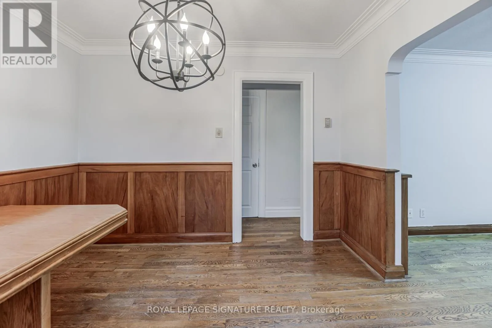 Lawrence Ave E & Morningside Ave Charming Bungalow on a Prime Lot with Endless Potential! Step into this classic bungalow, perfectly situated on a sprawling60 x 134 ft lot with 8 parking spots and a double car garage. The sun-filled living room welcomes you with a large bay window, classic crownmoulding, and gleaming hardwood floors. It flows seamlessly into the elegant dining room, featuring wainscoting, hardwood flooring, and awalkout through double French doors to a large deck overlooking the private, expansive yard ideal for outdoor entertaining. The upgradedkitchen boasts new stainless steel appliances and ample storage space. The main floor offers two spacious bedrooms with large windows andclosets, and a beautifully renovated 3-piece bath with a sleek glass shower. Second Laundry has been added for convenience and allowing afully separate basement. The finished basement with a separate entrance provides versatile living space, perfect for additional bedrooms, arecreation area, or in-law suite/rental income potential. It includes a second kitchen and a full 3-piece bathroom and own laundry. With itsmassive yard offering incredible potential, this property is ideal for families, investors, or those looking to expand. (id:27476)