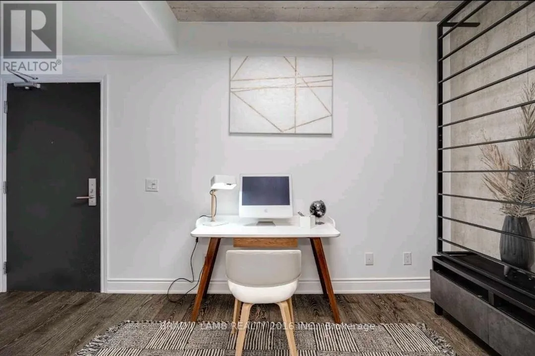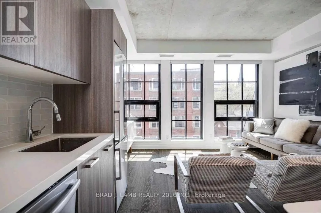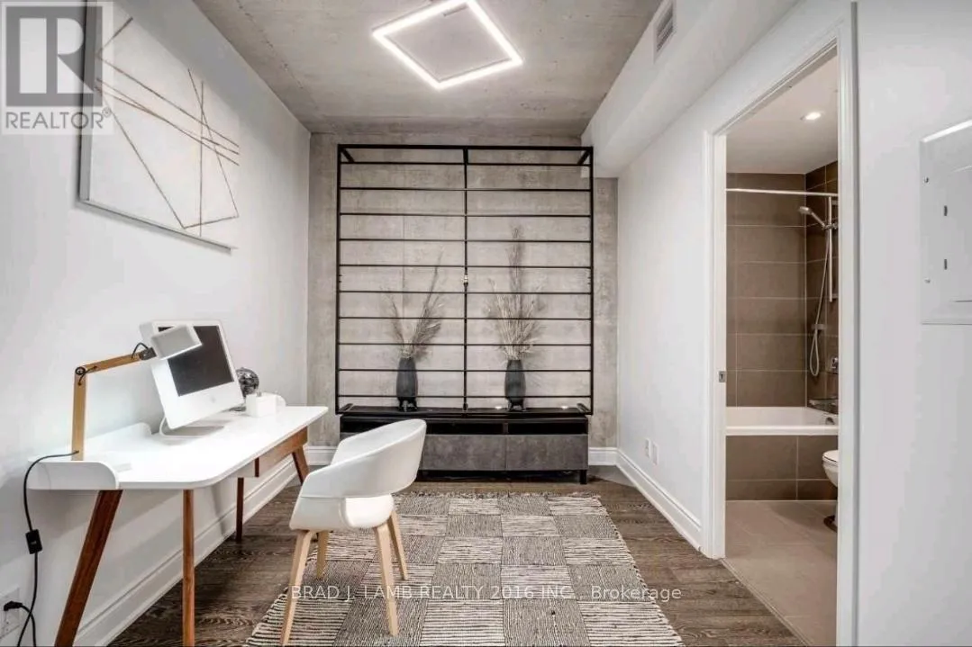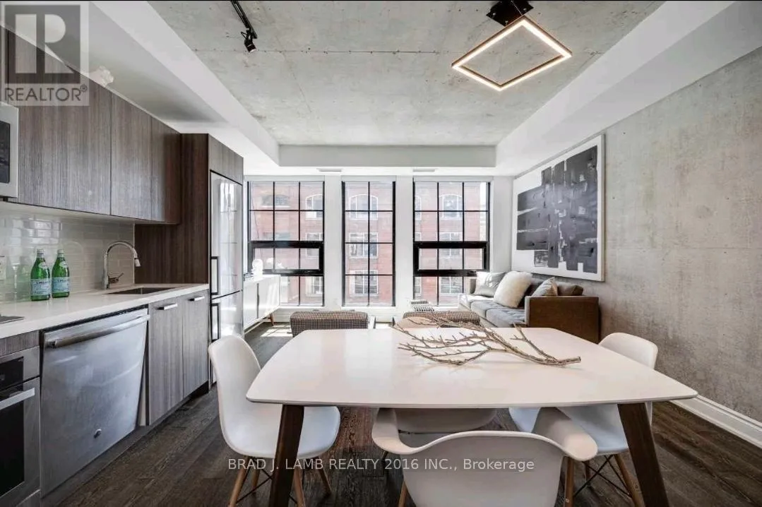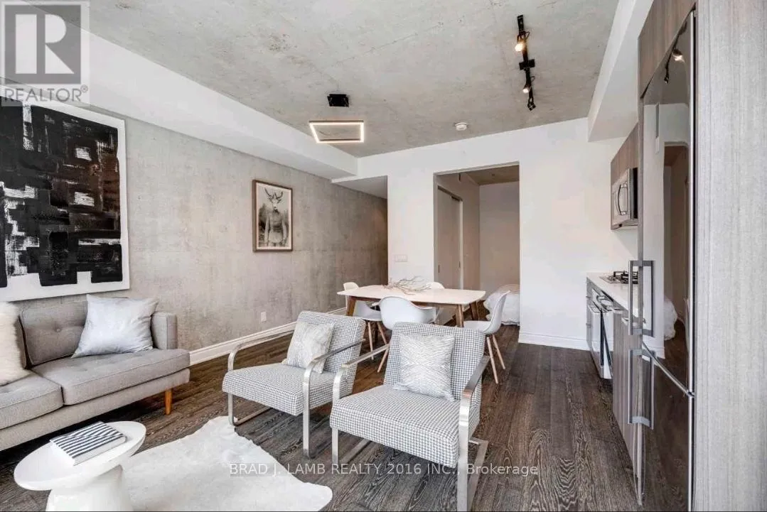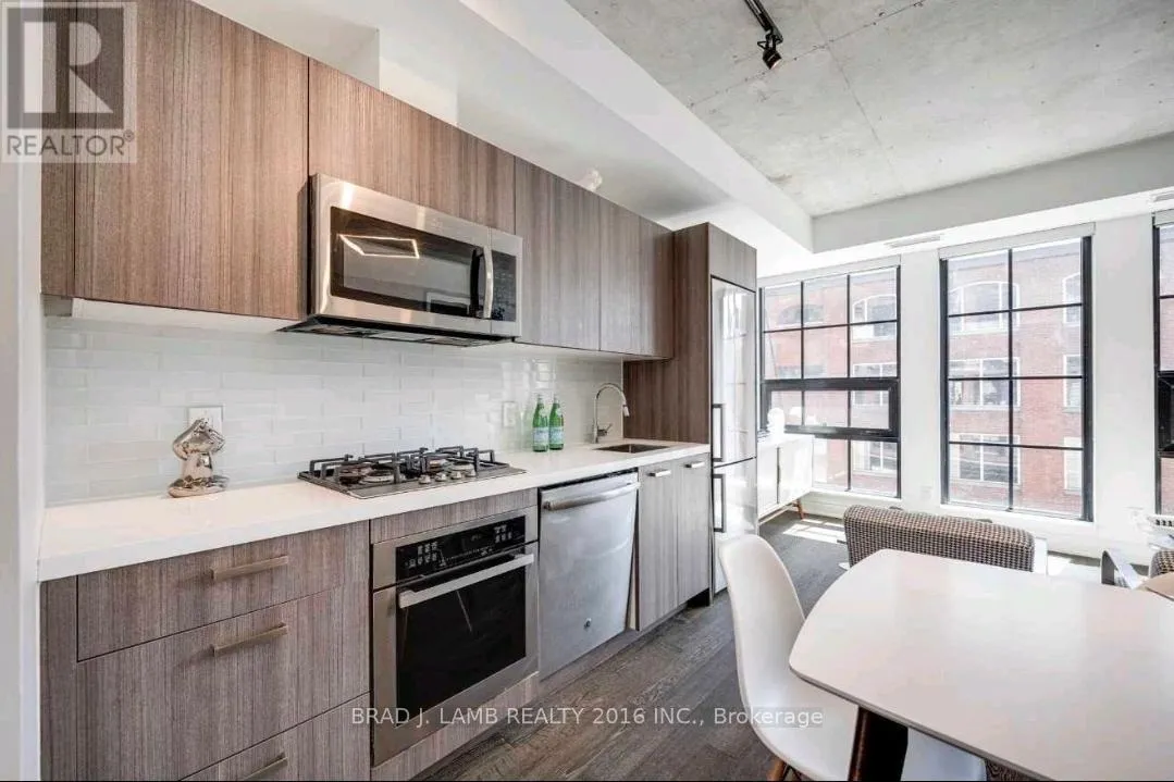 Richmond/Bathurst Welcome To The Harlowe! This Functional One Plus Den Features 9Ft Exposed Concrete Ceilings And Feature Walls. Floor To Ceiling Industrial Style Windows, Hardwood Flooring Throughout. Modern European Style Kitchen With Built In Stainless Steel Appliances, Stone Counters, And Rare Gas Cooktop. Bright Southern Exposure Lets In Tons Of Natural Light. Walking Distance From Queen And King St. Steps To The Streetcar, Restaurants, Shopping, And Entertainment. Stainless Steel Fridge, Ss Range, Ss Dishwasher & Ss Microwave. Stacked Washer/Dryer. All Electrical Light Fixtures. Nest System. B/I In Den. Heat Pump Is Leased. Amenities Include Party Room, Guest Suite, Gym And Concierge. Locker Included. (id:27476)