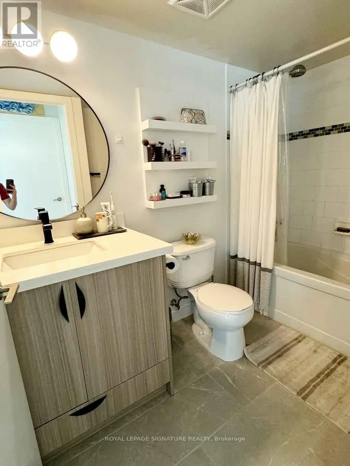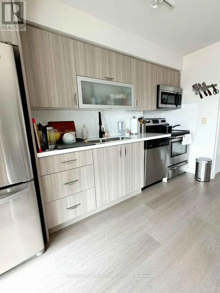 Western Battery Rd & Lynn William St A stylish and sun-filled South West facing residence in the heart of Liberty Village offering the perfect balance of comfort, functionality, and vibrant urban living.This beautifully 1-bedroom plus den suite features 603 sq.ft of thoughtfully designed interior space, complemented by an impressive terrace of approximately 300 sq.ft. with stunning west-facing views capturing sunsets, neighbourhood energy, and glimpses toward the lake. Floor-to-ceiling windows flood the home with natural light, while new vinyl flooring, sleek pot lights, and an updated bathroom vanity create a clean, modern aesthetic throughout.The open-concept kitchen and living area form the heart of the home - ideal for both everyday living and entertaining. The kitchen is equipped with stainless steel appliances and an oversized movable island with a breakfast bar for added flexibility. The seamless flow into the dining and living space creates a welcoming great room perfect for hosting or unwinding.The spacious bedroom offers generous closet space and direct walk-out access to the terrace, creating a peaceful indoor-outdoor retreat. The separate den provides a versatile space ideal for a home office, nursery, reading nook, or creative studio.Partially furnished and move-in ready, the suite includes: an entrance mirror, a dining table, a floor lamp in the living room, an IKEA bookshelf in the den, and a bedframe in the bedroom.Ensuite laundry with shelving is included for added convenience.24-hour security and concierge, indoor pool, hot tub, fully equipped gym, yoga studio, billiards lounge, games room, cyber lounge, private theatre, party room, BBQ area, guest suites, and visitor parking - all within a professionally managed building.Located steps from grocery stores, fitness studios, TTC, GO Station, waterfront trails, Exhibition Place, and more. (id:27476)