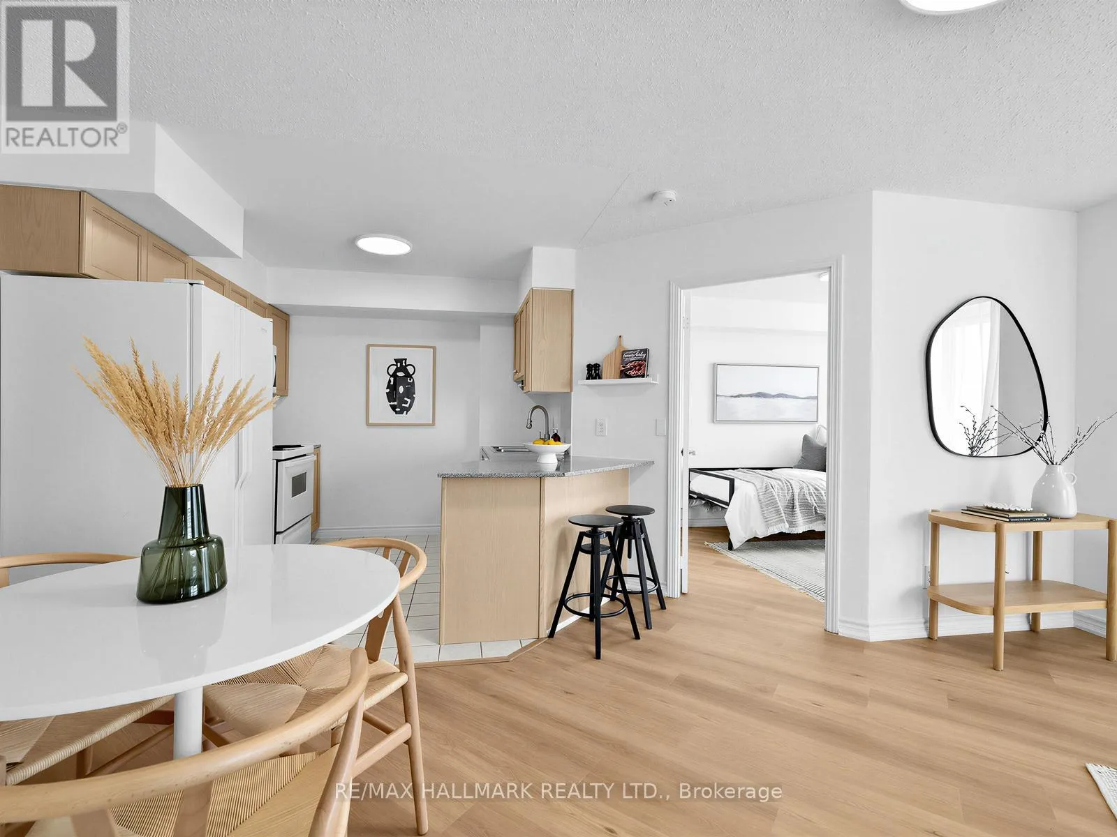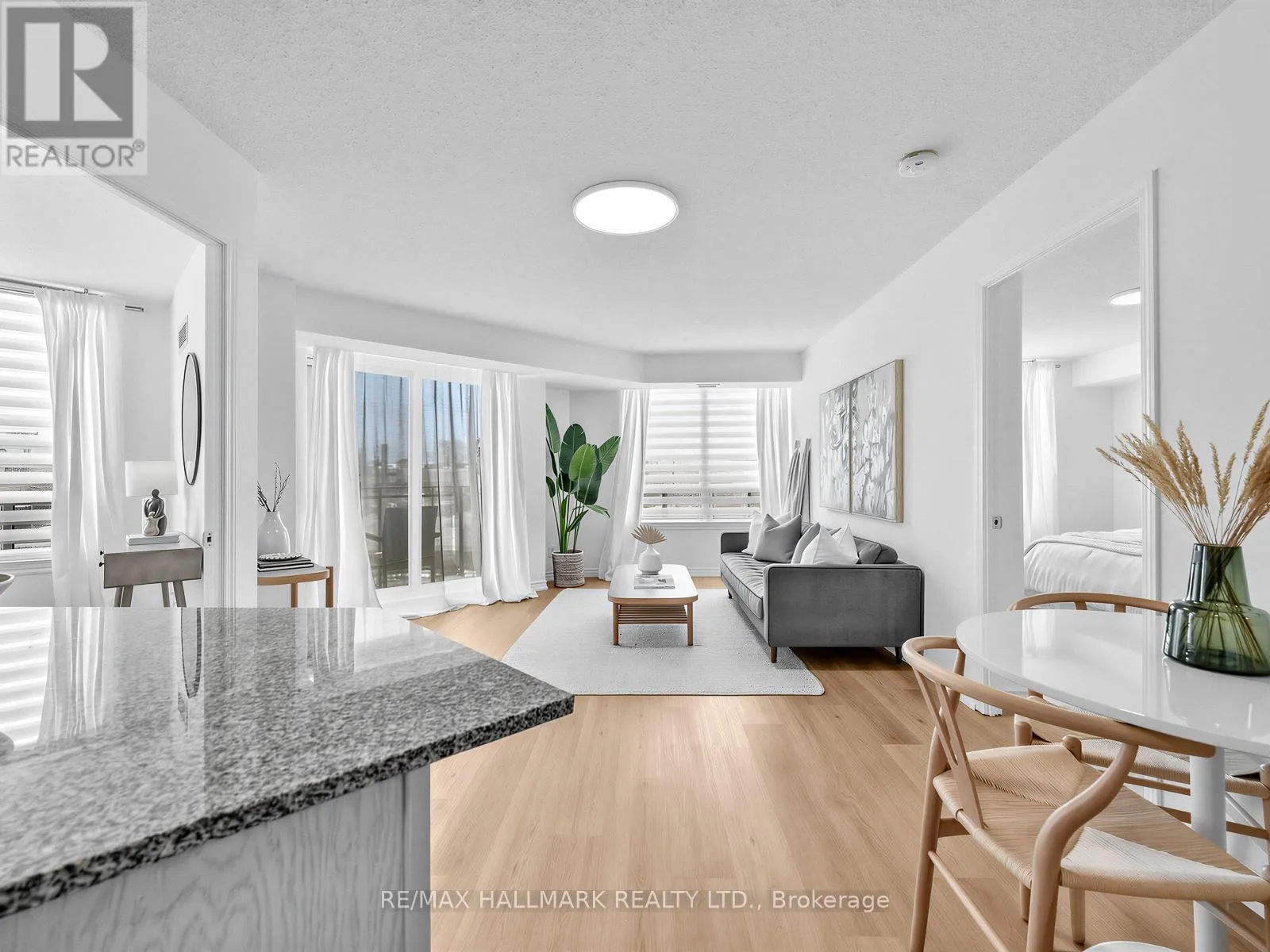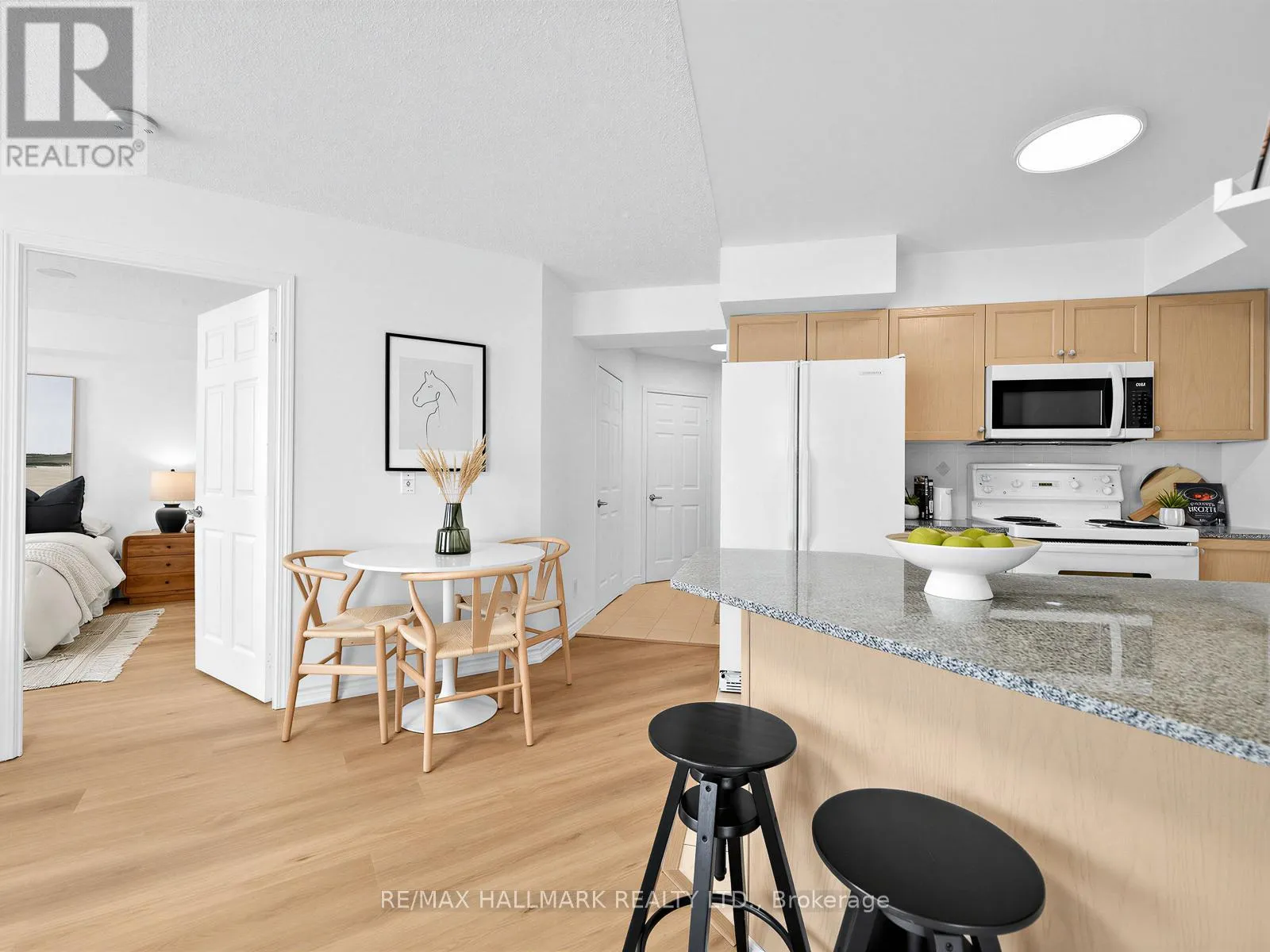 Eglinton / Sloane This stunning and bright 2-bedroom, 2-bathroom corner suite offers spacious, comfortable living in the highly sought-after Soleil Condominium. The oversized primary bedroom features a large walk-in closet and a 4-piece ensuite. Start your mornings with tea on the private balcony showcasing beautiful southeast views, or enjoy coffee at the kitchen breakfast bar, complete with granite countertops throughout. Large windows fill the space with natural light. This well-maintained building offers a wide range of amenities and pride of ownership throughout. Ideally located in Victoria Village, you're just minutes to highways, transit, parks, schools, and shopping. Move in and enjoy - nothing left to do! (id:27476)