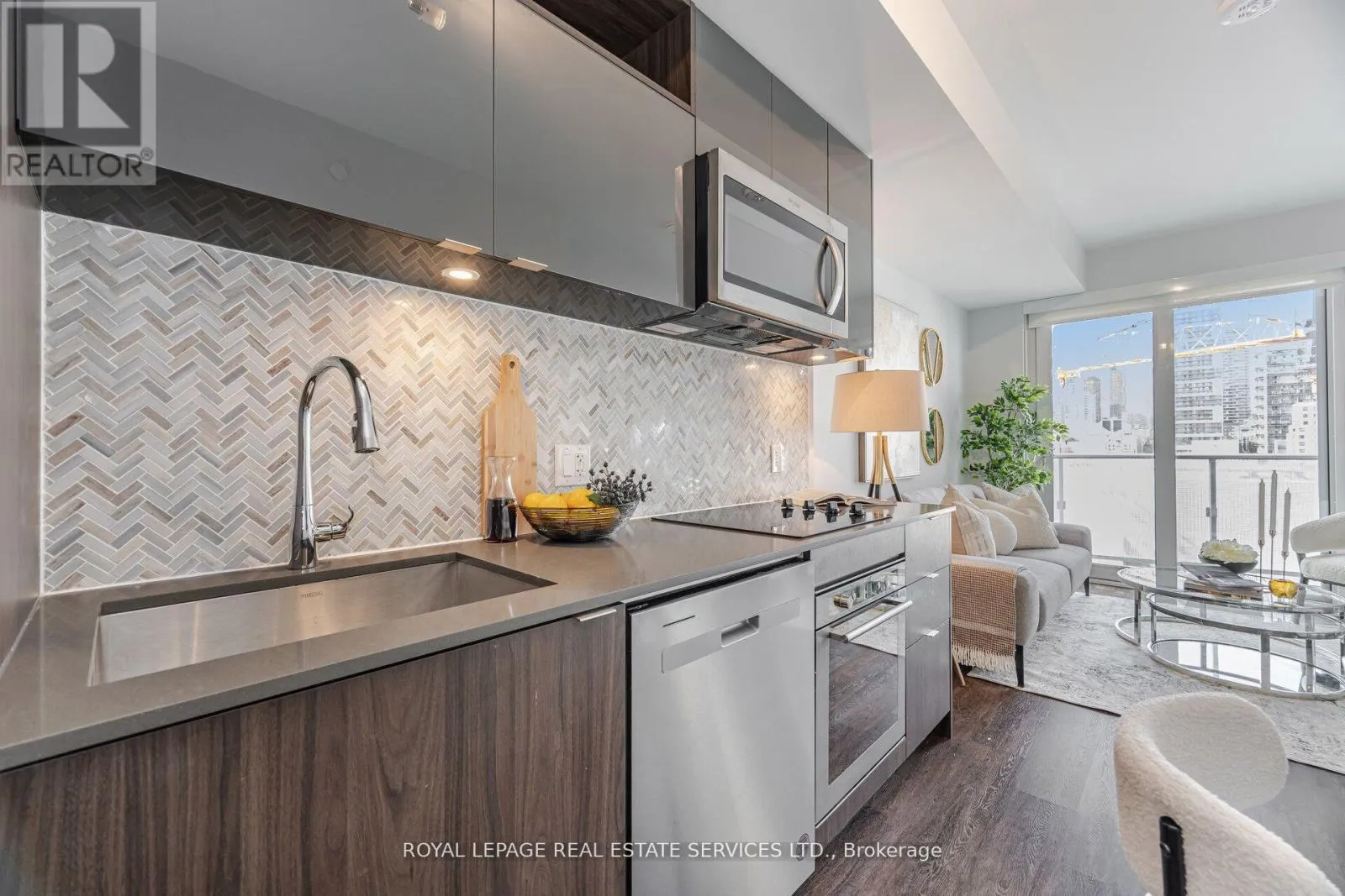 DUNDAS/DALHOUSIE/YONGE Live at the Centre of It All! This builder-upgraded 1+den condo blends style and function with a modern kitchen featuring quartz countertops, full-height cabinetry, and stainless-steel appliances, plus a spa-inspired bathroom with sleek tilework and designer fixtures. The open-concept layout is filled with natural light from floor-to-ceiling windows, while the versatile denworks perfectly as a home office or guest space. Enjoy a private balcony with city views, access to premium building amenities, and an unbeatable location steps from Yonge-Dundas Square, the Eaton Centre, and the PATH. (id:27476)