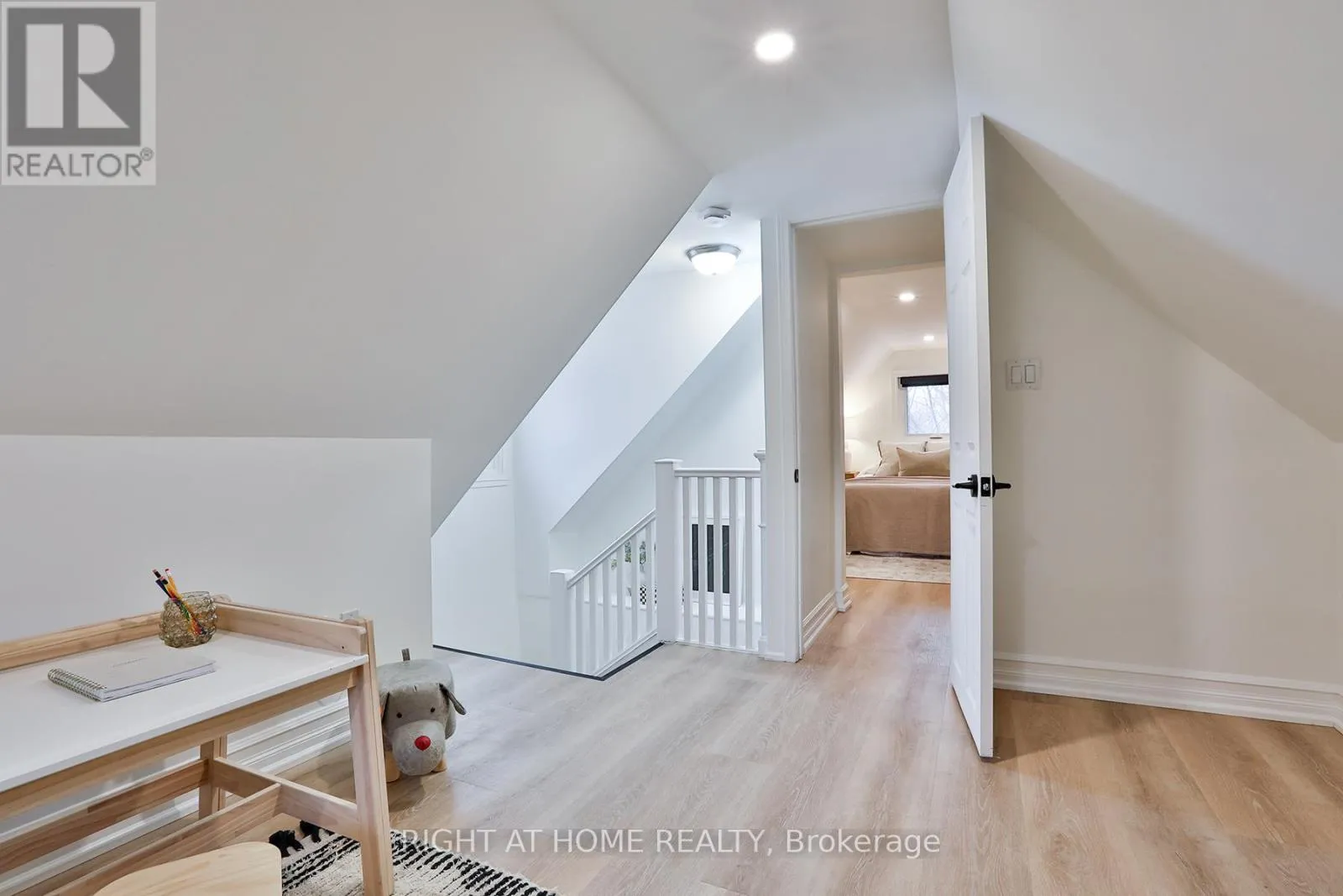 Cross Streets: Danforth Ave & Coxwell Ave. ** Directions: Danforth Ave & Parkmount Rd. Welcome to 135 Parkmount Road - a beautifully renovated 2.5-storey detached family home fronting onto Parkmount Road and backing onto Craven Road. Featuring a rare two-car detached garage and garden suite potential, this property offers exceptional opportunity in a prime east end location. Thoughtfully updated while preserving its timeless character, this home blends classic charm with modern upgrades throughout. The bright, open-concept main floor boasts over 9' ceilings, hardwood flooring, an inviting living area, and an oversized dining room with a built-in side bar and wine fridge. The chef-inspired kitchen features an island with seating, lots of cupboard space, quality finishes, and a breakfast area overlooking the backyard. The second level offers two bedrooms, including a sun-filled primary bedroom with two closets and a private balcony. A fully renovated spa-like five-piece bathroom features heated floors, a freestanding tub, and a shower. The third floor includes the 3rd bedroom and a bonus space - perfect for a home office, media room, playroom, or studio. The finished lower level offers added living space with an open concept family/rec room, renovated bathroom, oversized laundry room, and storage. Enjoy a large rear deck and backyard designed for easy entertaining. Ideally located with lots of shops, cafes, and restaurants along Danforth Avenue, transit, and everyday amenities. Steps away is Monarch Park and highly regarded schools, including Monarch Park Collegiate Institute and its sought-after IB Program. Renovations/Upgrades - 2025: 2nd FL Bathroom, Replaced Garage Door, Flooring in Basement / 3rd FL, Hardwood Capping on 3rd Floor Stairs, Hot Water Tank, Various Elect. Upgrades (incl ethernet ports on each floor). 2024: Basement Bathroom, Dishwasher, Automatic Blinds, Backyard Drain, Laundry Counter & Sink, Refinished Hardwood Floors & Kitchen Floor Tile, 1 New Window In Breakfast Nook & Living RM. 2023: Rear Deck. 2019: Roof. 2017: Furnace & AC. (id:27476)