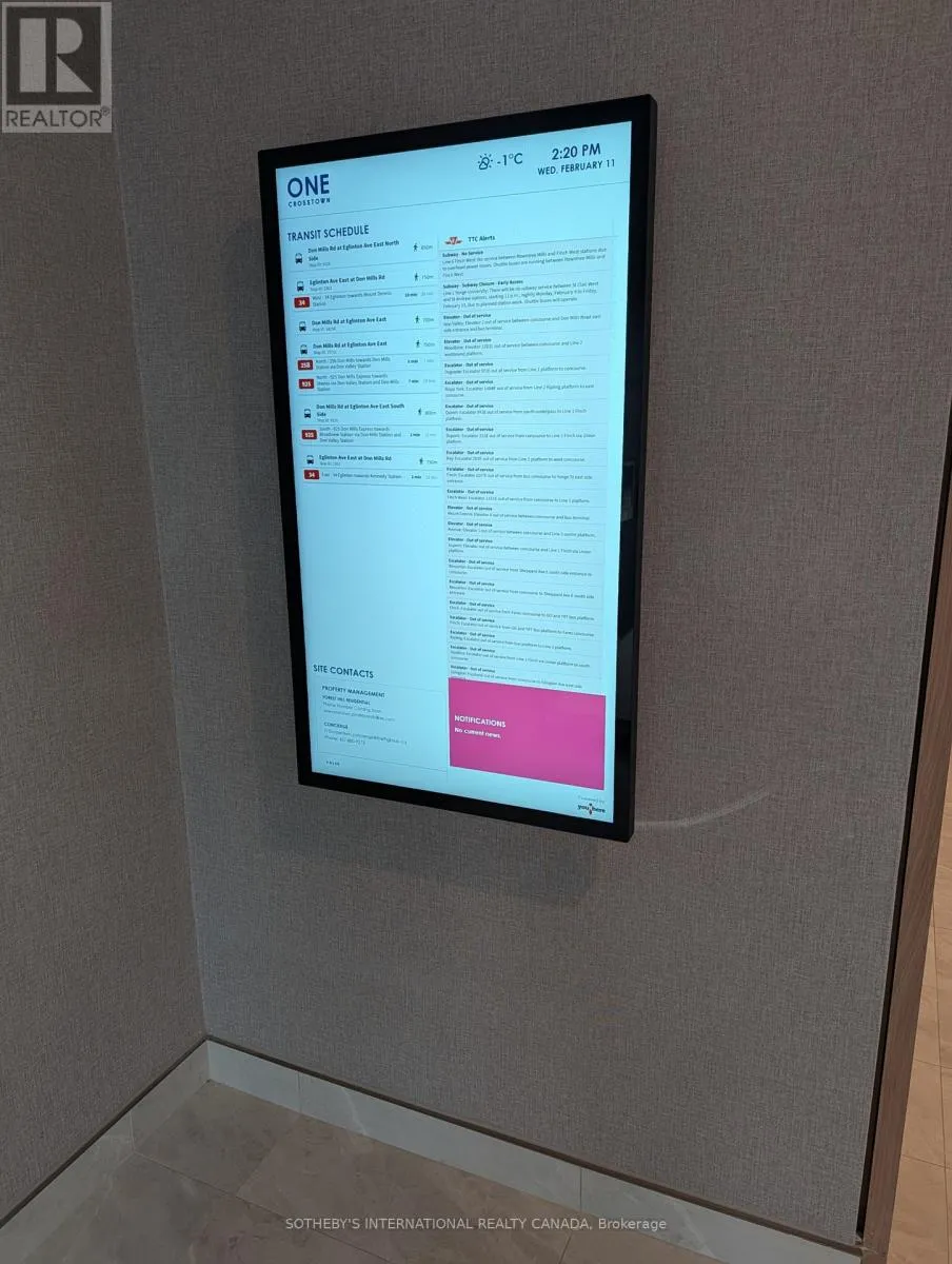 Cross Streets: Eglinton/Don Mills. ** Directions: N/Eglinton W/Don Mills. Be the first to live in this upgraded suite at Crosstown Tower 1 by award winning builder Aspen Ridge Homes, located in the highly anticipated Crosstown Community at Don Mills & Eglinton in Central North York. This brand new corner 2-bedroom, 2-bathroom suite offers a bright, open-concept layout with 9-ft ceilings, floor-to-ceiling windows and a functional design with windows in both bedrooms with room darkening shades. Enjoy a spectacular view from your private terrace. The modern interior features premium Miele built-in/integrated appliances, quartz countertops, sleek cabinetry, all of which have been upgraded, upgraded laminate flooring throughout, upgraded mirrored closet doors, in suite laundry, and a smart lock entry system. Residents enjoy first-class amenities including a fully equipped fitness centre, co-working lounge, party/meeting room, Guest suites, BBQ area, Pet washing station and 24-hour concierge all to be completed in April. High-speed internet, parking, and common elements are included. Hydro, water, and energy costs are separately metered and billed to Tenant through Carma. Ideally situated with convenient access to the DVP and Hwy 401/404, and just steps to the recently opened Eglinton Crosstown LRT with direct rapid transit connections across the city, and handy access to TTC. Minutes to CF Shops at Don Mills, Sunnybrook Health Sciences Centre, Real Canadian Superstore, Aga Khan Museum, Edwards Gardens, Sunnybrook Park, and more. Lease Requirements: Minimum 12-month lease. Certified first and last month's rent deposit required. 48 hour irrevocable on all offers. $300 key deposit. Please submit rental application for all applicants, government issued photo ID, employment letter with last 3 months pay stubs, current full credit report and score (Equifax or TransUnion only...no screen shots) and references with any offer. All offers must include completed Schedule A & B (id:27476)