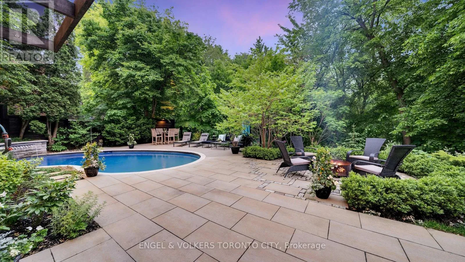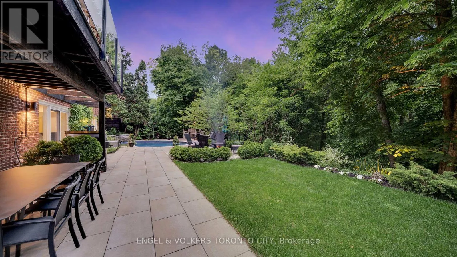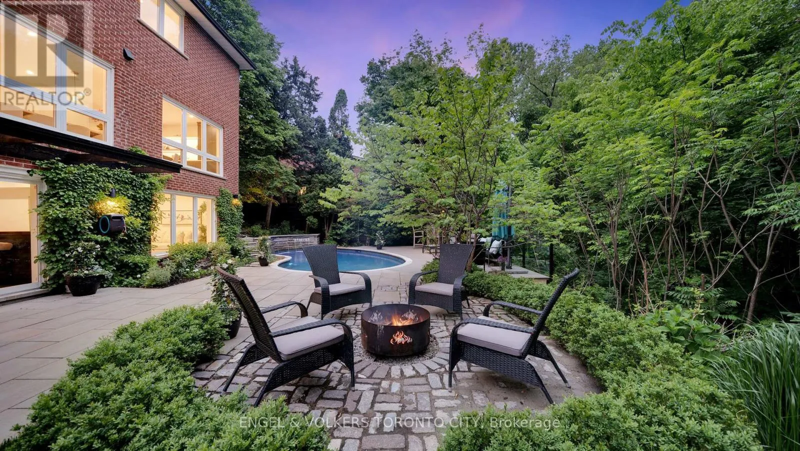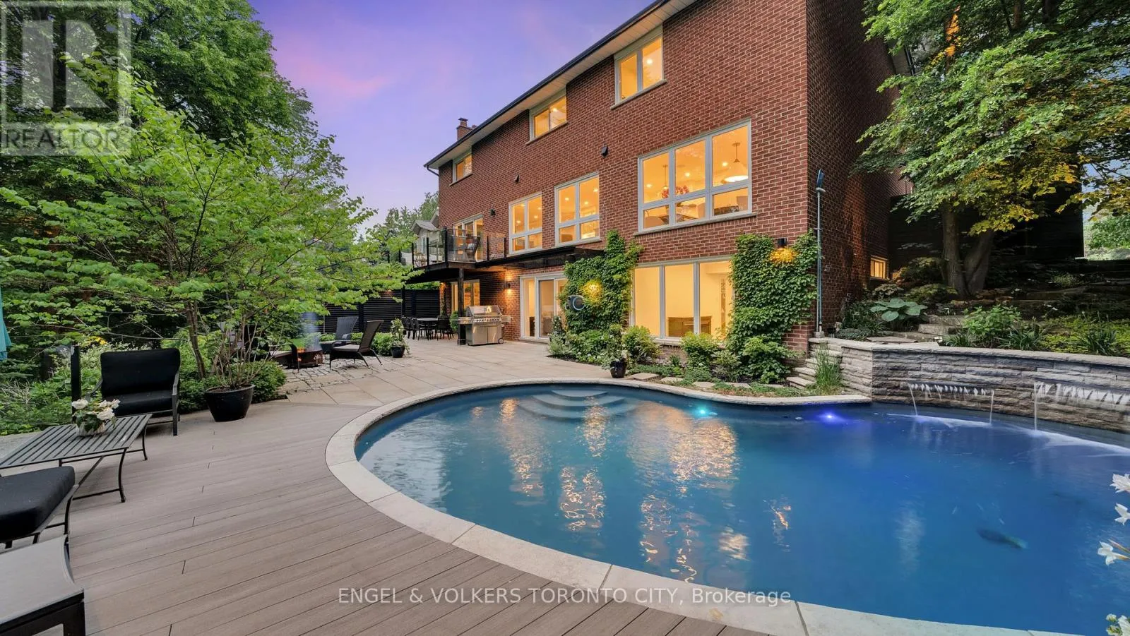 Bayview & York Mills Luxury Living Meets Ravine Serenity in Prestigious St. Andrew-Windfields. A masterfully reimagined residence blending nearly 5,000 sq ft of refined living space with sweeping ravine views - where nature, elegance, and modern design converge. Tucked in the heart of one of Toronto's most prestigious enclaves, this home welcomes you with sun-drenched interiors, a statement staircase, and a seamless open-concept layout. A richly panelled office sets the tone for sophistication, while the chef's kitchen - appointed with premium Miele appliances -flows effortlessly into the dining and family room that opens onto a private deck overlooking the treetops. Upstairs, four spacious bedrooms include a luxurious primary retreat featuring a spa-inspired ensuite and custom walk-in dressing room. The walkout lower level is an entertainer's dream, with a grand rec room, fireplace, full bar, two additional bedrooms, and direct access to the resort-style backyard. Step into your urban oasis - complete with a saltwater pool, oversized deck, dedicated lounge and dining zones, and lush landscaping designed for unforgettable outdoor living. Located minutes from elite schools, fine shopping, golf courses, and scenic trails, this is a rare chance to own a bespoke residence in one of the city's most distinguished neighborhoods. Timeless luxury. Unmatched tranquility. Schedule your private viewing today. (id:27476)