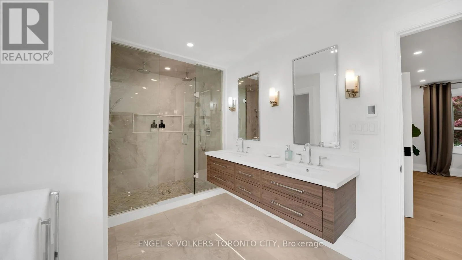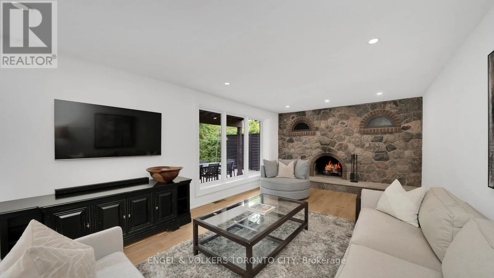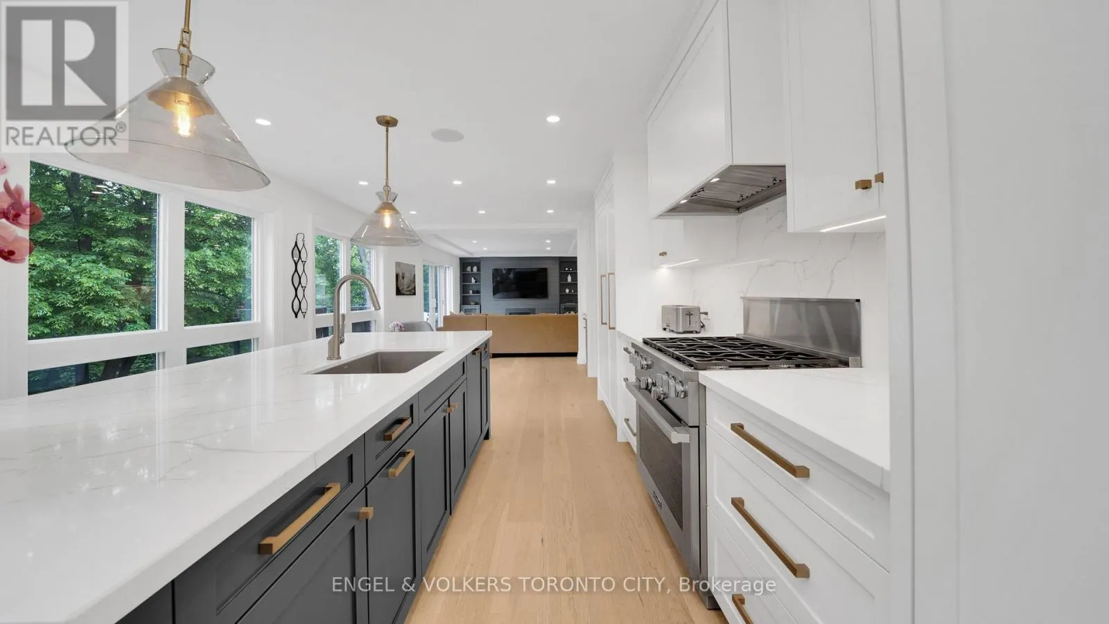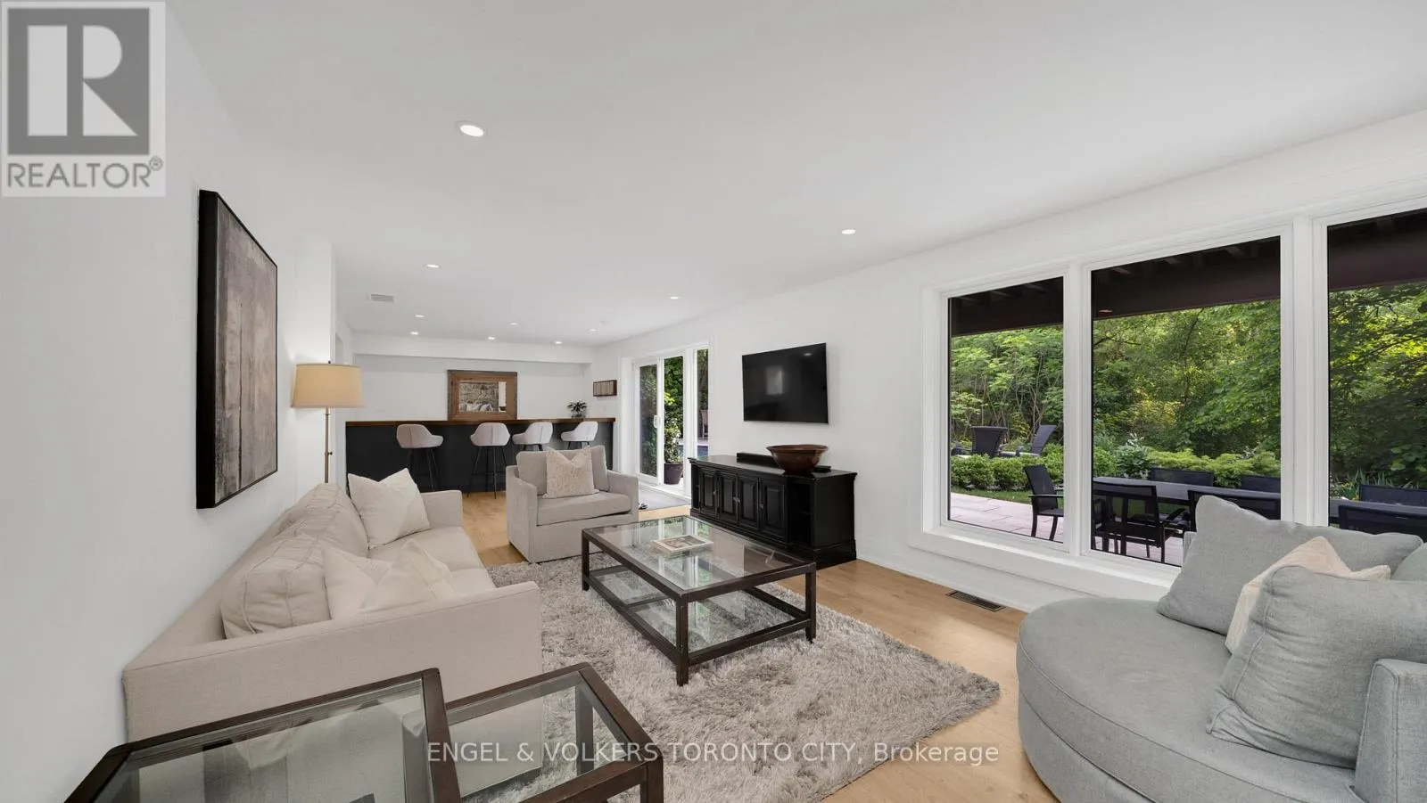 Bayview & York Mills Luxury Living Meets Ravine Serenity in Prestigious St. Andrew-Windfields. A masterfully reimagined residence blending nearly 5,000 sq ft of refined living space with sweeping ravine views - where nature, elegance, and modern design converge. Tucked in the heart of one of Toronto's most prestigious enclaves, this home welcomes you with sun-drenched interiors, a statement staircase, and a seamless open-concept layout. A richly panelled office sets the tone for sophistication, while the chef's kitchen - appointed with premium Miele appliances -flows effortlessly into the dining and family room that opens onto a private deck overlooking the treetops. Upstairs, four spacious bedrooms include a luxurious primary retreat featuring a spa-inspired ensuite and custom walk-in dressing room. The walkout lower level is an entertainer's dream, with a grand rec room, fireplace, full bar, two additional bedrooms, and direct access to the resort-style backyard. Step into your urban oasis - complete with a saltwater pool, oversized deck, dedicated lounge and dining zones, and lush landscaping designed for unforgettable outdoor living. Located minutes from elite schools, fine shopping, golf courses, and scenic trails, this is a rare chance to own a bespoke residence in one of the city's most distinguished neighborhoods. Timeless luxury. Unmatched tranquility. Schedule your private viewing today. (id:27476)