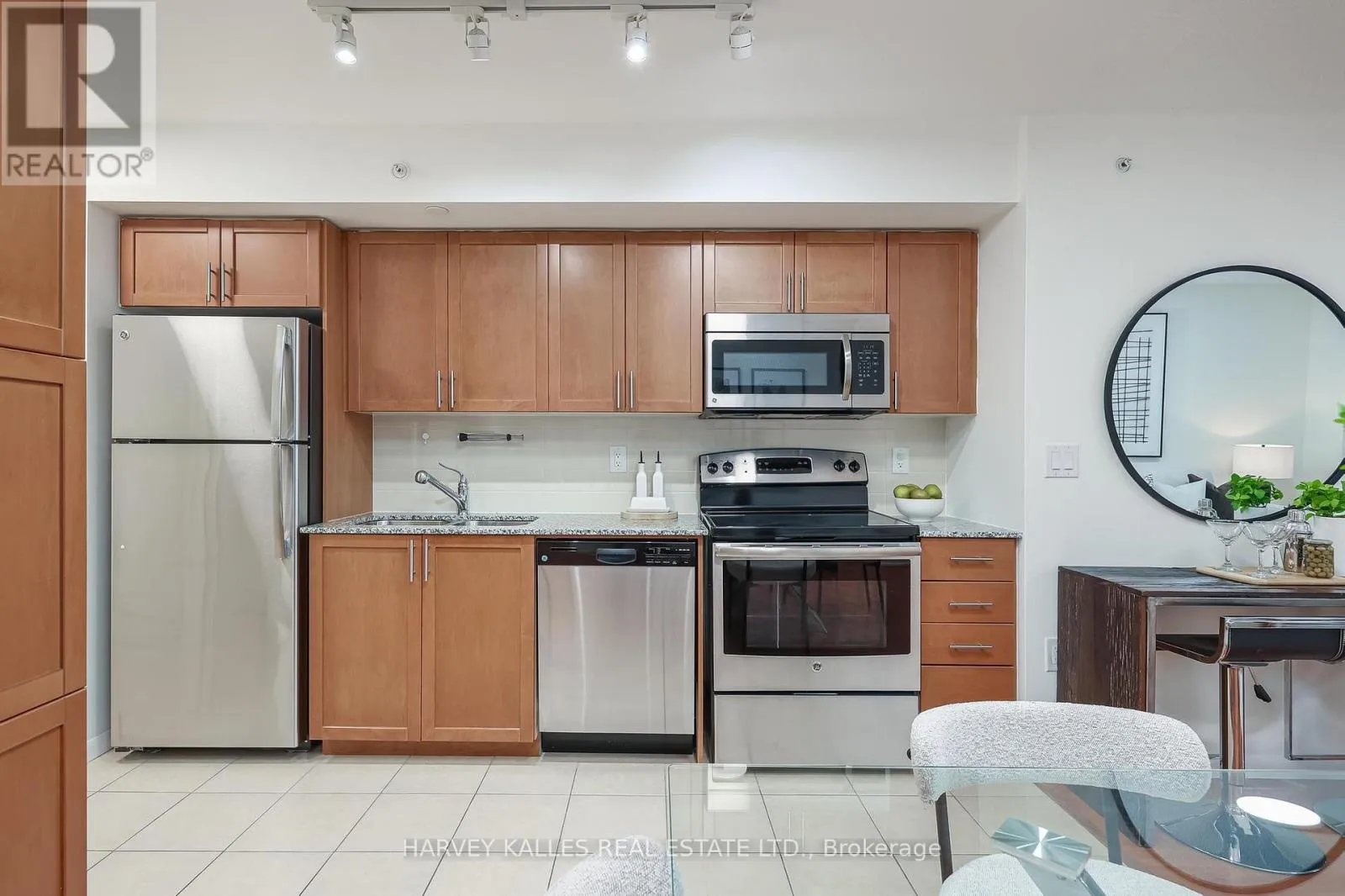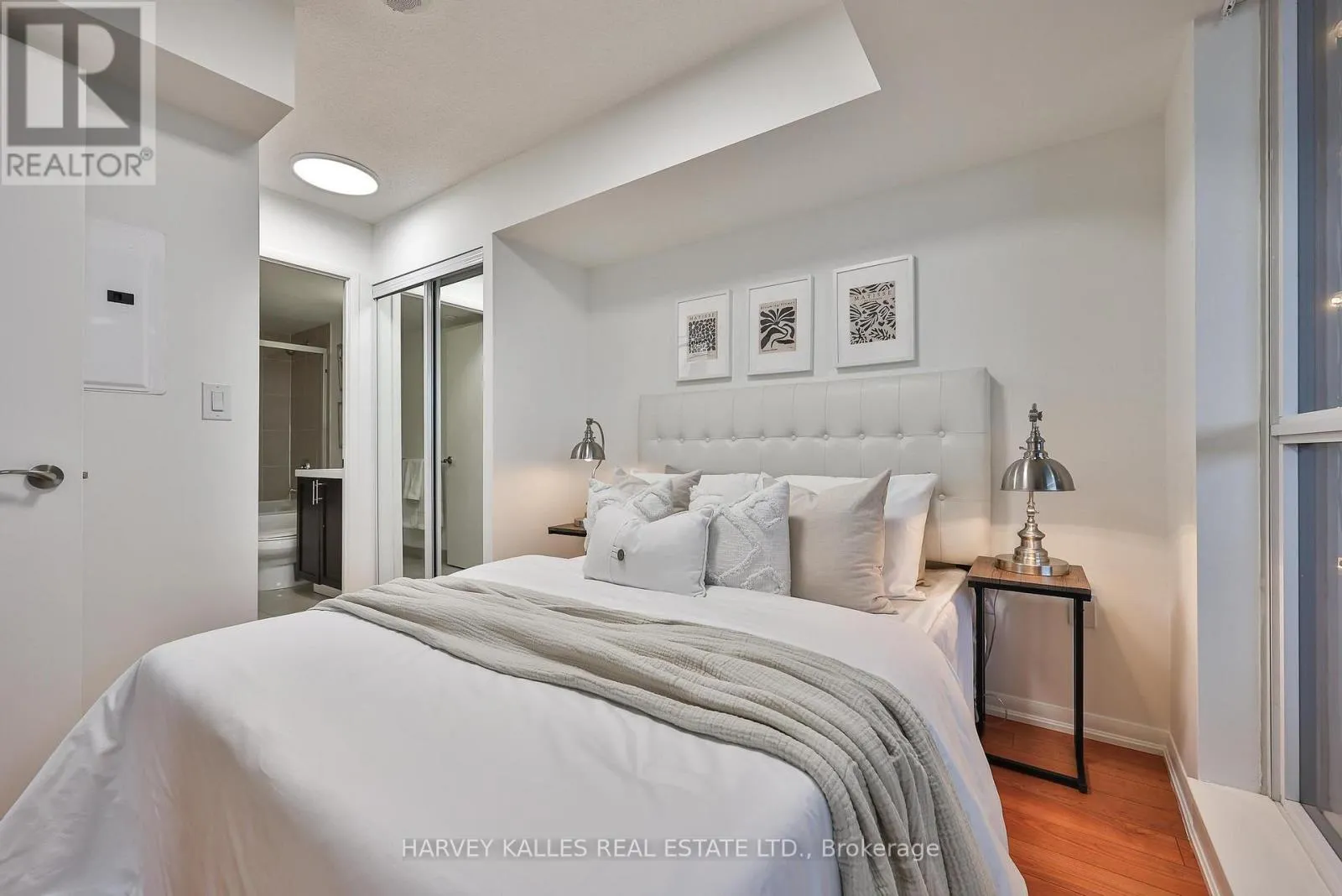 Dufferin & Lawrence Welcome to Treviso ll - where quality construction, prime location, vibrant community and everyday convenience come together in perfect balance. This freshly painted, bright and stylish 2-bedroom, 2-bathroom suite offers a thoughtfully designed open-concept layout ideal for modern urban living. Floor-to-ceiling windows bathe the space in natural light, enhancing the airy feel throughout. The contemporary kitchen is beautifully appointed with granite countertops, stainless steel appliances & ample cabinetry, perfect for both casual meals and entertaining guests. The spacious living and dining areas flow seamlessly to a large, covered west-facing terrace with unobstructed views. This private three-season outdoor retreat truly extends your living space and offers the perfect setting for morning coffee or evening relaxation. Engineered hardwood flooring runs throughout the suite, complemented by two well-proportioned bedrooms, including a primary suite with excellent his and her closet space and a full ensuite bath. A second full bathroom, additional storage, and functional layout plus underground parking complete this exceptional offering. Residents enjoy an impressive selection of amenities including a state-of-the-art fitness centre, indoor pool, rooftop garden with BBQ areas, party room, guest suites, visitor parking, and 24-hour concierge service - providing both comfort and peace of mind. With Spring just around the corner the rooftop garden with BBQ's provides a place to connect with friends and family Ideally located just steps from Lawrence West Station with TTC at your doorstep, easy access to Allen Road and Highway 401, and moments from premier shopping and dining at Yorkdale Shopping Centre, this address offers unbeatable connectivity. Experience the best of city living in a building and neighbourhood that truly has it all. (id:27476)