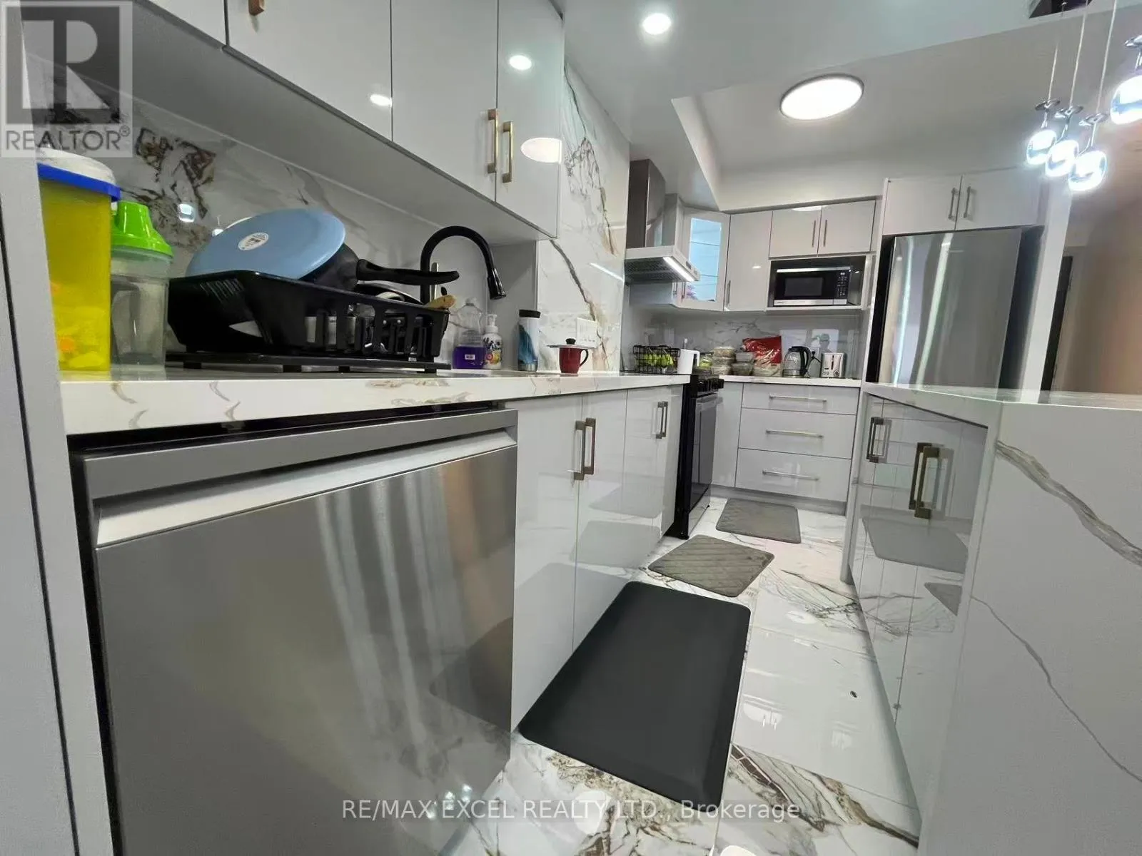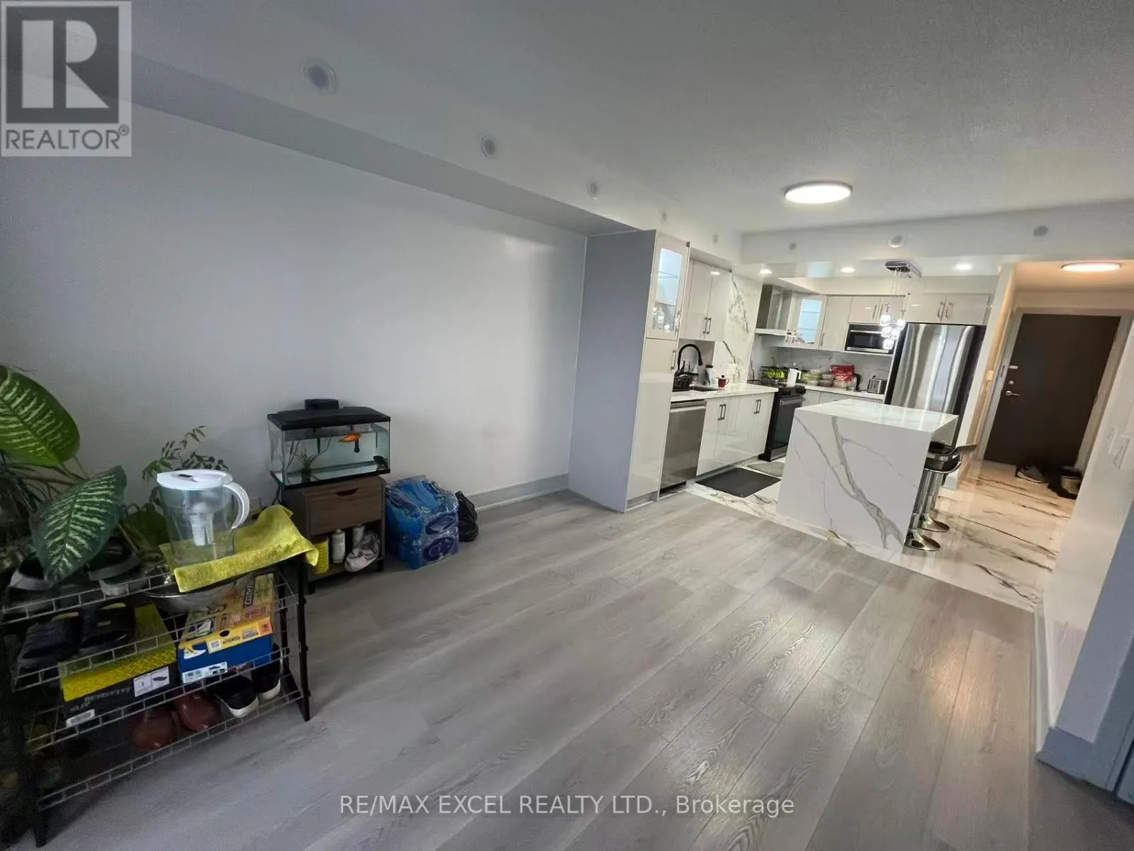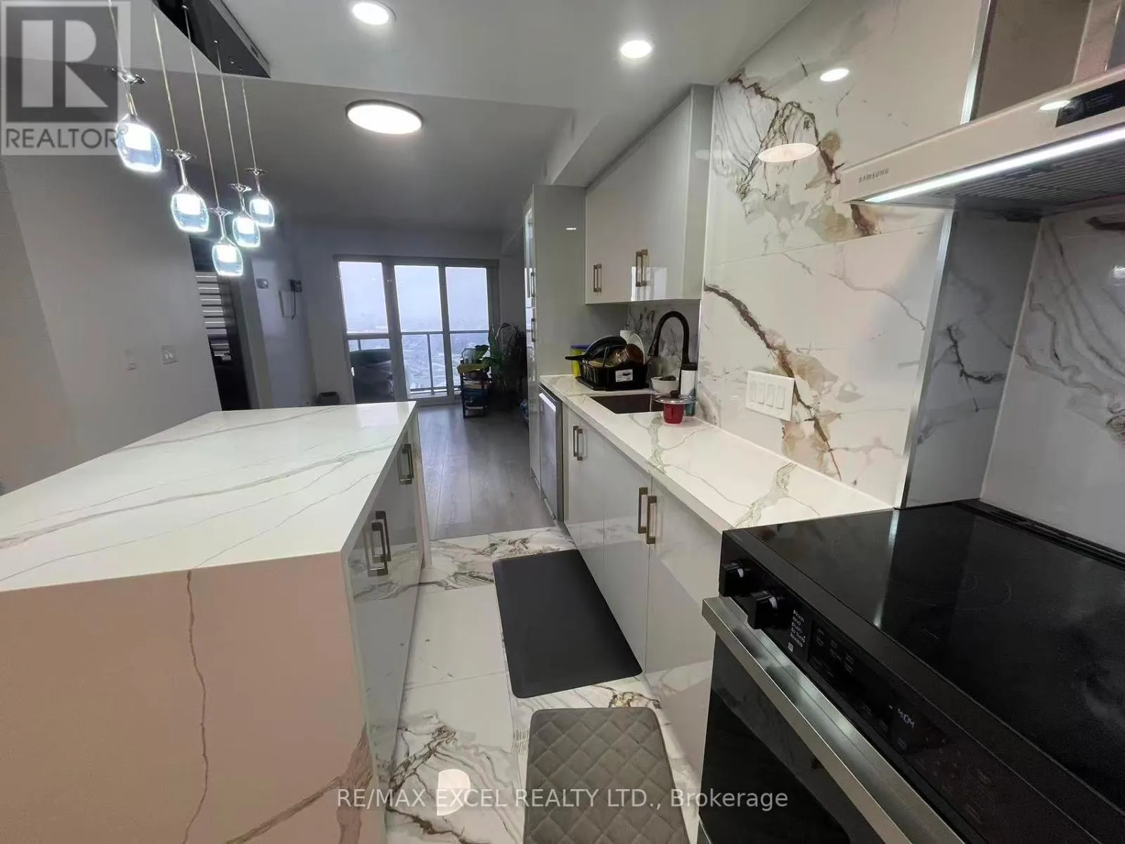 Cross Streets: Kennedy / 401. ** Directions: park at(inside) visitor parking near LB panel. Welcome To Solaris I In The Sought-After Metrogate Community, Developed By Tridel. This Bright High-Floor 2-Bedroom, 2-Bath Unit Features A Sunny South/West View, Complet Renovated Modern Luxury Kitchen, White Quartz Island, Marble Backsplash With Brown-Grey Veining, Handleless Grey Cabinets, Stainless Steel Appliances, Glass Pendant Chandelier, Tiled Marble-Look Floor, Black Bar Stools, Recessed Lighting, Sleek Minimalist Design. Open-Concept Living/Dining With Balcony Walkout, Laminate Floors, And Ensuite Laundry. The Primary Bedroom Includes A Private Ensuite. Enjoy Premium Amenities: Indoor Pool (Exclusive To The Community), Gym, Sauna, Party Room, Billiards, Guest Suites, Daycare, Terrace, And Ample Visitor Parking. Includes 1 Parking And 1 Locker. Steps To TTC, Highway 401, UTSC, STC, Kennedy Station, Agincourt Mall, And Kennedy Commons. Available Immediately (id:27476)