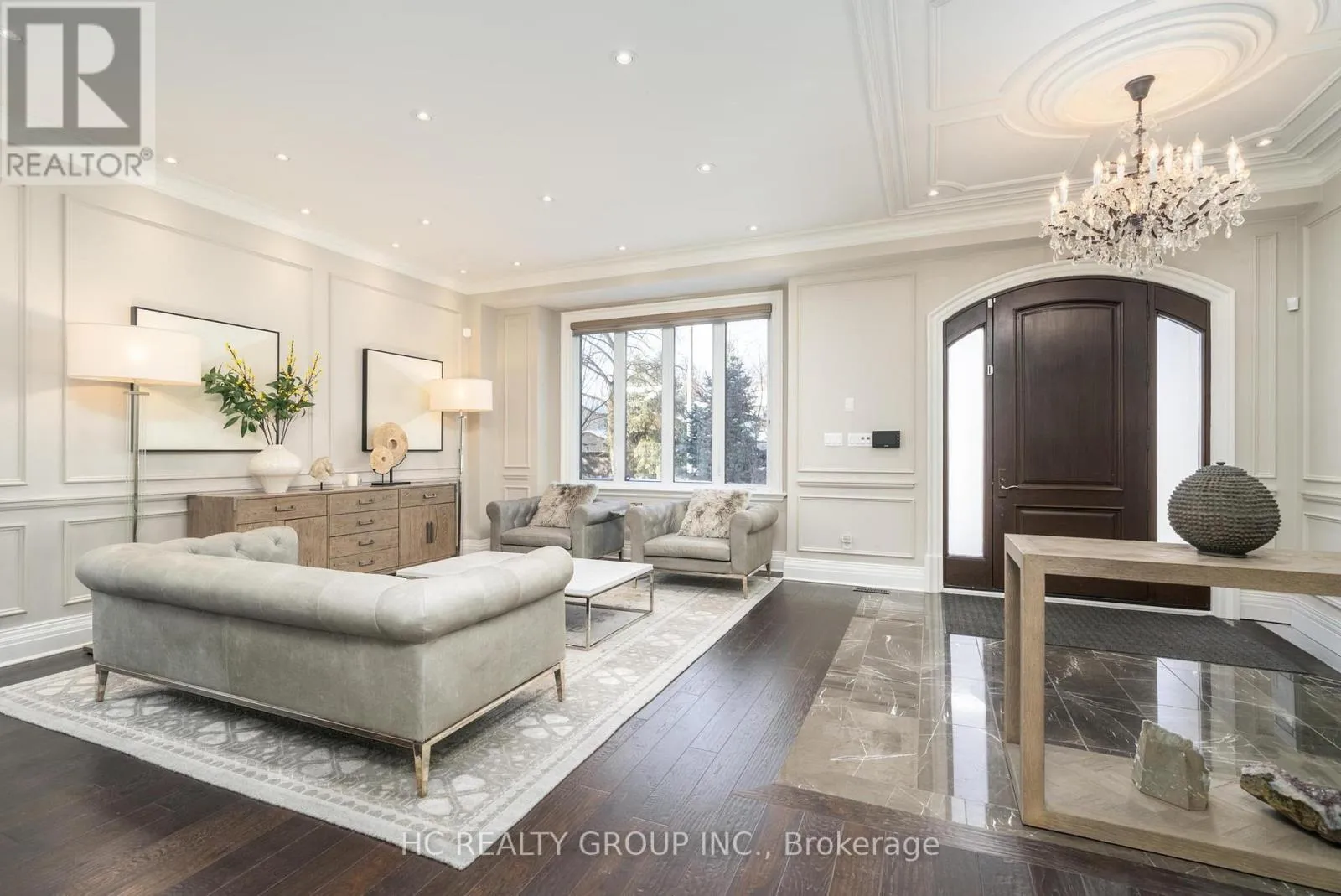 Cross Streets: York Mills & Banbury. ** Directions: West of Banbury Rd. Exceptional custom-built 4+1 bedroom, 6-bath residence on a quiet, tree-lined street in prestigious York Mills. Soaring 10' ceilings on the main floor and 9' ceilings on the second and lower levels create a bright, open feel, highlighted by dramatic two-storey (20') full-height glass windows overlooking a private backyard with automated shades. The grand family room features a two-storey bookmatched slab fireplace, coffered ceiling, and skylight, while the chef's kitchen boasts high-end appliances, oversized island, and custom cabinetry. Elegant marble and natural stone finishes, refined mouldings, and built-in millwork elevate every space. The primary suite offers a spa-inspired ensuite and generous walk-in closets. Beautiful professionally landscaped grounds complete the home's private oasis. Located within the highly sought-after Denlow School district and close to top private schools including Crescent School, The Toronto French School, and Havergal College, this home combines luxury, style, and exceptional location. (id:27476)
