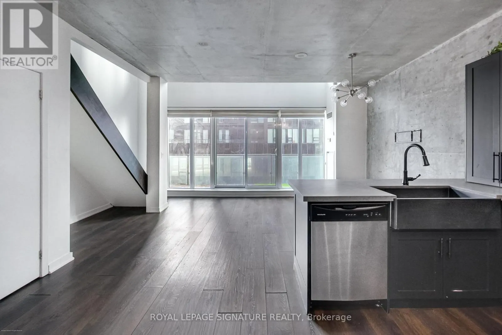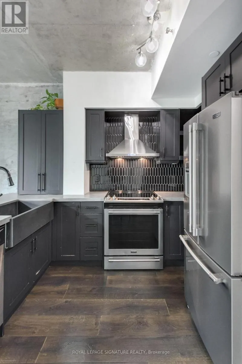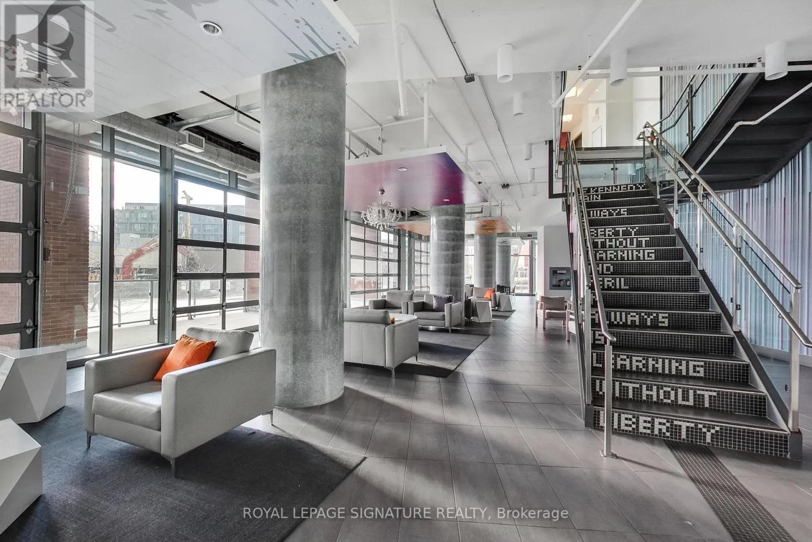 Cross Streets: East Liberty ST/ Strachan ave. ** Directions: Waze. Your dream two-storey loft in the heart of vibrant Liberty Village awaits. This spectacular 1-bedroom + den loft-like condo spans approximately 830sqft and is bathed in natural sunlight through dramatic 18-foot floor-to-ceiling windows. Featuring soaring ceilings, exposed concrete accents, and an open-concept layout, this stylish loft delivers true modern urban living.The renovated contemporary kitchen is equipped with full-size stainless steel appliances and seamlessly integrates into the living and dining space, perfect for entertaining. A spacious open-concept den flows effortlessly into a cozy bedroom - both loaded with custom closets, while two well-appointed bathrooms add everyday convenience, including a 2-piece on the main level and a 4-piece upstairs. Step outside to your private south-facing balcony, ideal for morning coffee or relaxing evenings. Residents of Liberty Place enjoy exceptional amenities, including a fully equipped fitness centre, party room, and 24-hour concierge service. Surrounded by restaurants, parks, grocery stores, and public transit, this loft is perfectly suited for young professionals or couples seeking an upscale downtown lifestyle. Includes parking and storage locker. Simply move in and enjoy everything Liberty Village has to offer. (id:27476)