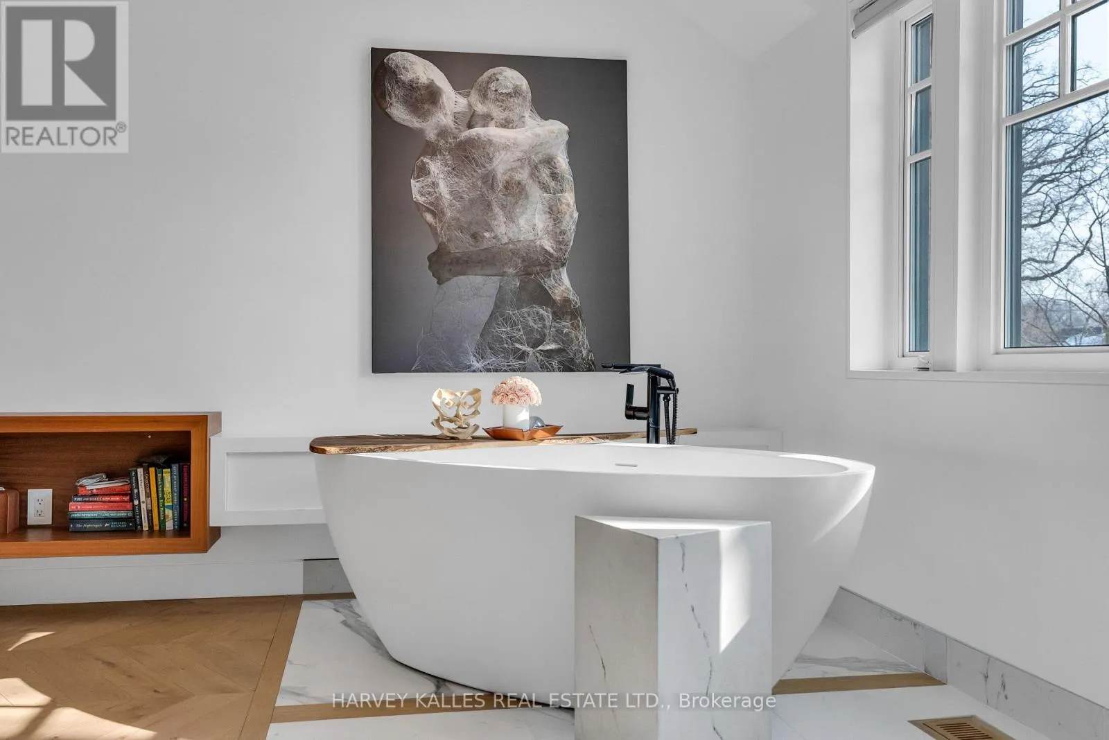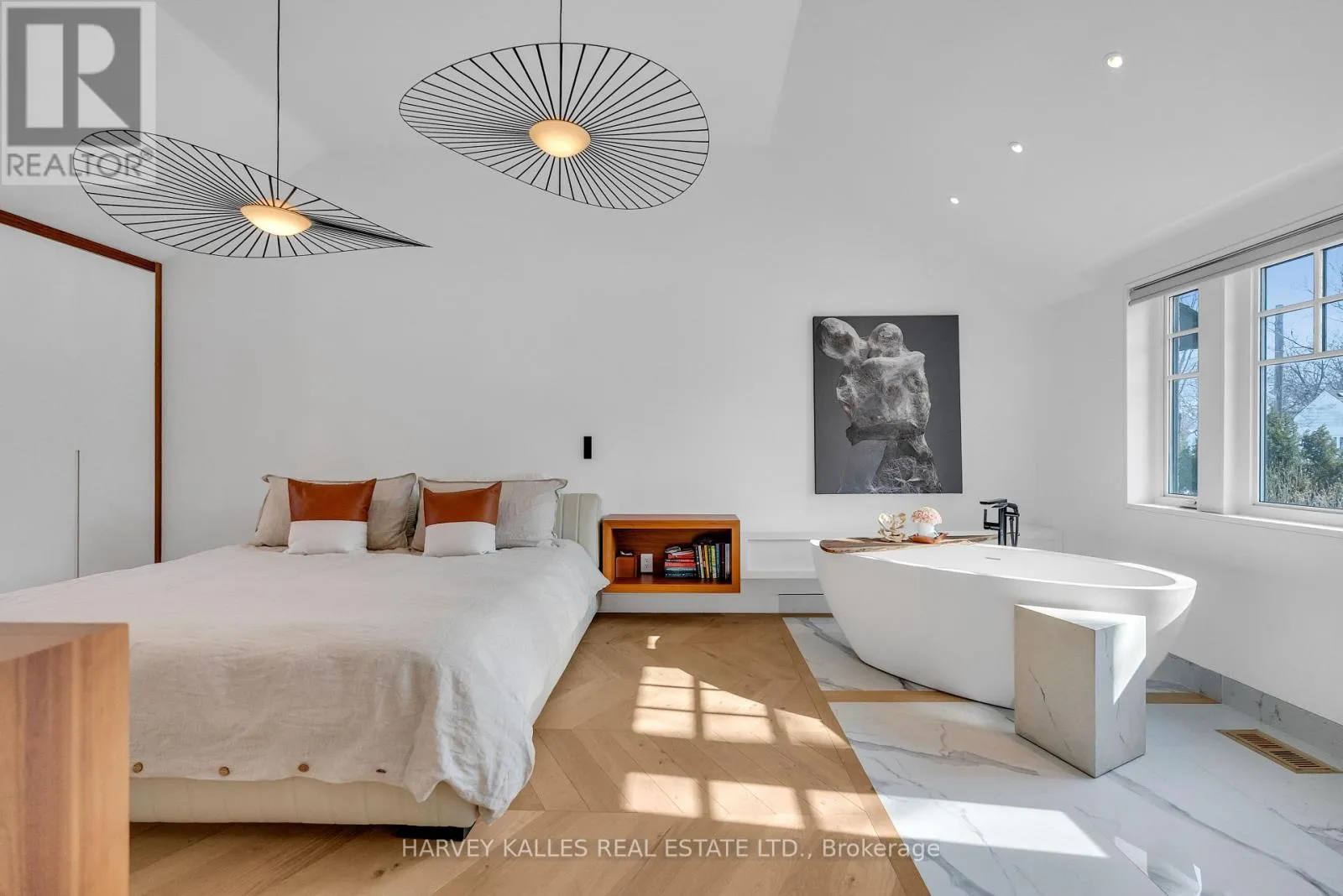 Royal York rd and Bloor St W Architecturally striking and filled with natural light, this custom designed home showcases exceptional craftsmanship and warm wood detailing throughout. Fully renovated from the studs, this home blends modern architectural lines with timeless materials, featuring chevron wood floors, cedar accents, recessed trim, and extensive custom millwork. The main level is designed for seamless entertaining and everyday living, with soaring ceilings and expansive sliding glass doors that open to a private dining terrace and outdoor Chef's kitchen, creating a beautiful indoor-outdoor flow. The indoor chef's kitchen is anchored by an oversized island ideal for gathering and entertaining, complimented by integrated appliances, bespoke cabinetry and exceptional storage. Custom built-ins throughout enhance both form and function, while the upper level offers a skylit hallway, impressive ceiling height, and refined architectural detailing. The hotel inspired primary suite includes extensive built-ins and a spa like ensuite with double sinks, rain shower, a stand alone luxury tub and a smart toilet. Two well proportioned secondary bedrooms are thoughtfully positioned and share a Jack- and-Jill washroom, ideal for growing families. The fully finished lower level adds flexible living space with a fireplace, fitness area, cedar sauna with a salt wall, industrial style laundry, and a three piece washroom. A turnkey home where design and livability are perfectly balanced. (id:27476)