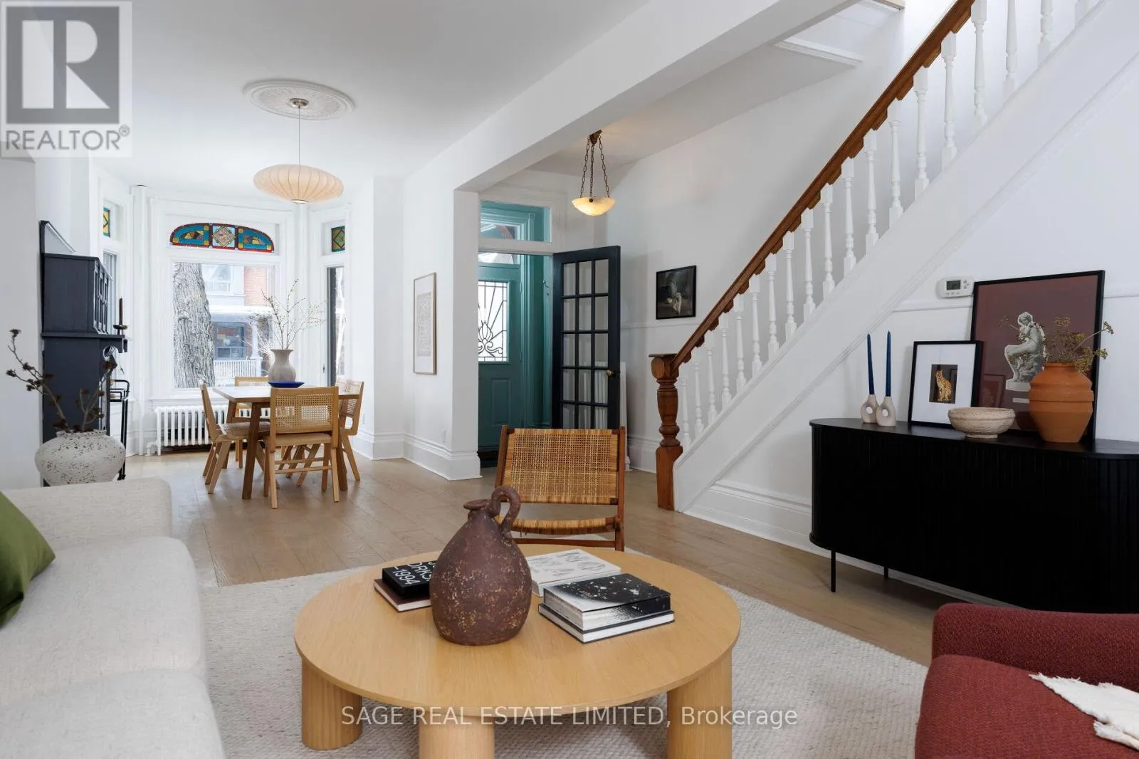 East of Roncesvalles Meet Me on Marion. A rare end-unit Victorian row that lives like a generous semi, this beautifully reno'd 2.5-storey, 4 bedroom, 2 bath home blends timeless character with a modern designed heart - located in beloved Roncesvalles. Original stained glass, a fireplace, tall ceilings, and hardwood floors anchor the home in history, while seamless flow between the living and dining rooms invite long dinners, and spontaneous celebrations.The kitchen was reimagined to bring the outdoors in. Designed with high end, sustainable materials, it holds generous custom storage, excellent prep space, and a charming breakfast nook framed by greenery. Functional and welcoming - a place to cook, gather, and begin the day slowly with coffee and a birdsong. Upstairs, the 2nd floor features 3 peaceful sleeping quarters, and a sweet rear den tucked among the treetops. The principal bedroom has remarkable storage, a cozy reading nook, and walkout to a balcony.The 3rd floor is full of joyful and adaptable possibility - imagine a serene primary retreat with rooftop deck access, or an inspiring hideaway for kids and teens: movie nights, sleepovers, creative projects, and room to grow. Outside, the landscaped backyard feels like a private sanctuary. Butterfly gardens attract pollinators throughout the seasons, while the generous deck sets the stage for endless summer dinners. Above it all, the rooftop terrace captures open sky and sunset views. Living here feels like Village life within the city. Steps to favourite grocers, independent cafés, and amazing restaurants. Easy walks to the weekly farmers' market and community gatherings in Sorauren Park, larger nature adventures in High Park, or dreamy waterfront strolls along the lakeshore trial. Easy access to transit and the Gardiner makes commuting seamless. A home with heart, history, and room to gather -.right where you want to be (id:27476)