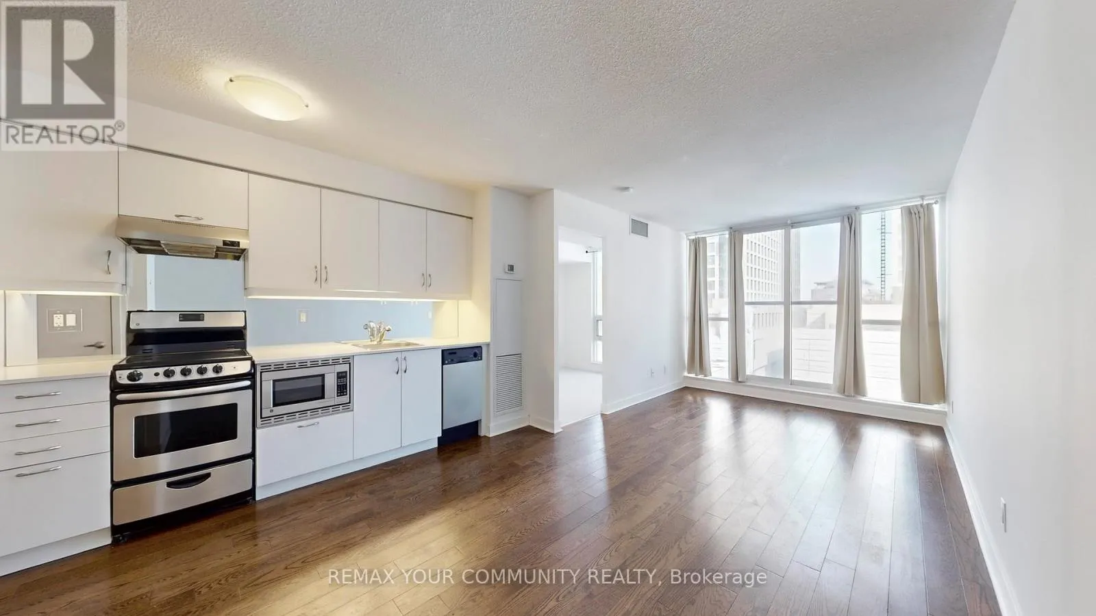 Richmond East Step into elevated city living at The Modern, where morning light and skyline views define everyday comfort. This thoughtfully designed one bedroom condo in the heart of downtown Toronto features a bright, open concept layout. A sleek kitchen, engineered hardwood flooring, and 9 foot ceilings create a refined yet inviting atmosphere. The spacious bedroom with a walk-in closet offers both comfort and practicality ideal for professionals or couples. Residents enjoy exceptional amenities, including a rooftop pool and jacuzzi, fully equipped gym, party room, work/study room, guest suite, and secure bike storage-perfect for both convenience and lifestyle. Located just minutes from the Distillery District, the DVP, Queen East's restaurants and cafés, the Beaches, Cherry Beach, Thompson Park, and the CN Tower, you'll have effortless access to shopping, dining, and entertainment. Experience downtown living at its finest, where the city is vours to enijoy. (id:27476)