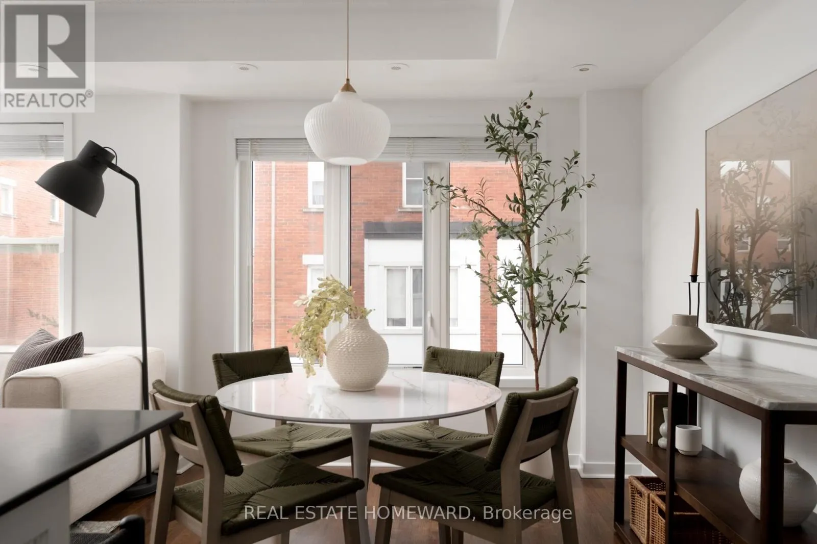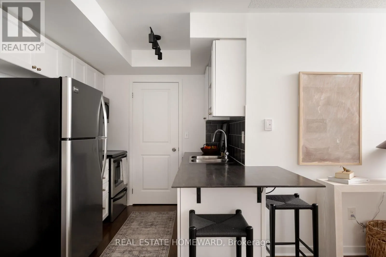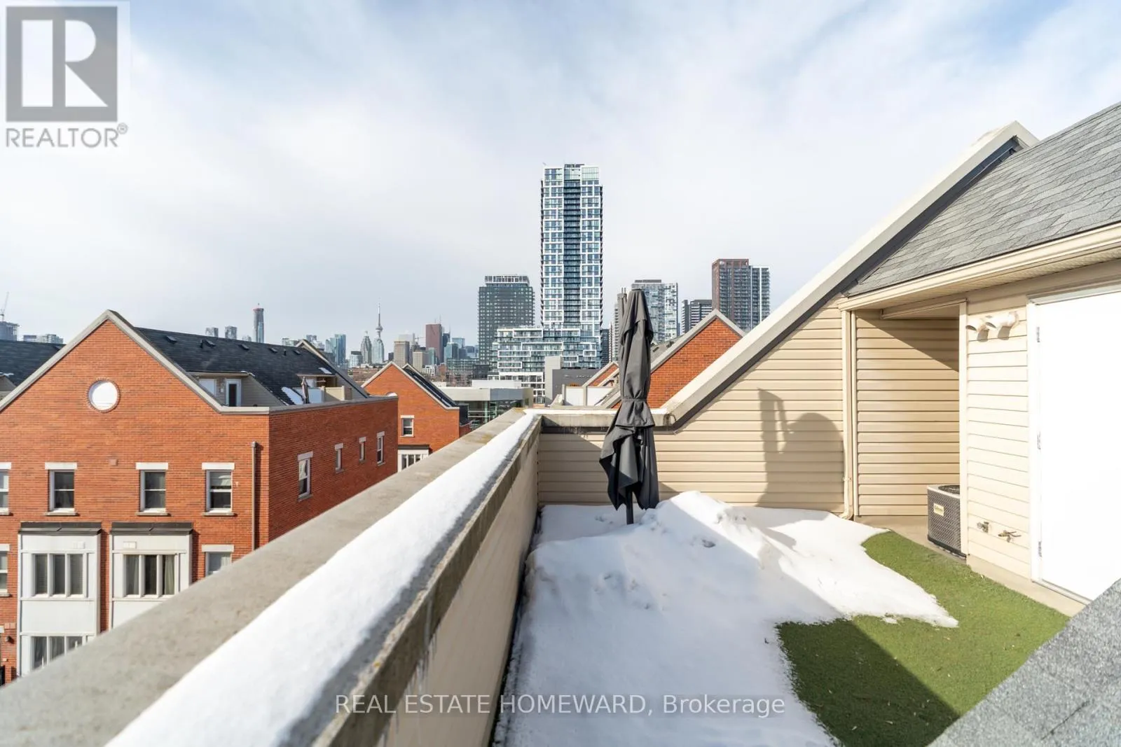 Broadview and Dundas Welcome to this rare CORNER townhome in the heart of Riverside, offering extra windows, exceptional natural light, and clear southwest views of the CN Tower. Spanning approximately 925 square feet, this 2-bedroom, 2-bathroom home is designed for comfortable, functional living. The open-concept main floor easily accommodates a full sectional with the perfect TV wall set up and is the ideal space for relaxing or entertaining. The large dining area allows you to easily host family and friends and the main floor offers a convenient powder room for guests. The kitchen includes ample storage including a full pantry. Upstairs, the primary bedroom comfortably fits a king-size bed, while the second bedroom is spacious enough for a queen bed and equally suited as a nursery or home office. A full bathroom completes the upper level. The private 231 square foot rooftop terrace is a standout feature, with a sunny southwest exposure, CN Tower views, and a gas hookup - ready for summer evenings and outdoor dining. Steps to Riverside and Leslieville's shops, cafes, parks, and TTC, this bright corner unit offers the space, layout, light and views that make all the difference. Internet is included in the maintenance fees and the unit comes with one bike locker. (id:27476)